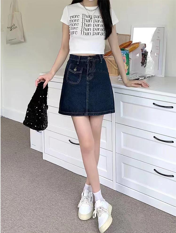 Falda Vaquera Asimétrica de Línea A Nueva de Primavera para Mujer 2025 Nuevo Diseño Versátil Falda Slim de Cintura Alta
