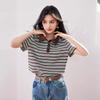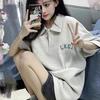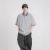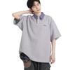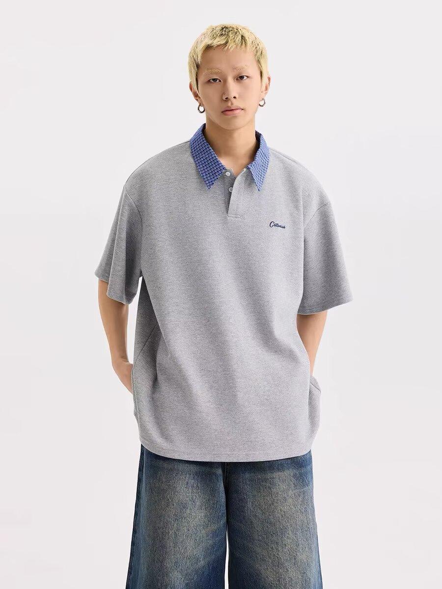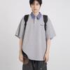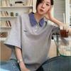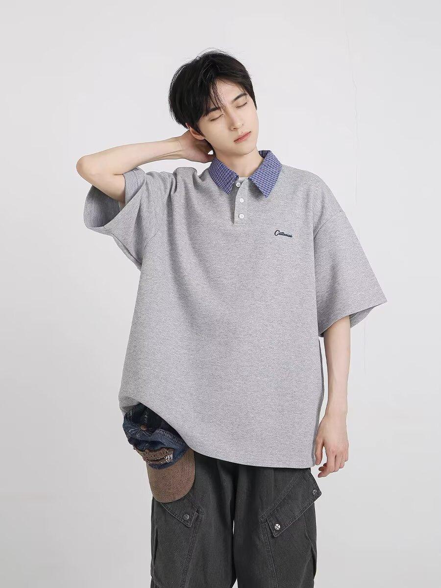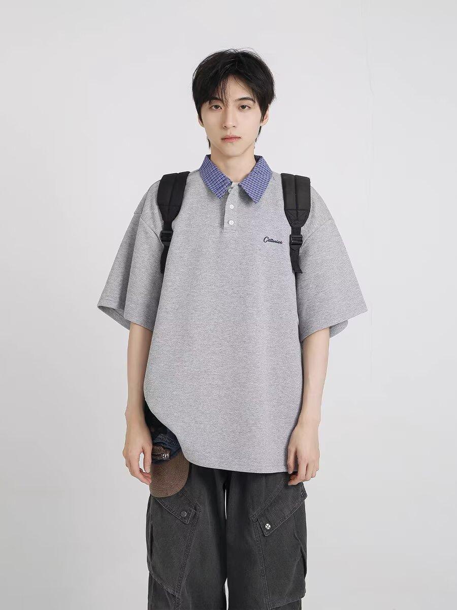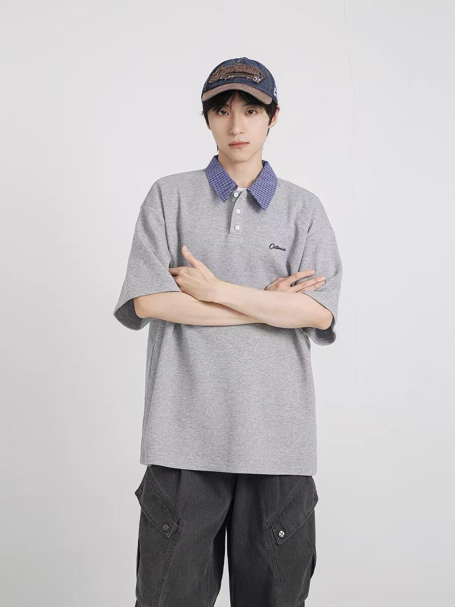 Polo a cuadros gris retro americano con solapa y manga corta, camiseta de verano para mujer con diseño holgado, top falso de dos piezas