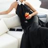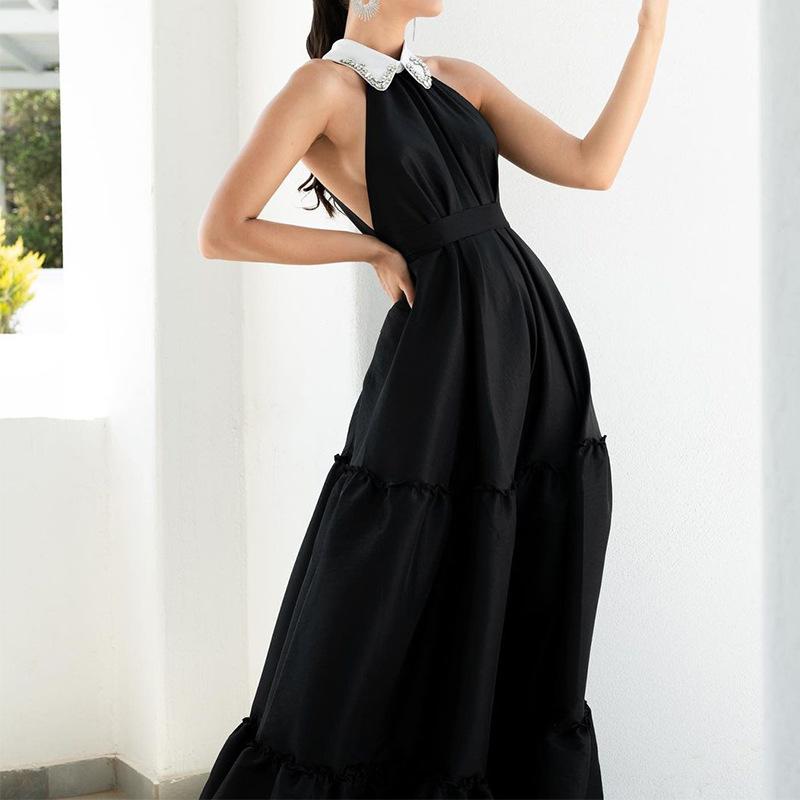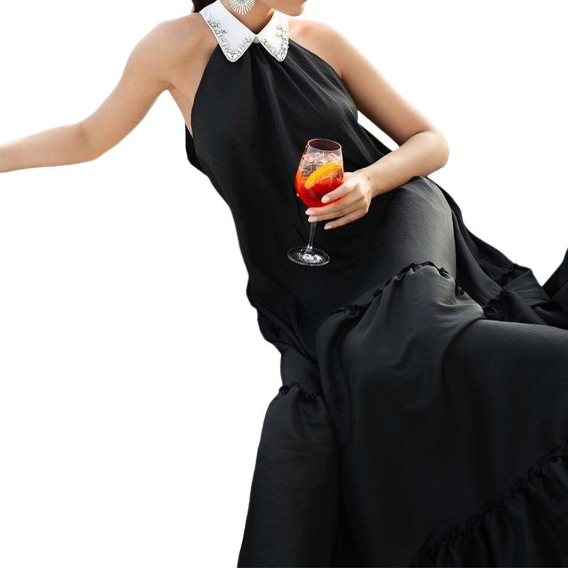 Amazon 2024 Ropa Europea y Americana Primavera y Verano Nuevo Moda Transfronteriza Elegante Color Puro Sin Mangas Vestido Midi de Dobladillo Amplio
