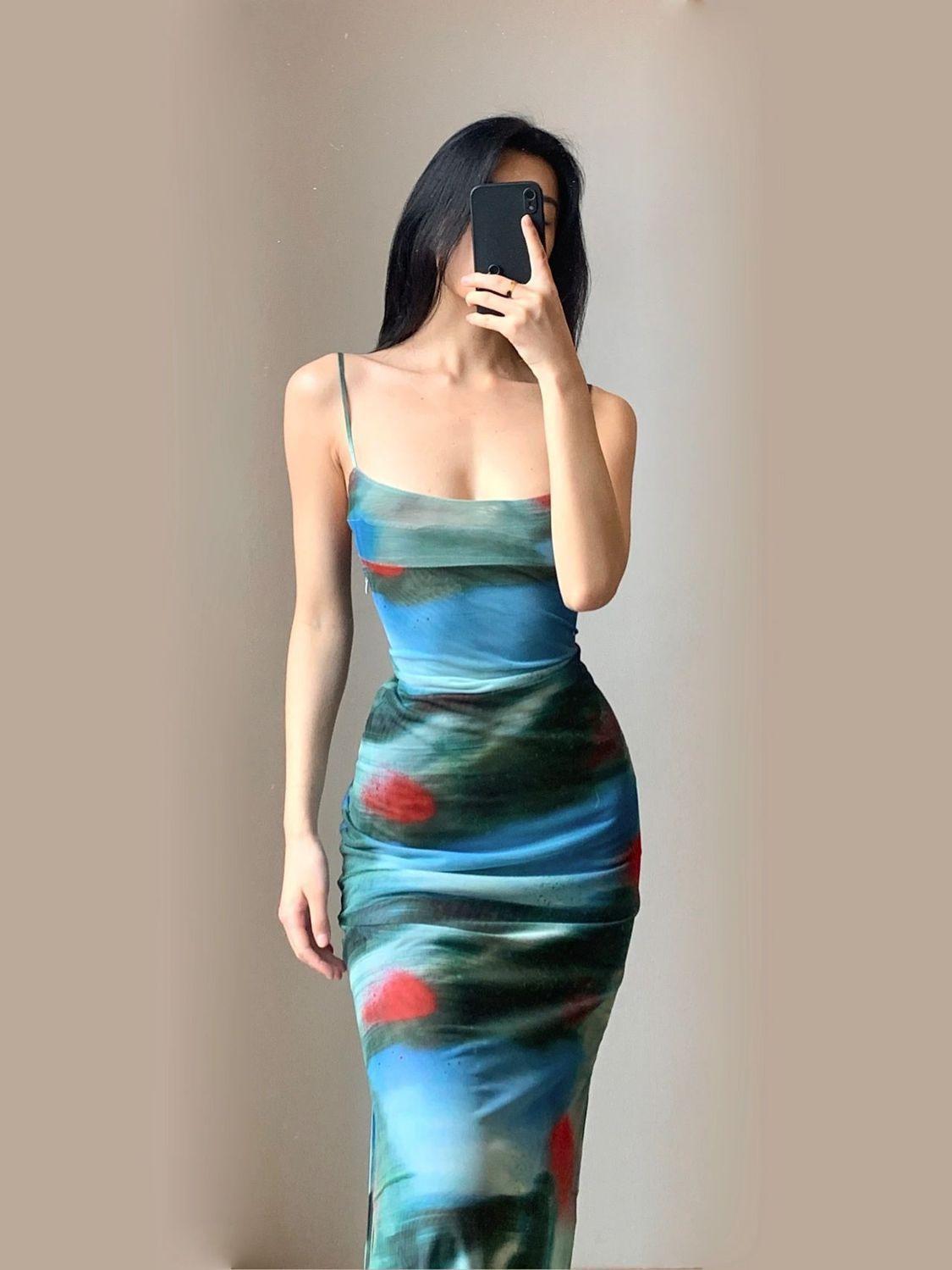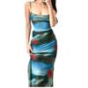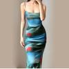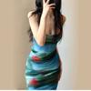 Vestido ajustado con tirantes teñido anudado para chicas sexys Adelgazante Vacaciones junto al mar Estilo puerto 2024 Nuevo Vestido francés retro europeo y americano