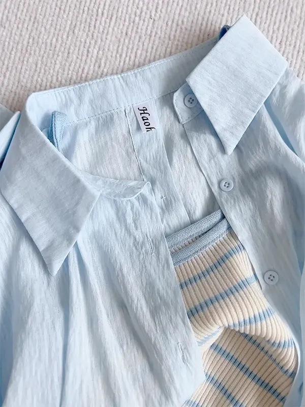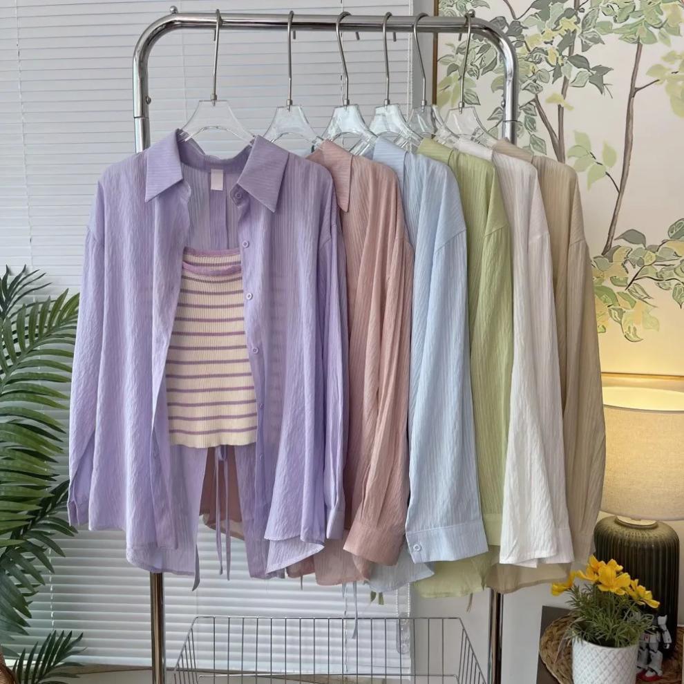 Traje de dos piezas para mujer estilo japonés diseño de nicho suave suelto primavera y otoño delgado camisa protector solar ropa superior abrigo