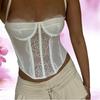 Estilo Europeo y Americano Moldeador de Cuerpo Nuevo Estilo Encaje Bordado Varilla de Pez Nylon Sexy Tubo Pechera Tirantes Espalda Hueca Corsé Exterior sin Espalda para Mujer