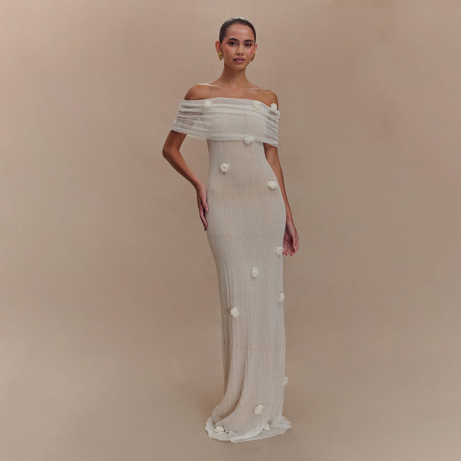 ¡Nuevo Producto en 2025! ! Falda de Playa Europea y Americana para Mujer Color Sólido Tejido Flor Flotante Bikini de Playa Traje de Baño Vestido de Mujer