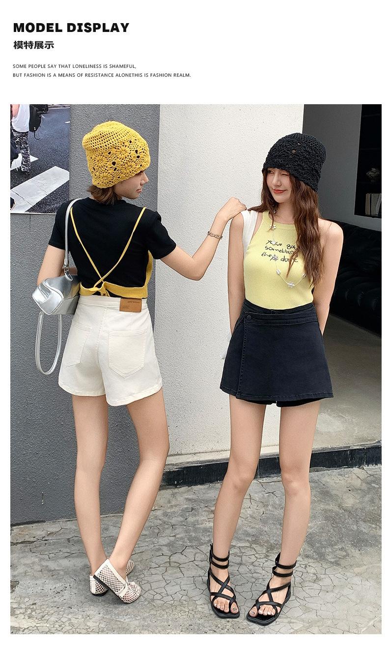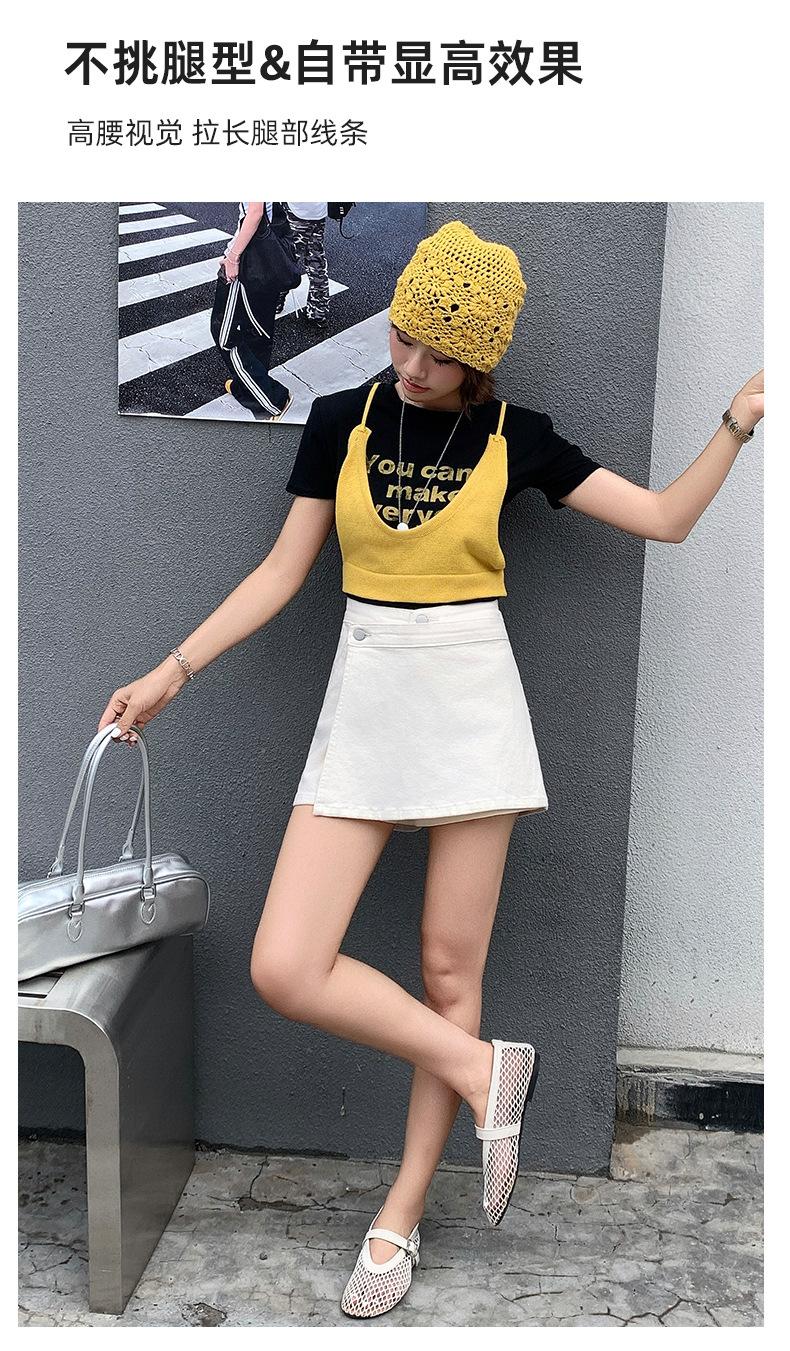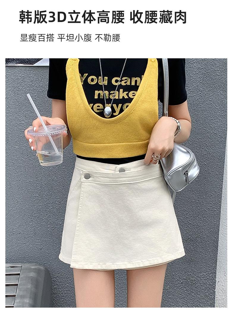 Falda de mezclilla irregular para mujer 2025 verano nueva cintura alta look adelgazante diseño alarga piernas línea A falda ajustada a la cadera