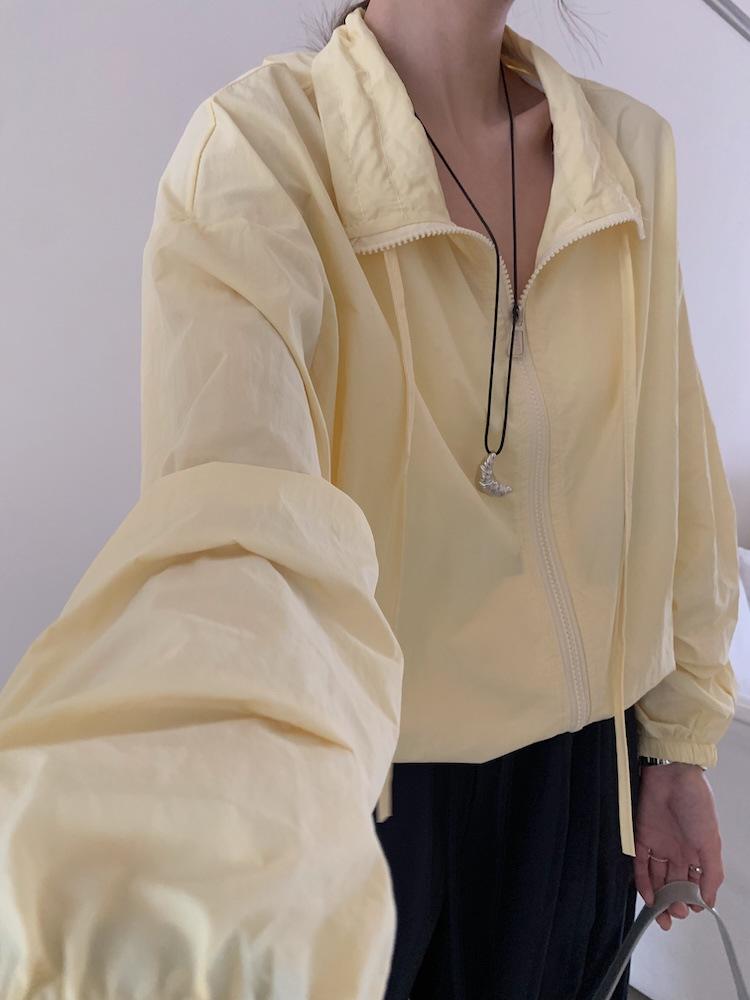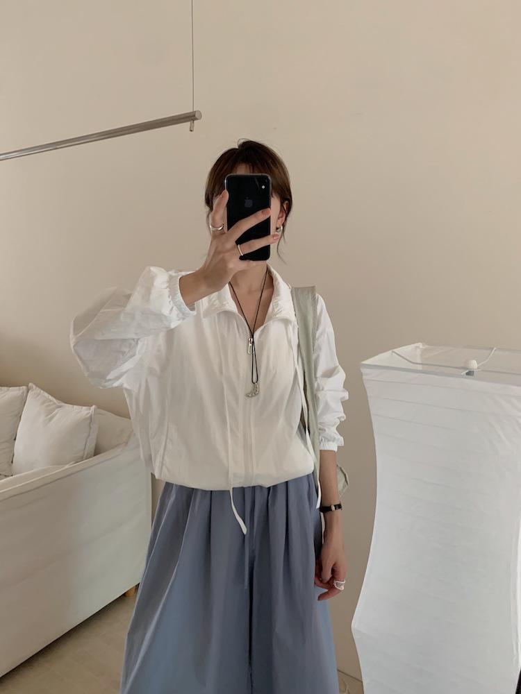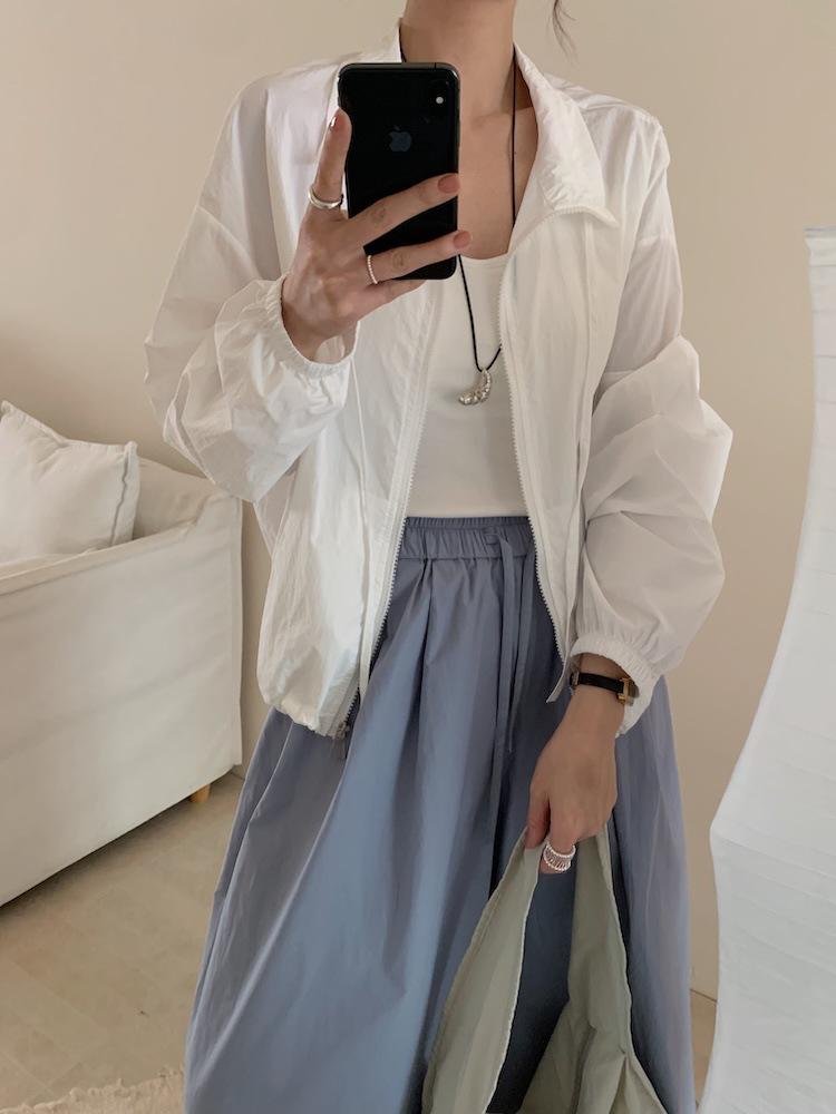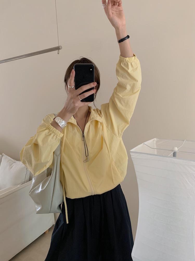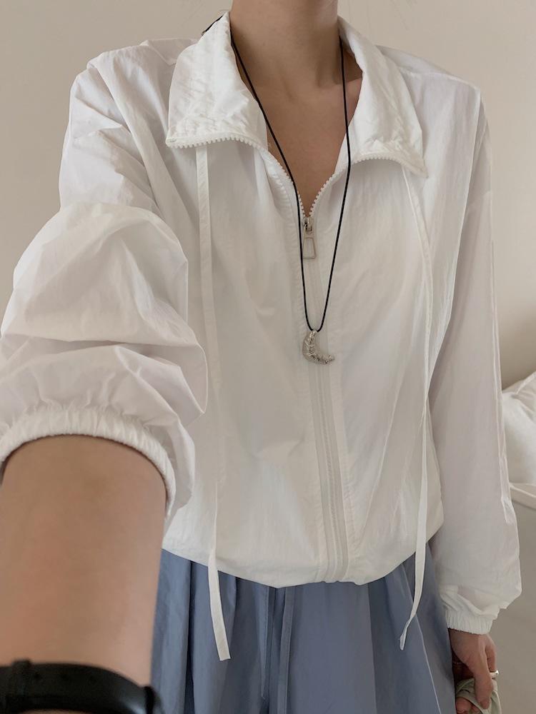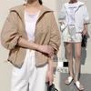 Foto Real de Chaqueta de Protección Solar de Tela de Secado Rápido de Manga Larga Dobladillo Suelto Camisa de Protección Solar