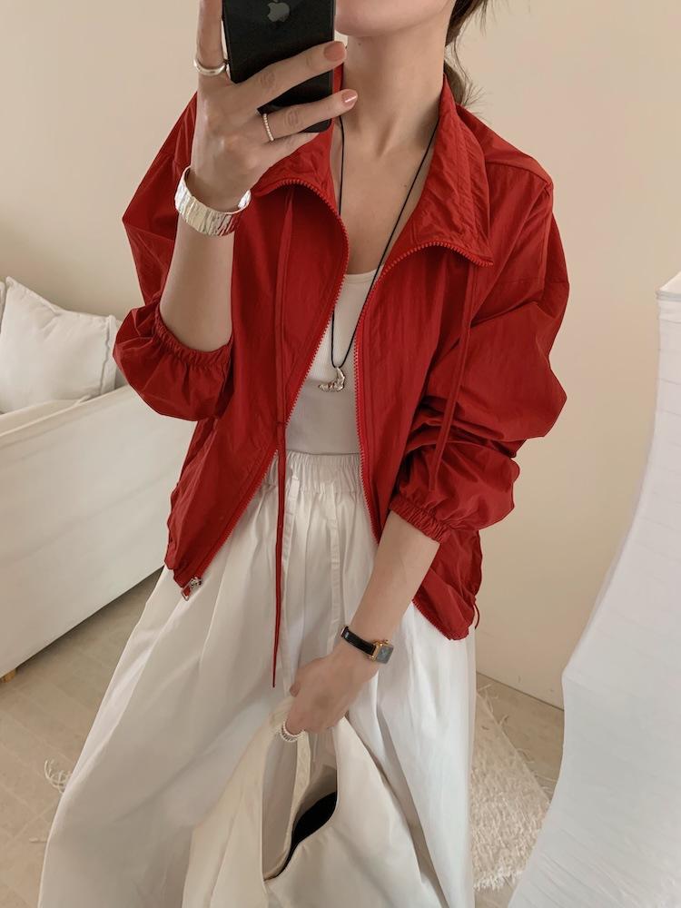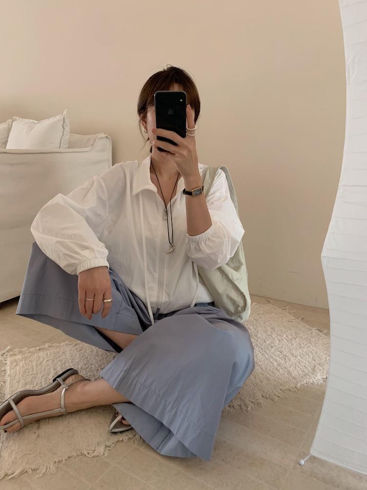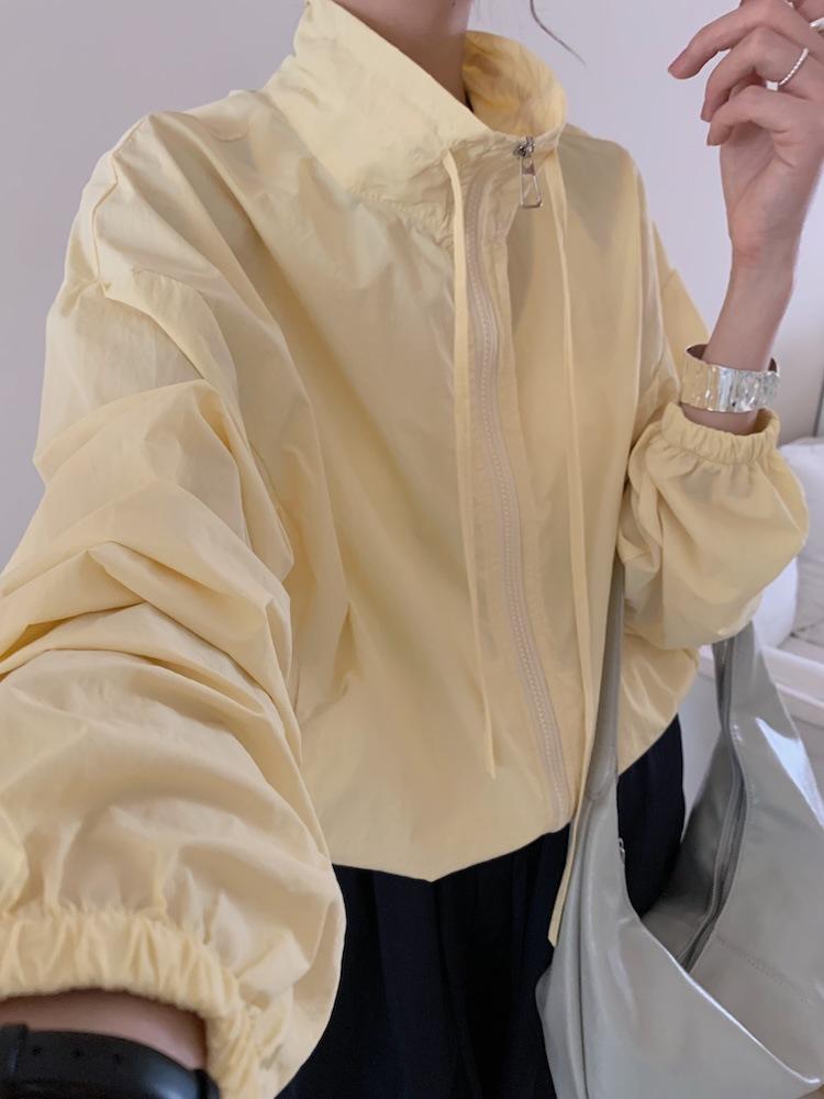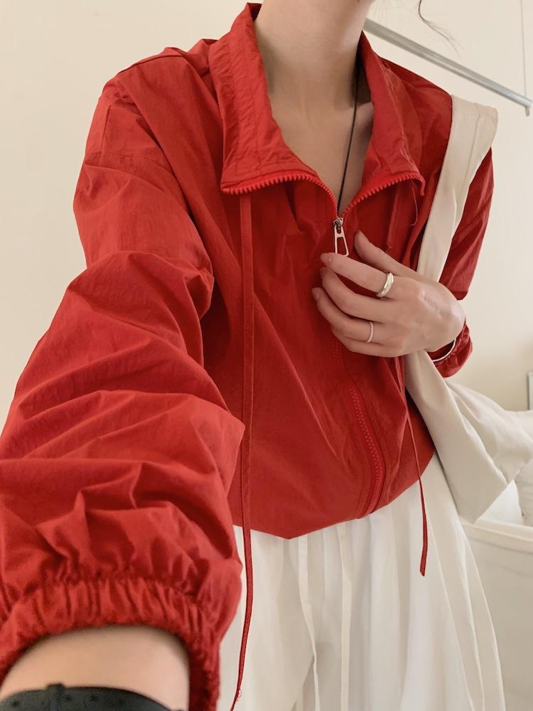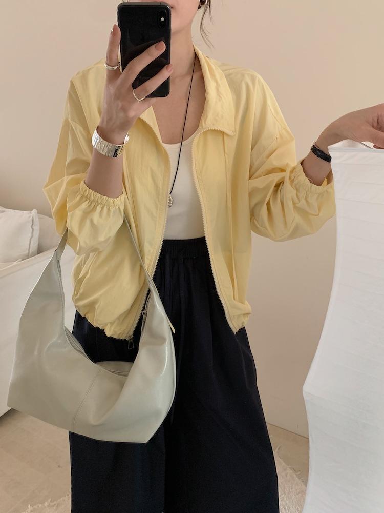 Foto Real de Chaqueta de Protección Solar de Tela de Secado Rápido de Manga Larga Dobladillo Suelto Camisa de Protección Solar