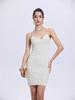 Vestido Sexy Hottie Estilo Europeo y Americano con Aberturas y Tirantes Verano Nuevo Estilo Cuello en V Profundo Ajustado Textura Estéreo Falda Corta Ceñida a las Caderas