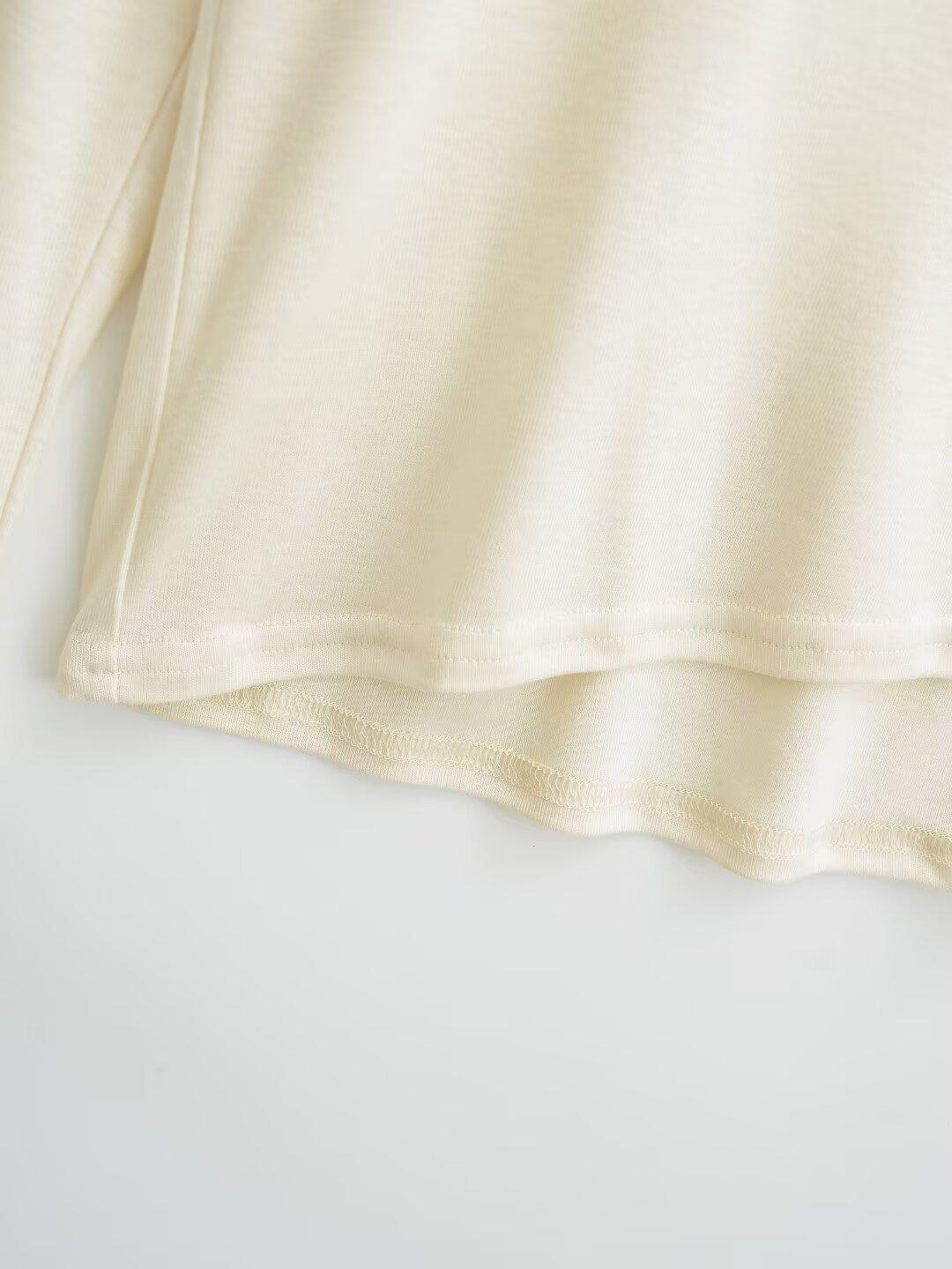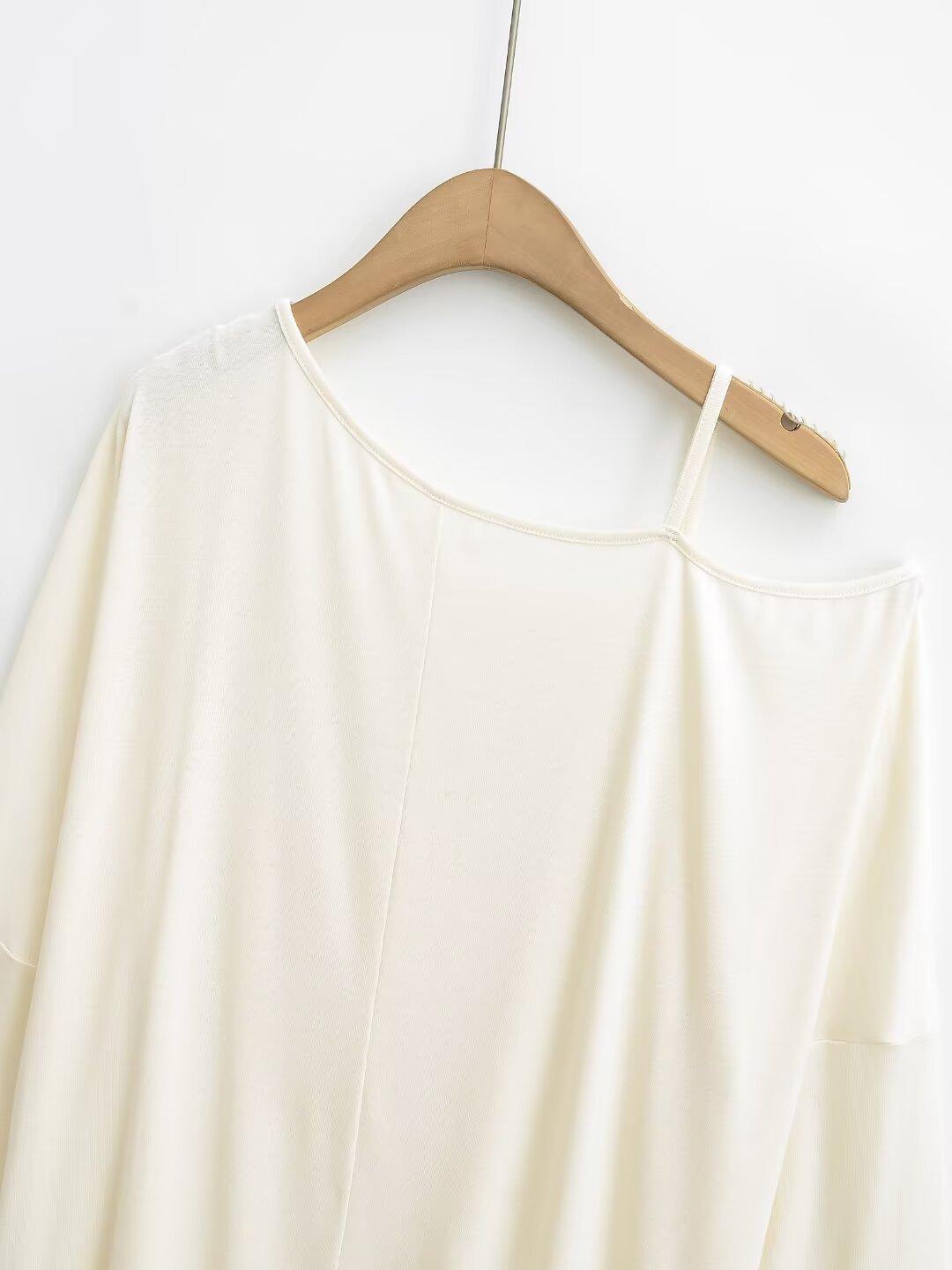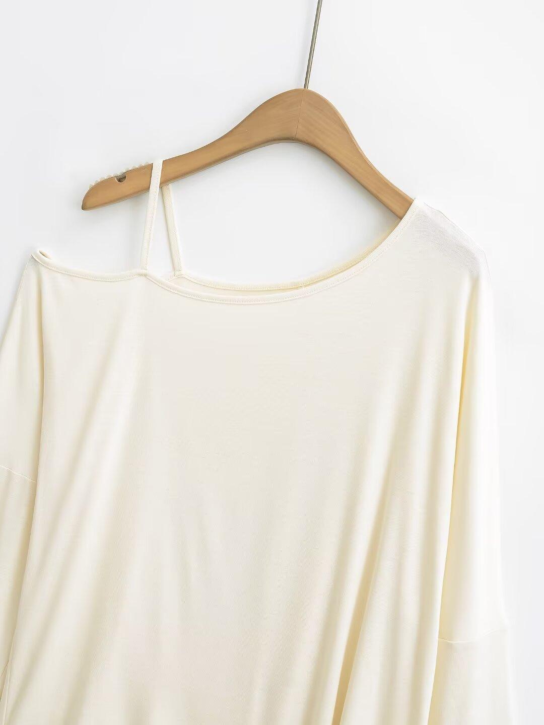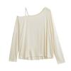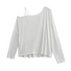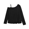 1968-24 Otoño Nuevo American Spice Girl Elegante Hombro Caído Irregular Hombro Inclinado Pequeño Sling Camiseta Manga Larga