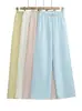 Pantalones de pierna ancha rosa vintage para mujer 2025 Nuevo verano delgado cintura alta holgados a rayas casuales