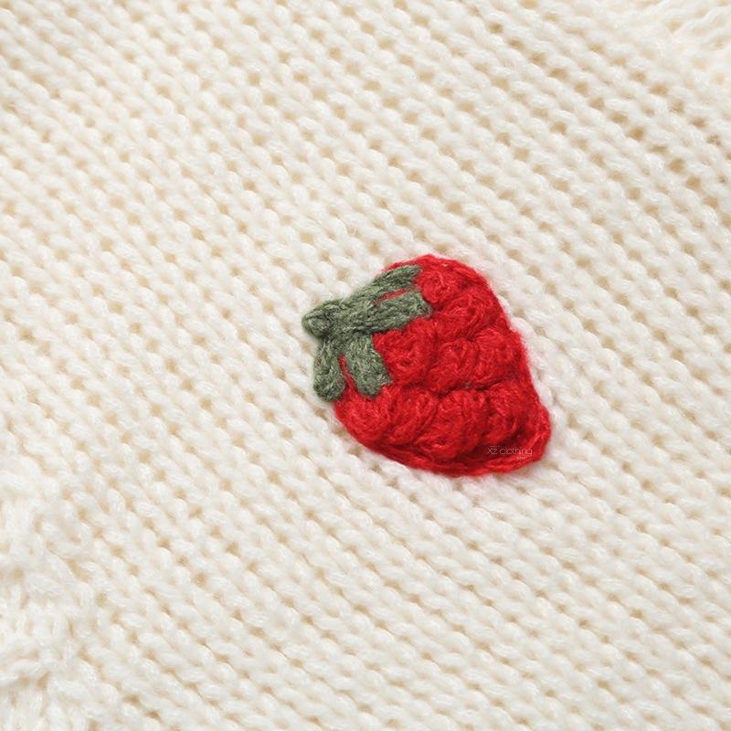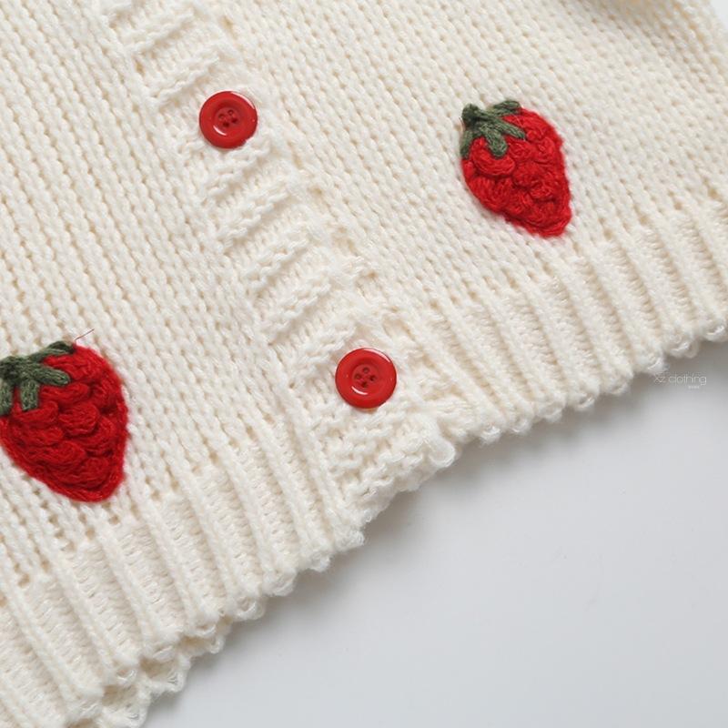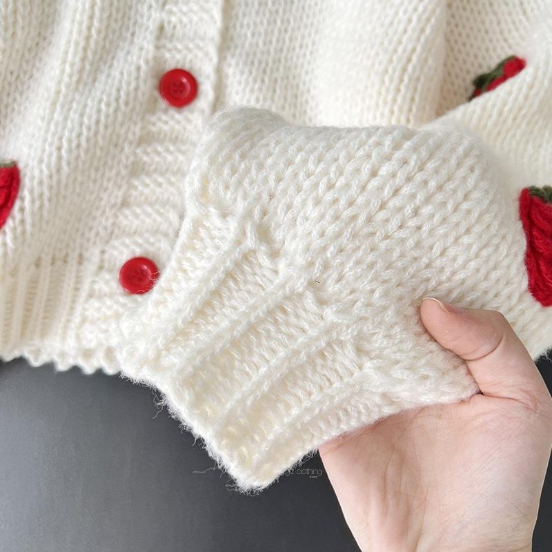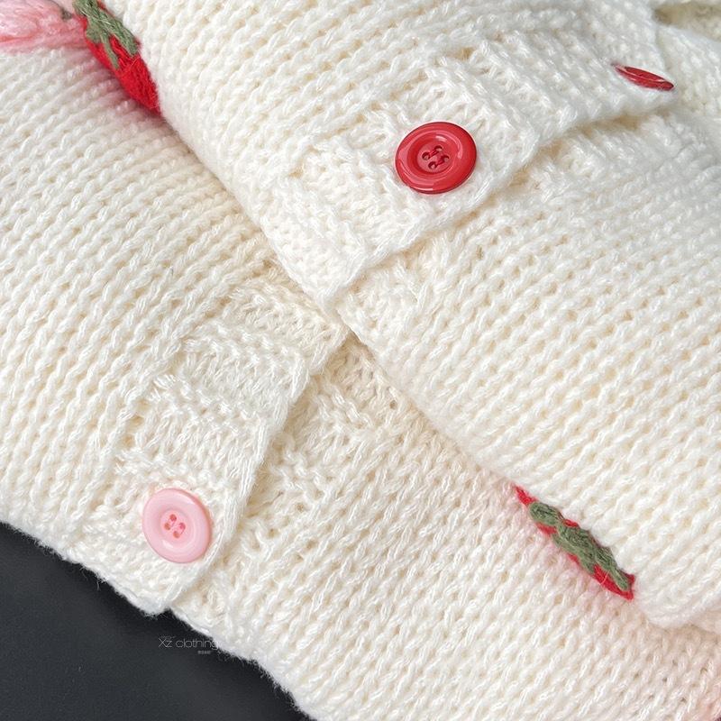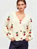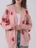 Cárdigan de Punto Jacquard de Fresa Bordado Tridimensional Reductor de Edad de Moda Otoño e Invierno Europeo y Americano Suéter de Cuello en V Suave Ceroso Agradable al Tacto