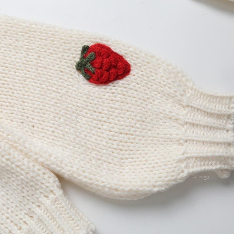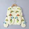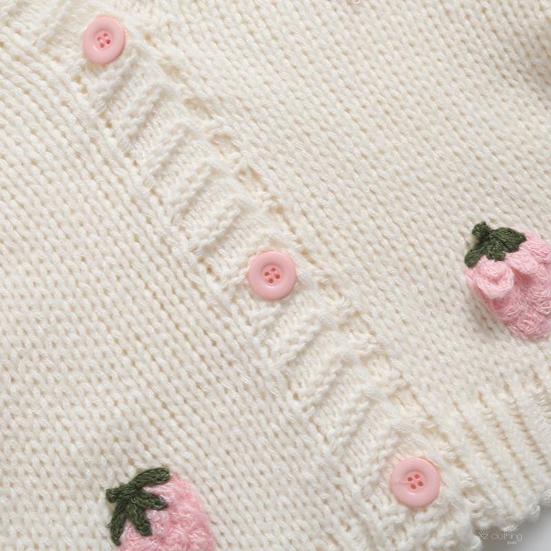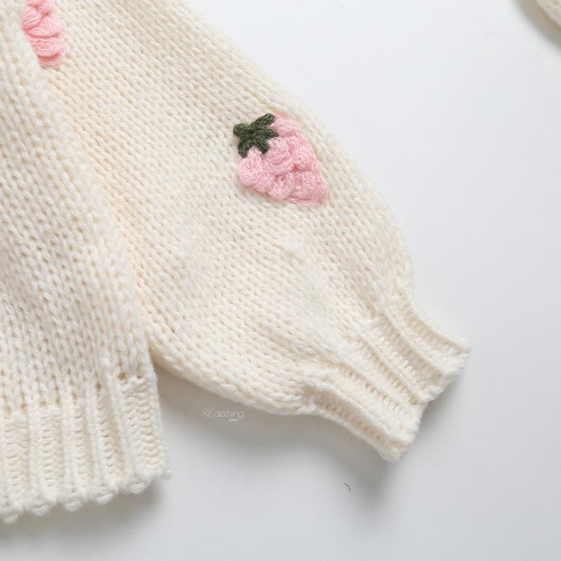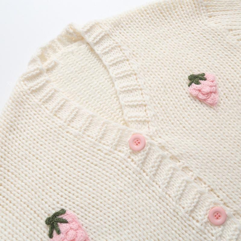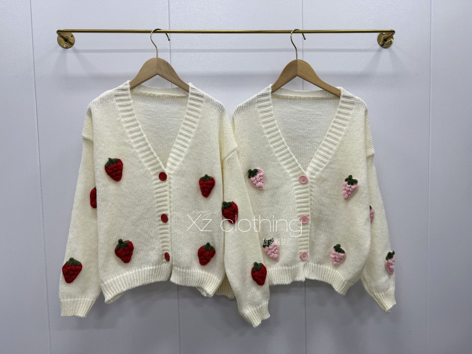 Cárdigan de Punto Jacquard de Fresa Bordado Tridimensional Reductor de Edad de Moda Otoño e Invierno Europeo y Americano Suéter de Cuello en V Suave Ceroso Agradable al Tacto