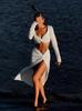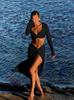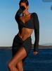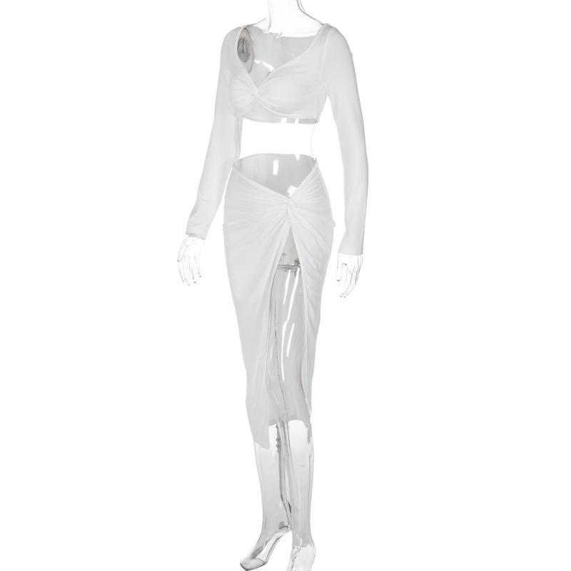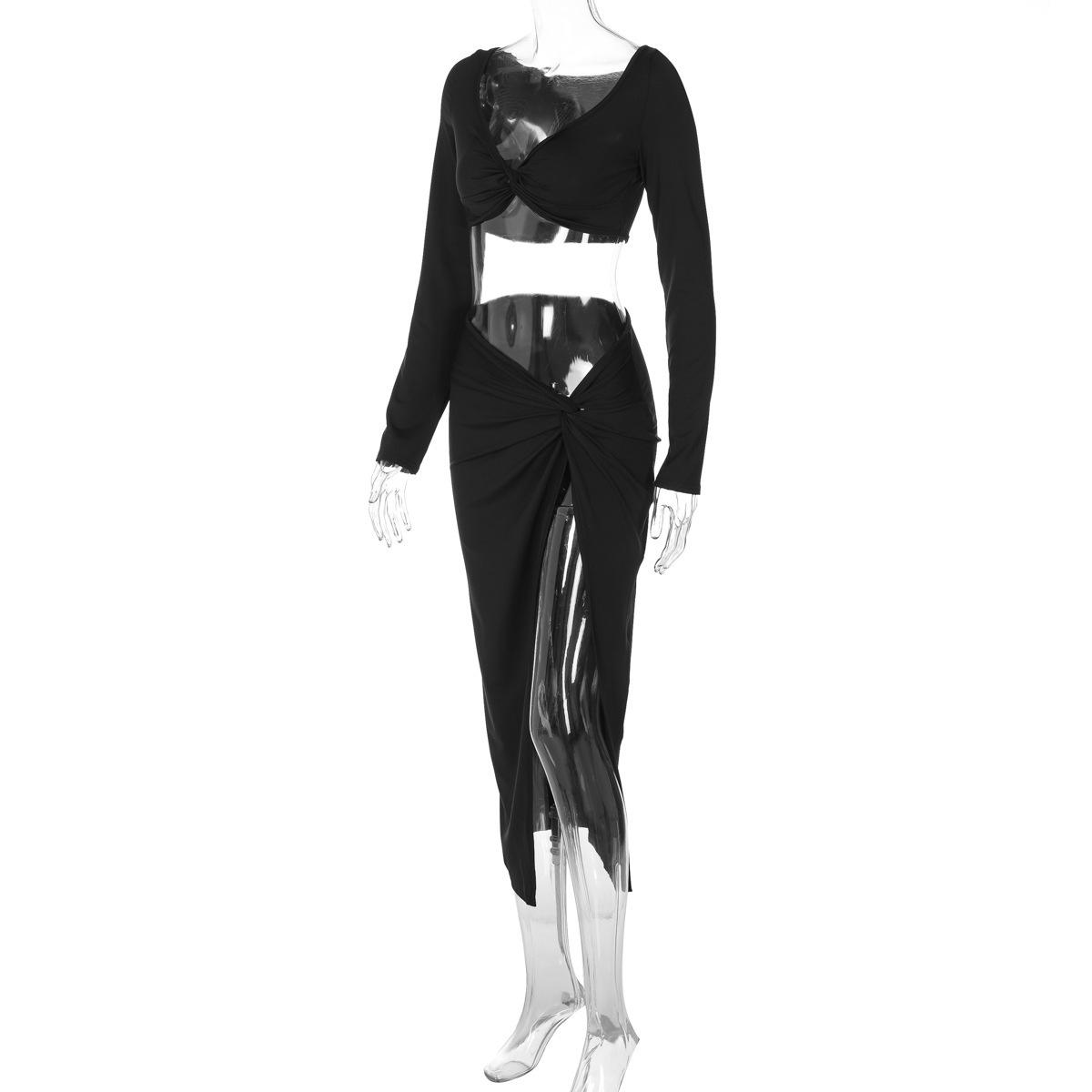 Conjunto de dos piezas de Amazon para mujer, de manga larga, cuello en V, sexy, ajustado, cintura alta, falda dividida, verano 2024