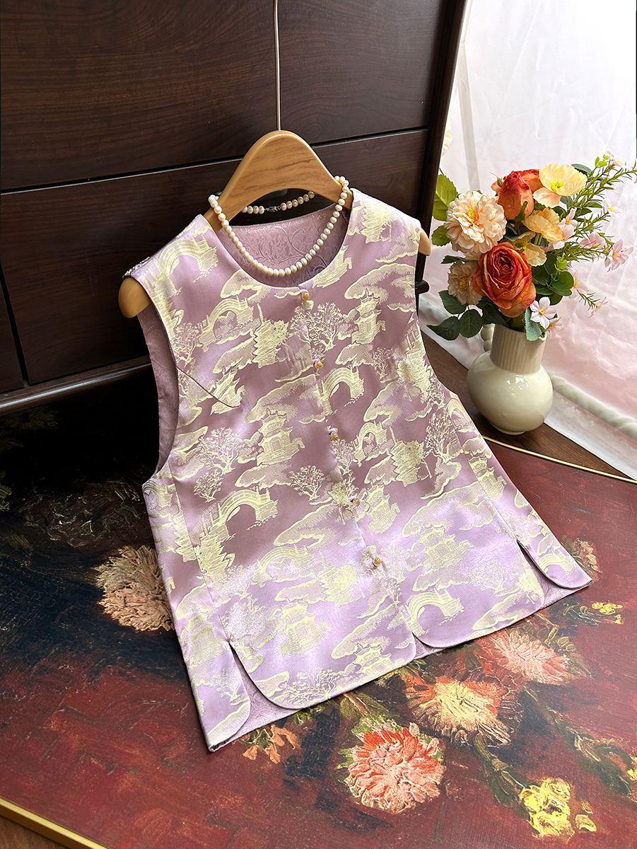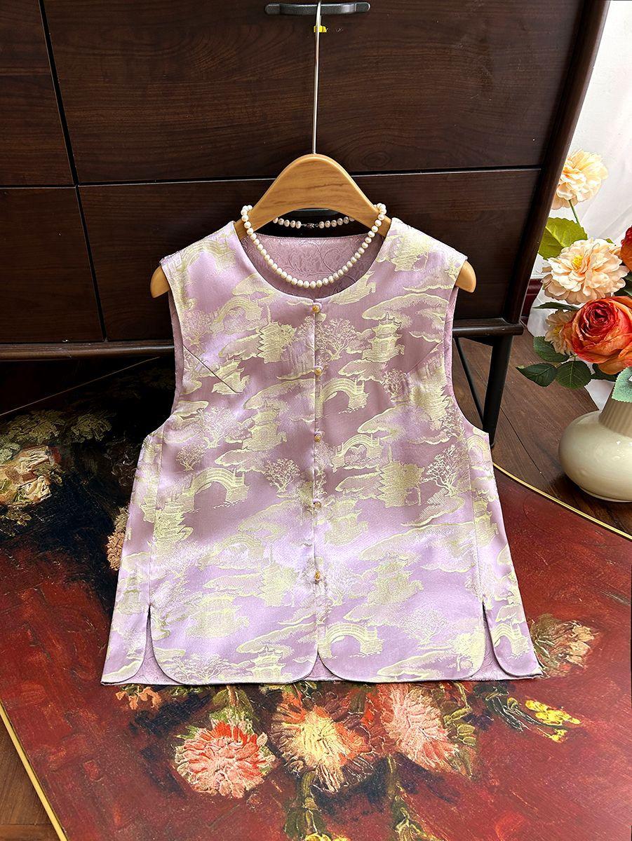 Chaleco Jacquard Fresco de Estilo Chino Nuevo de Doble Cara para Mujer Primavera 2025 Nuevo Elegante Ajustado