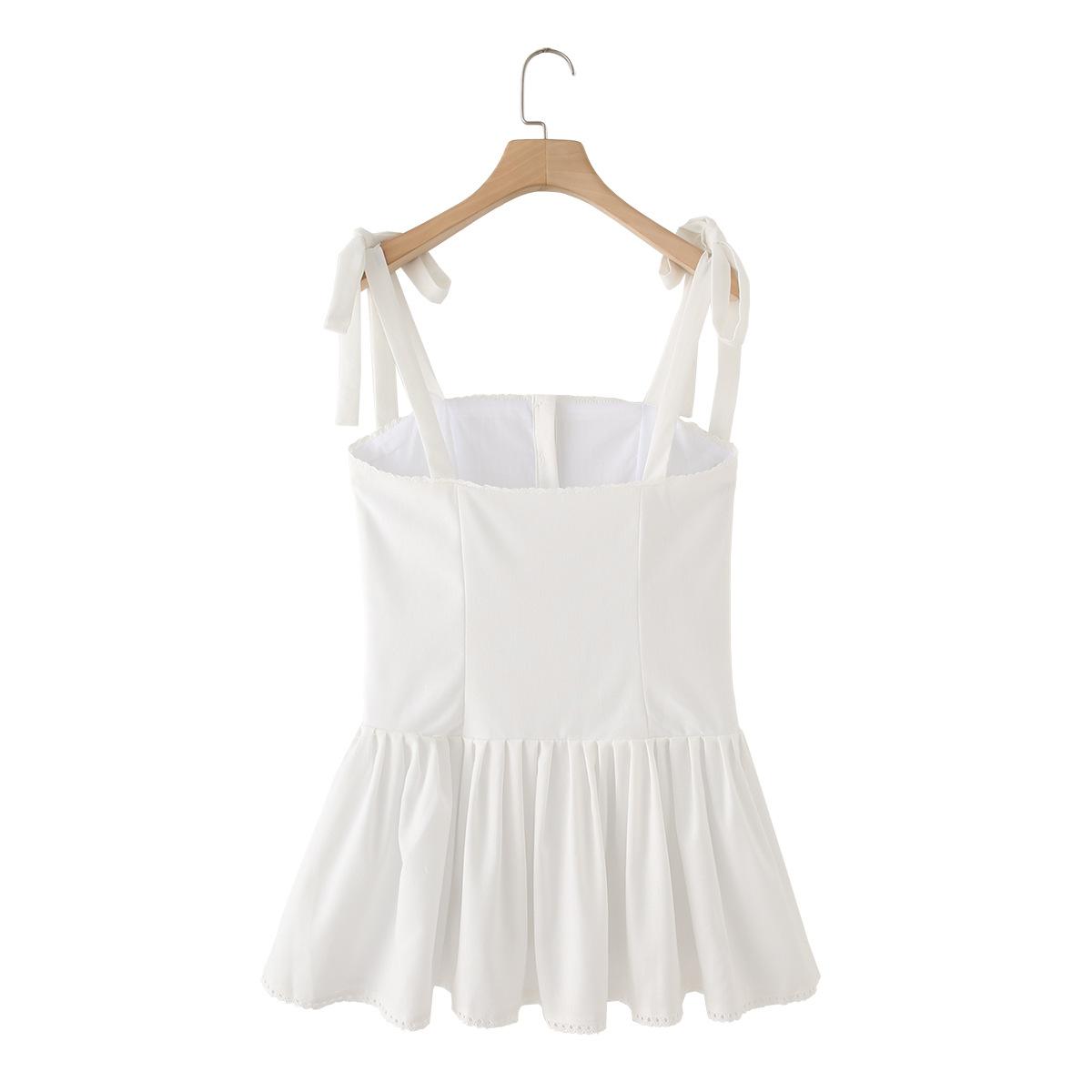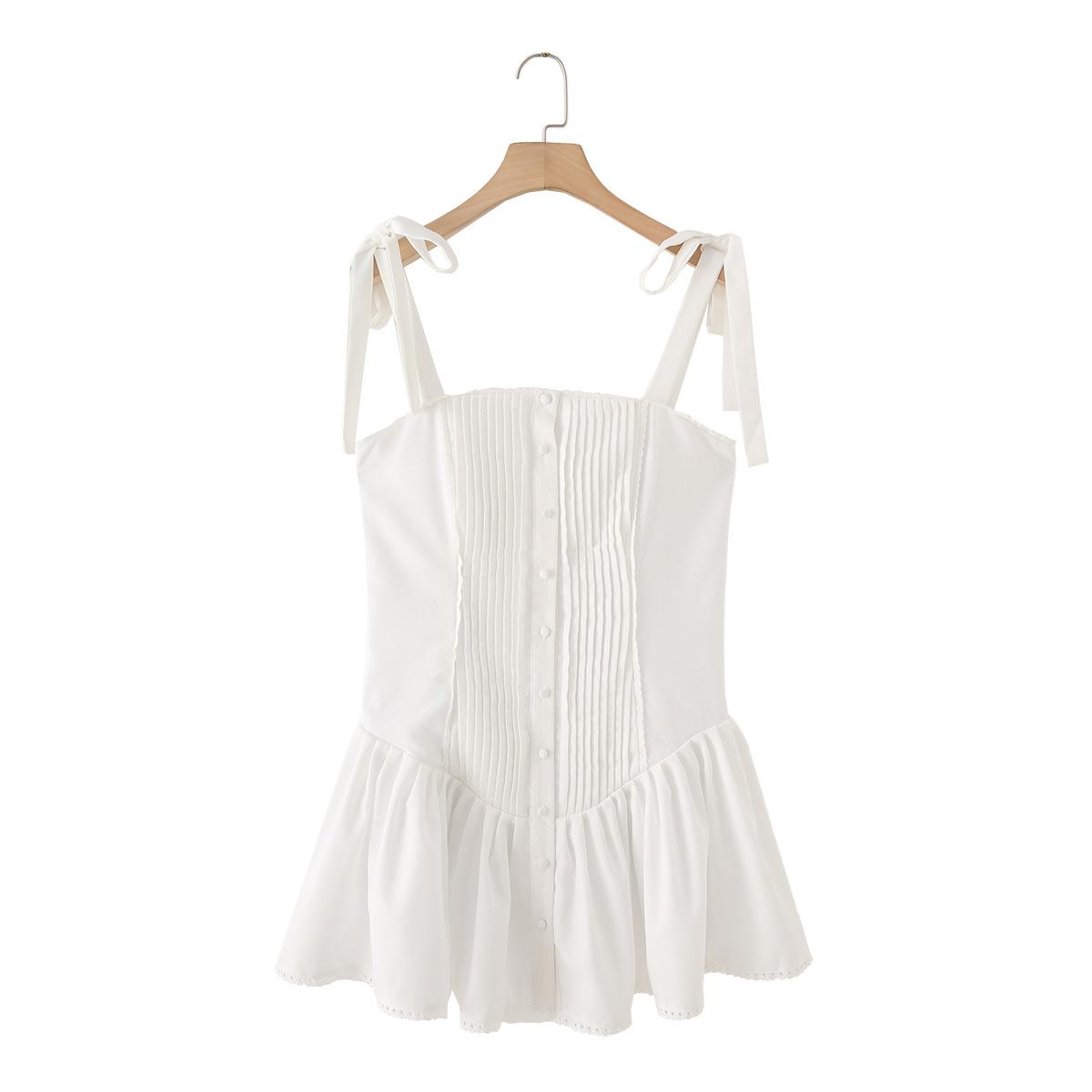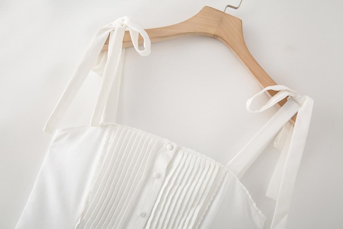 Exportación Transfronteriza Ropa de Mujer 2025 Verano Estilo Europeo y Americano Vestido de Tirantes Ancho Plisado de Encaje Decorado con Lazo para Mujer M86806
