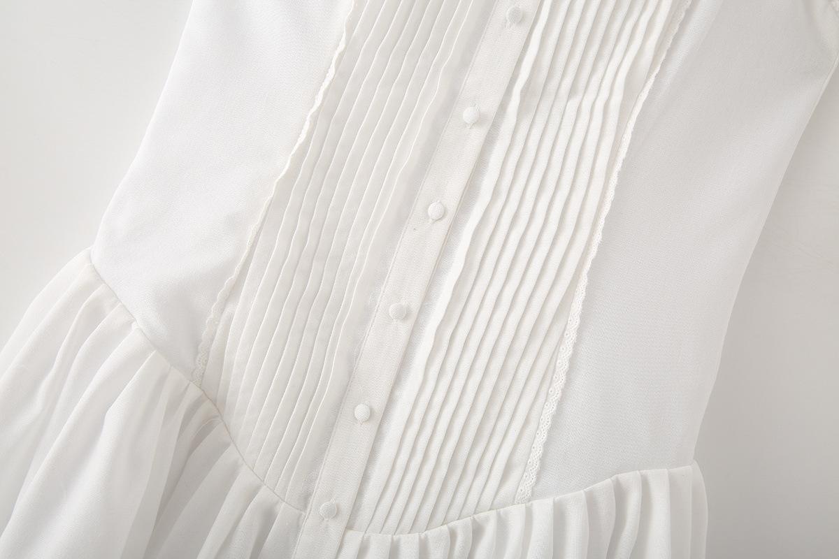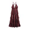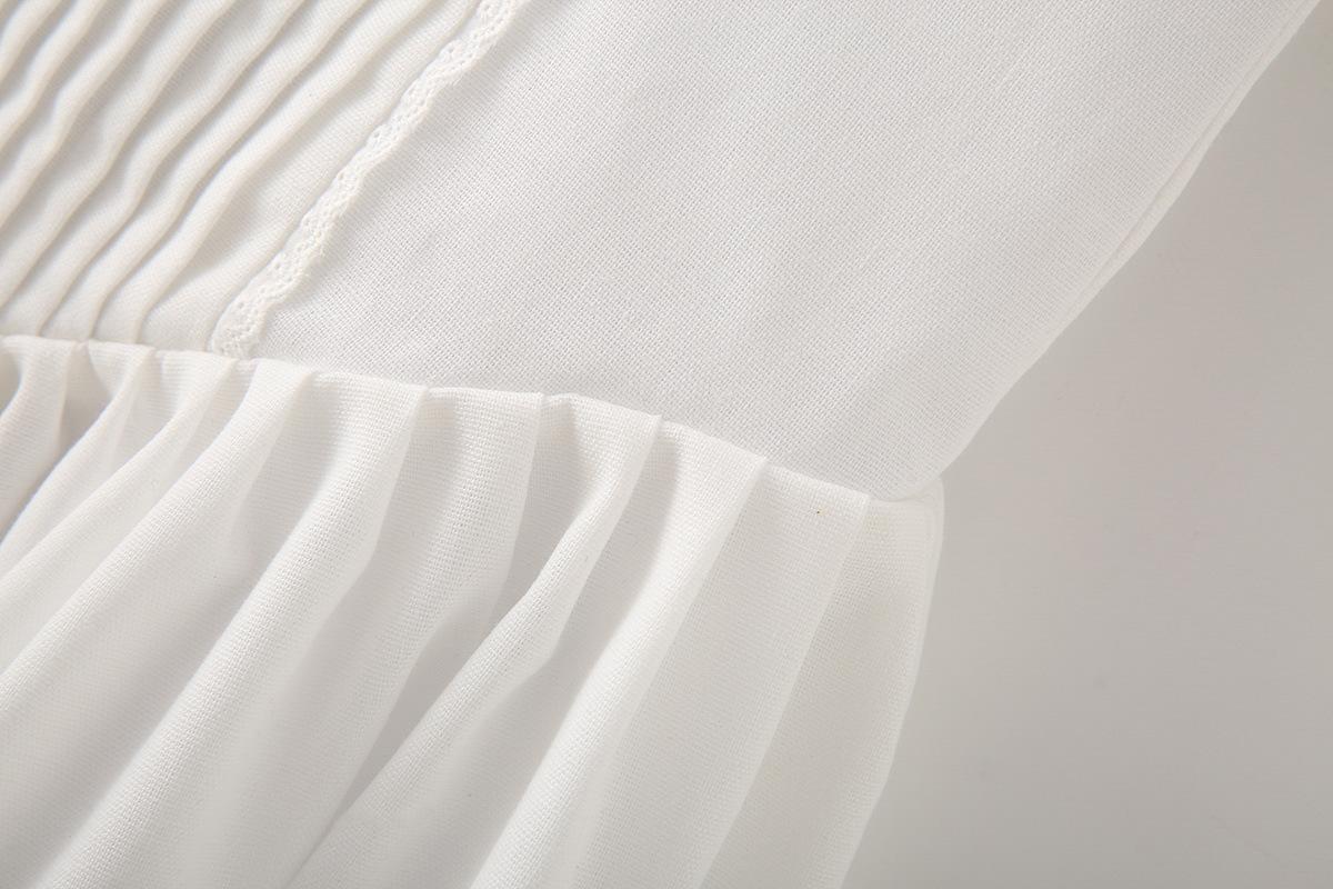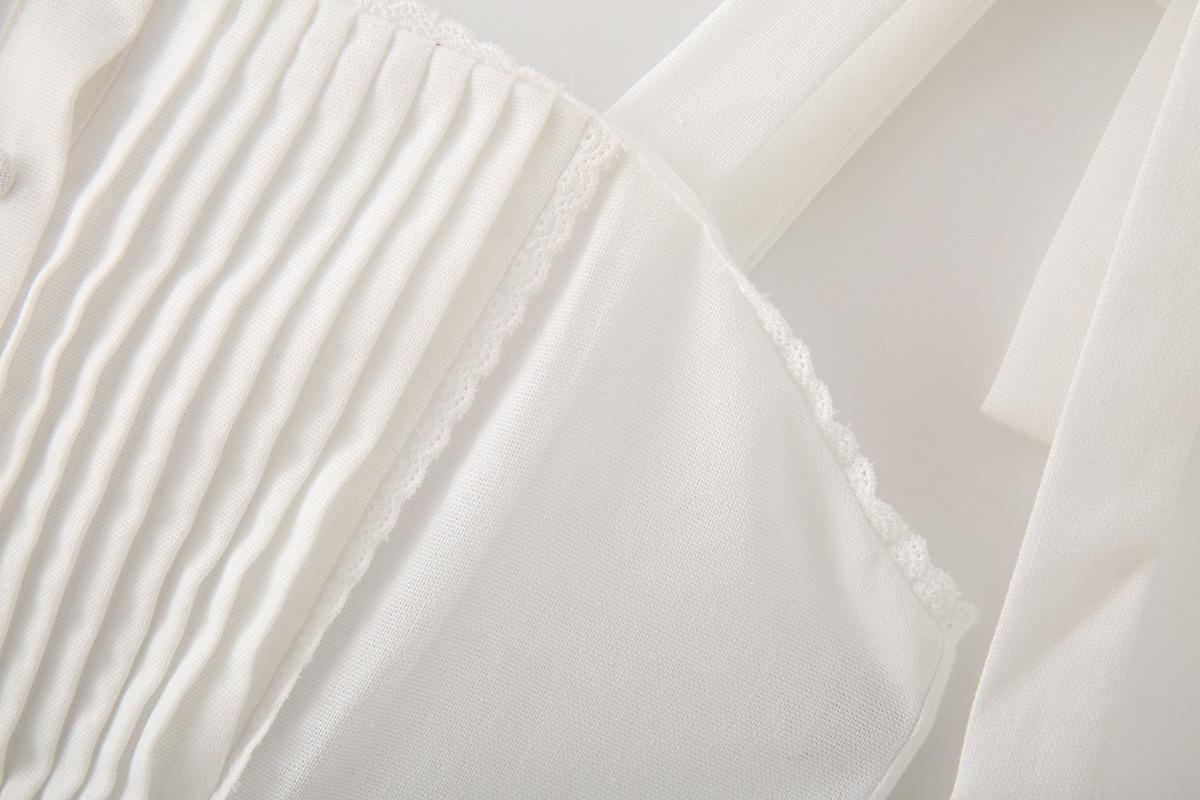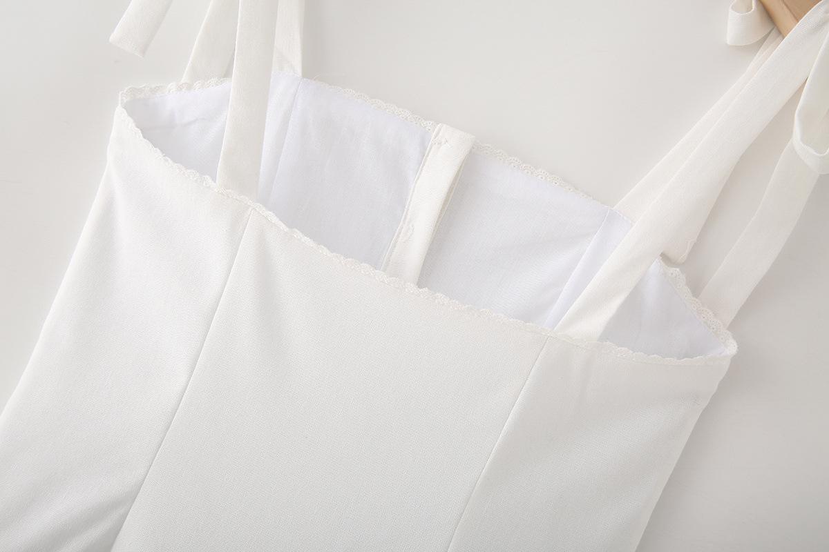 Exportación Transfronteriza Ropa de Mujer 2025 Verano Estilo Europeo y Americano Vestido de Tirantes Ancho Plisado de Encaje Decorado con Lazo para Mujer M86806