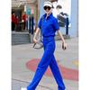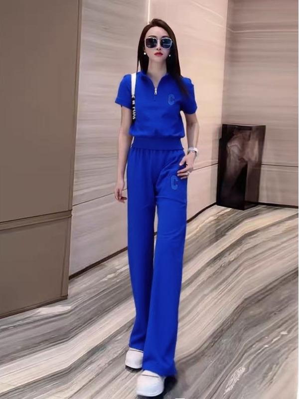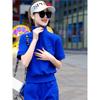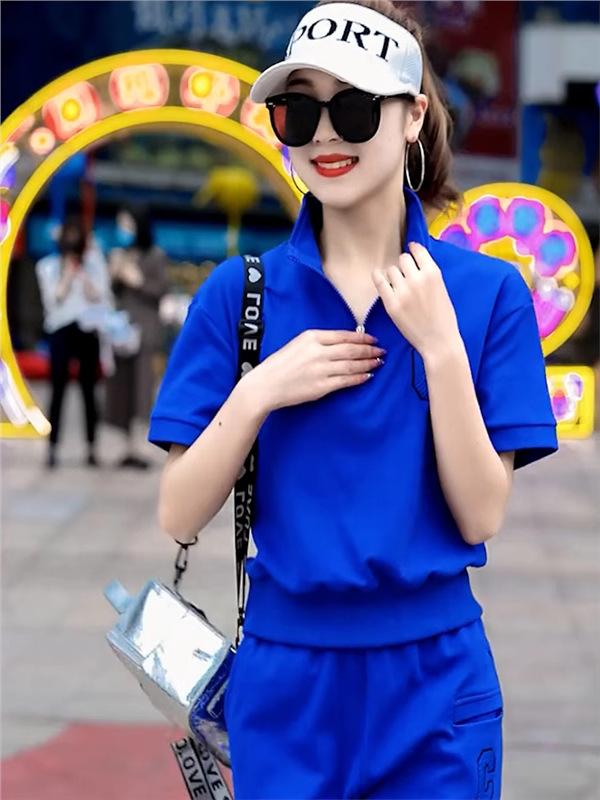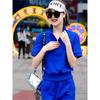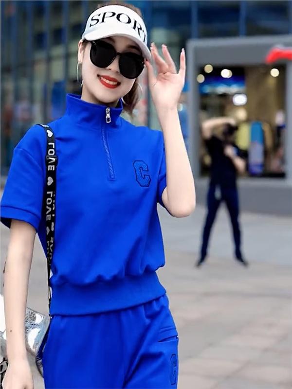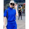 Traje Deportivo y de Ocio para Mujer 2025 Verano Nuevo Estilo Cuello Alto Azul Media Cremallera Look Adelgazante Conjunto de Dos Piezas Moderno