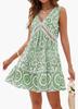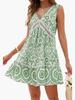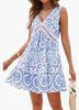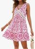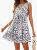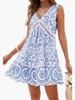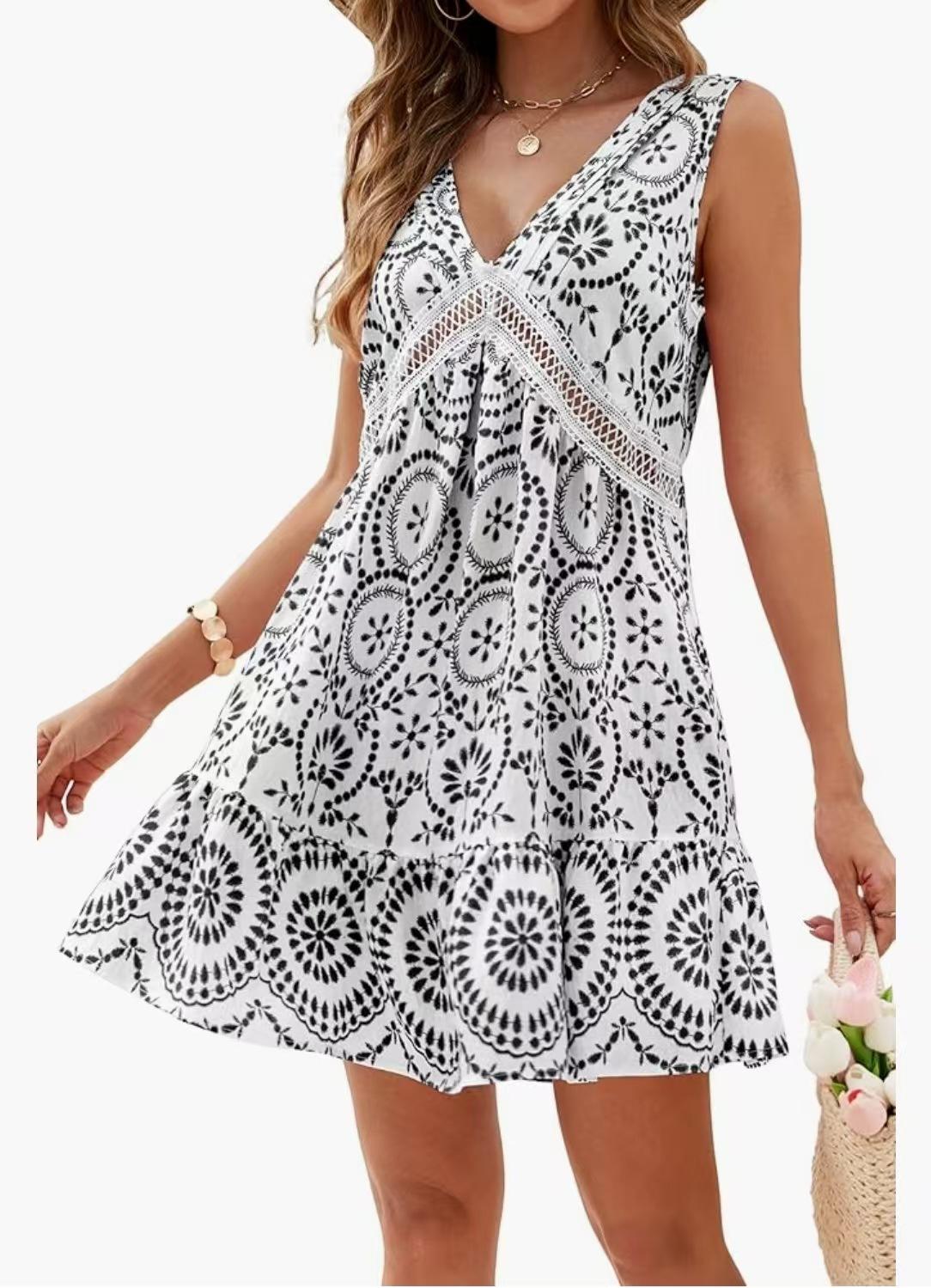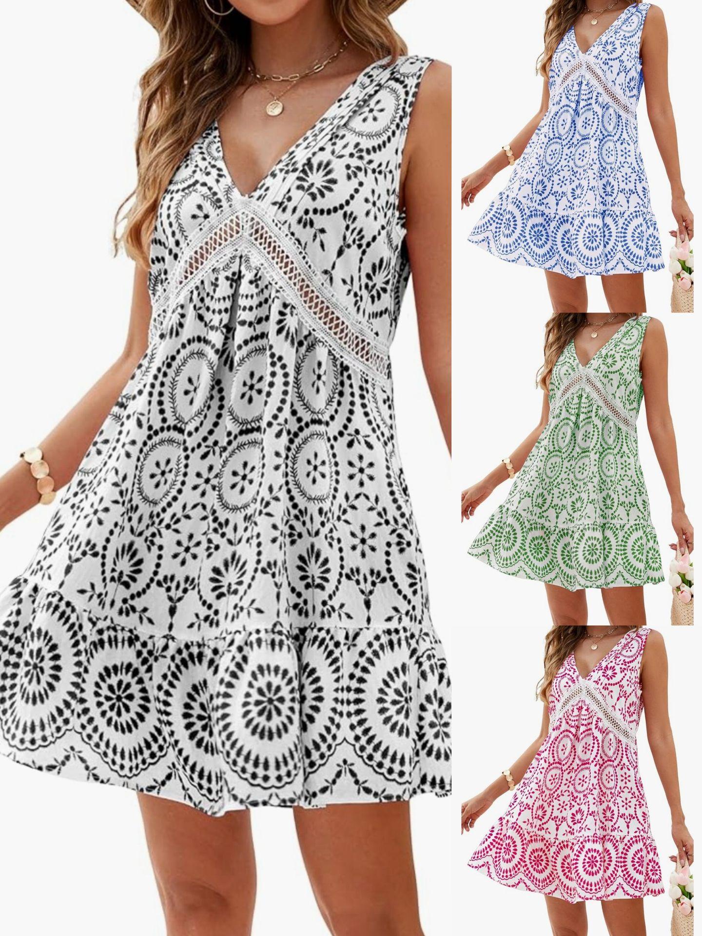 2025 Ropa de Mujer Transfronteriza Europea y Americana Amazon Primavera y Verano Nuevo Vestido Elegante Estampado de Encaje Calado con Cuello en V sin Mangas