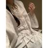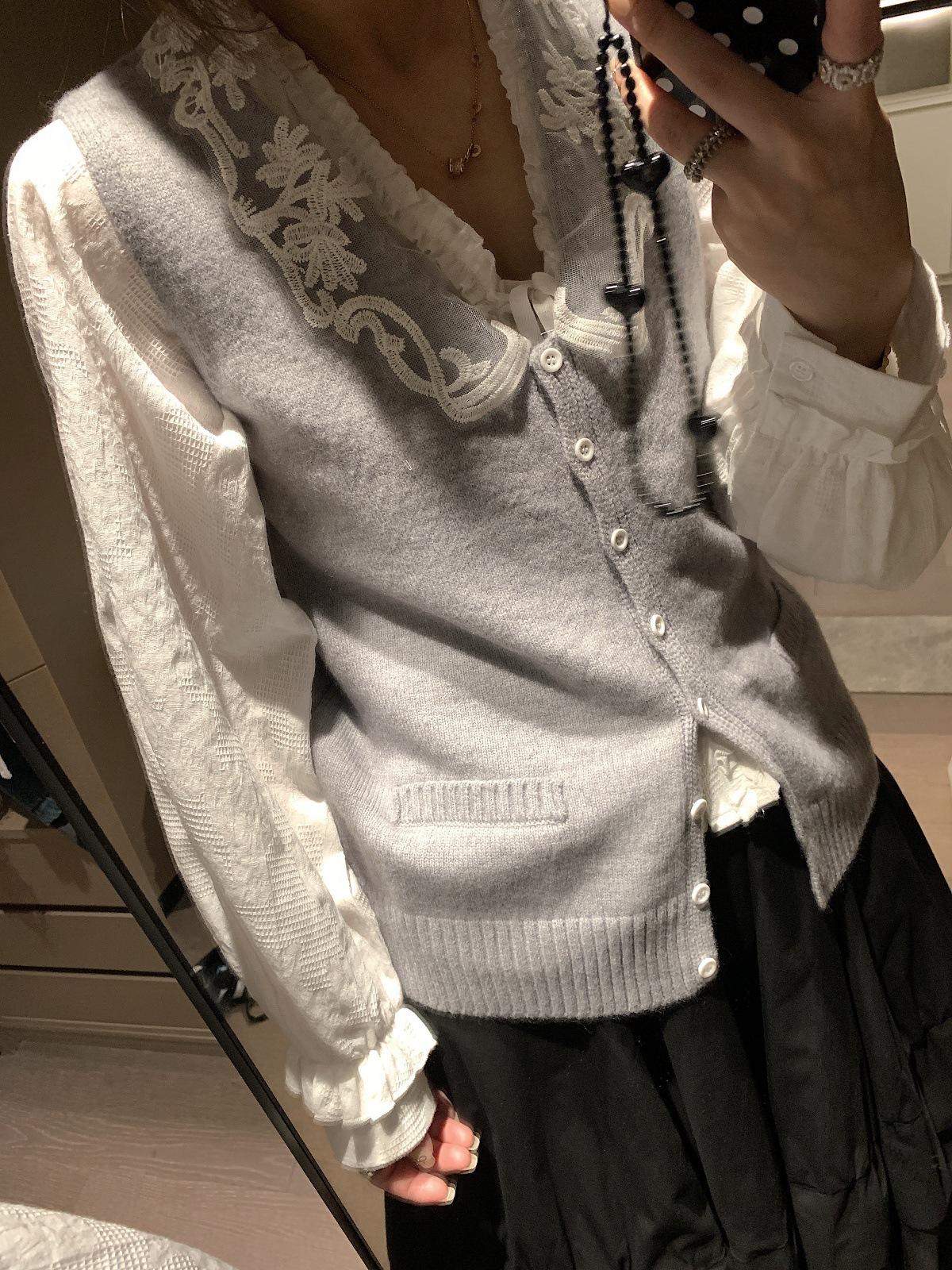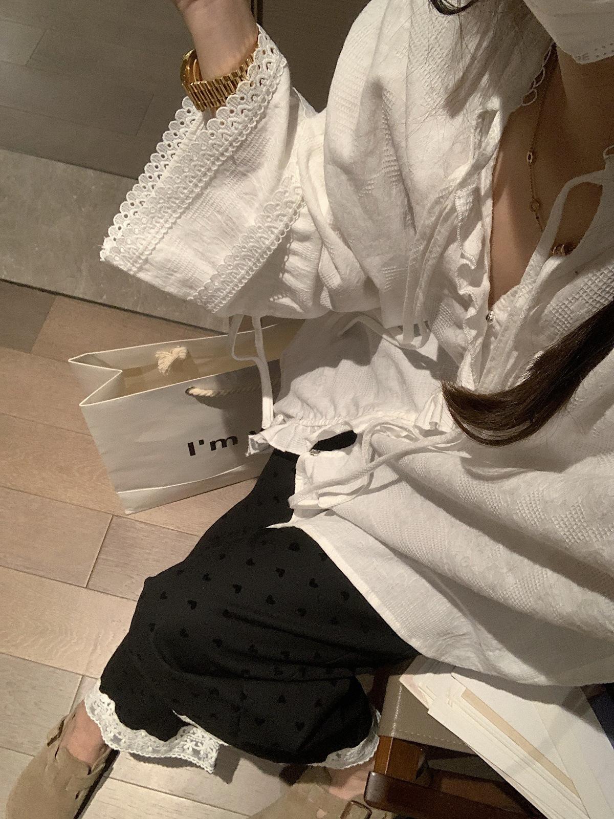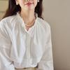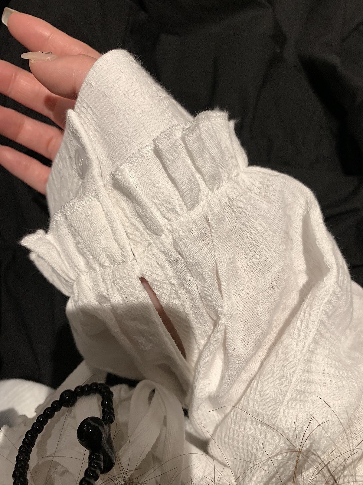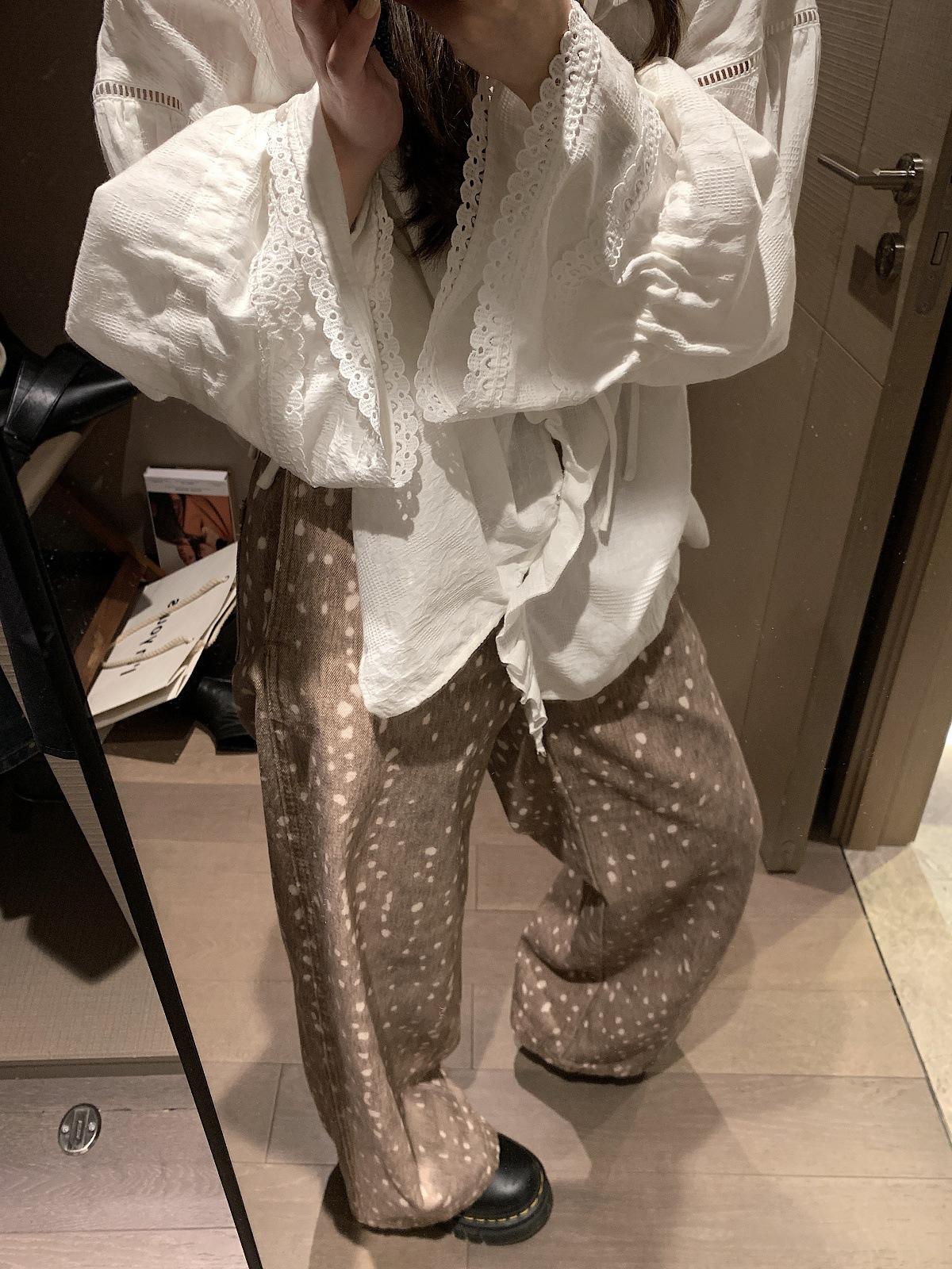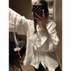 OHLABABY Camisa Elegante de Encaje de Manga Larga con Cuello en V Estilo Francés para Mujer Primavera Suelta Midi de Alta Calidad Top Blanco