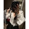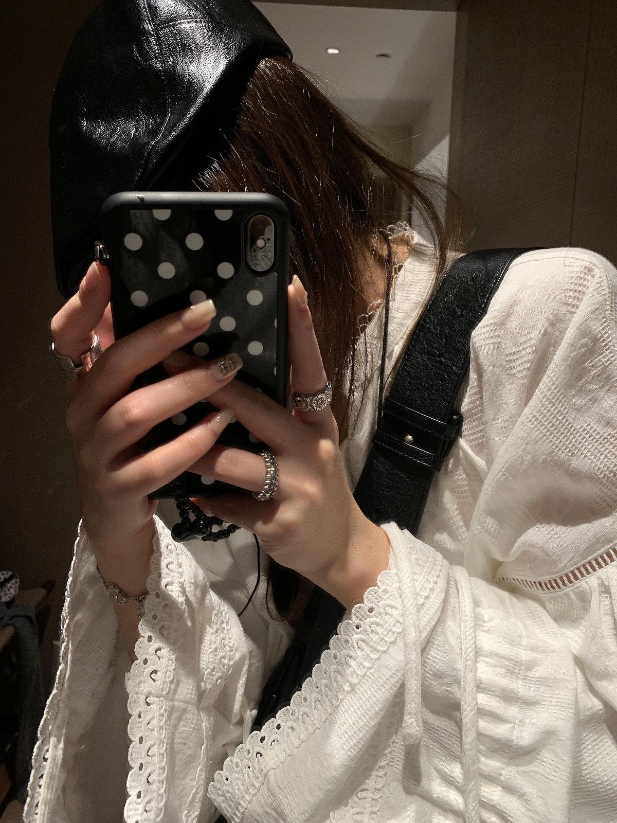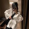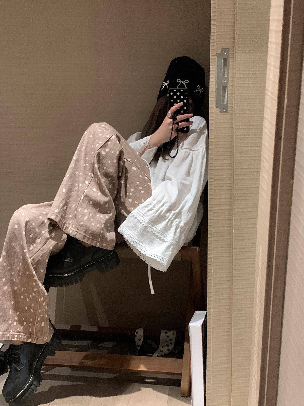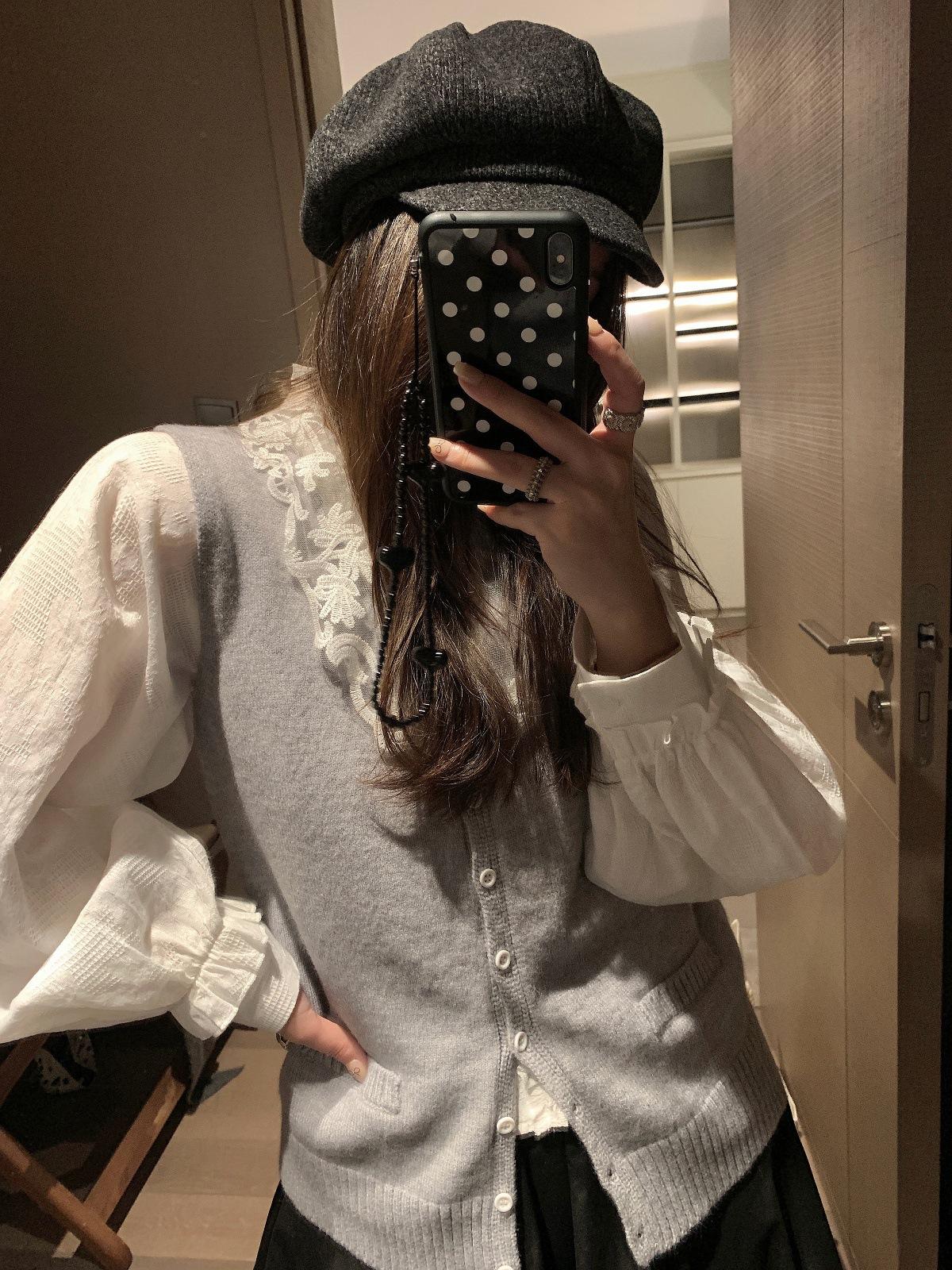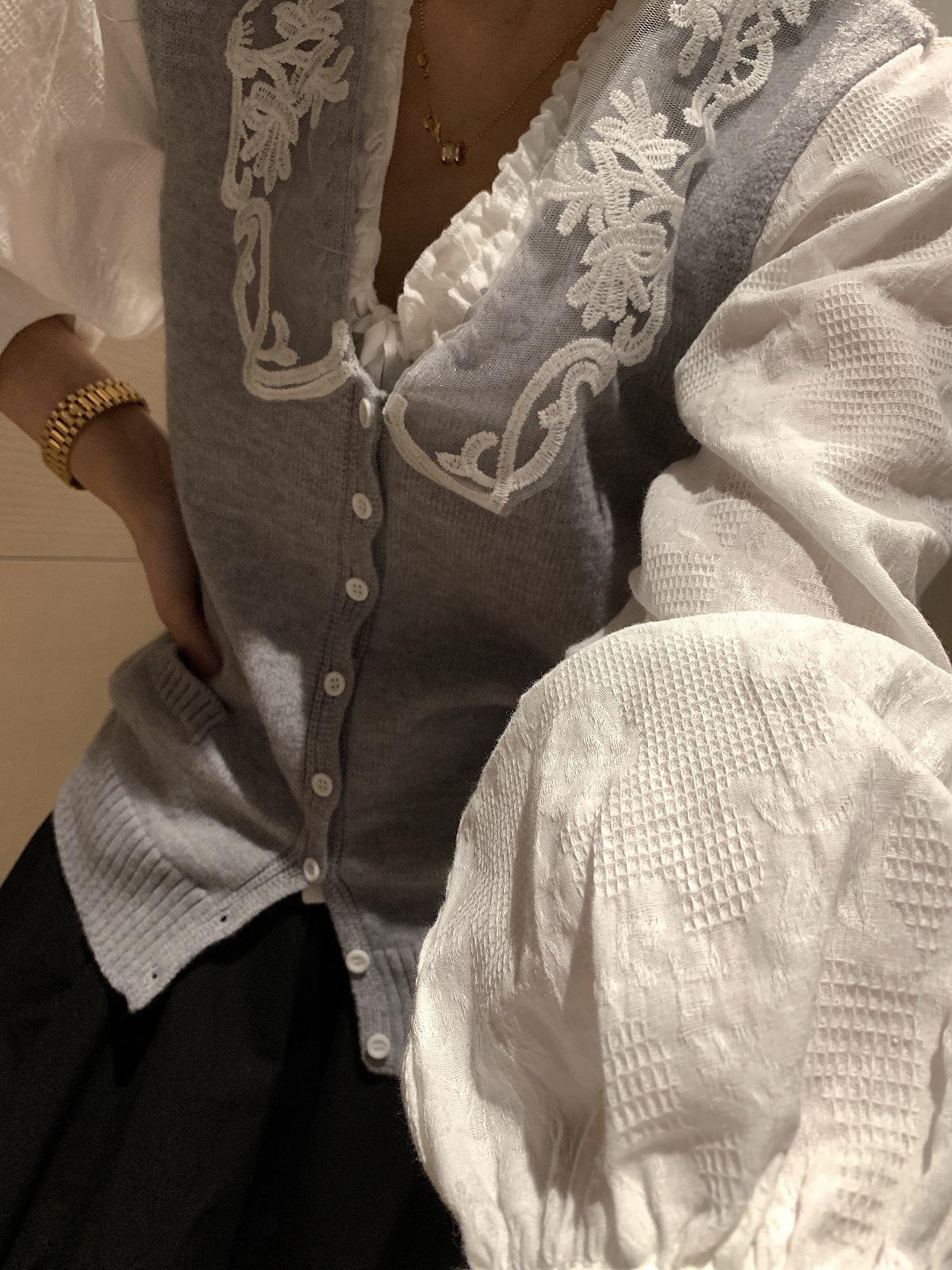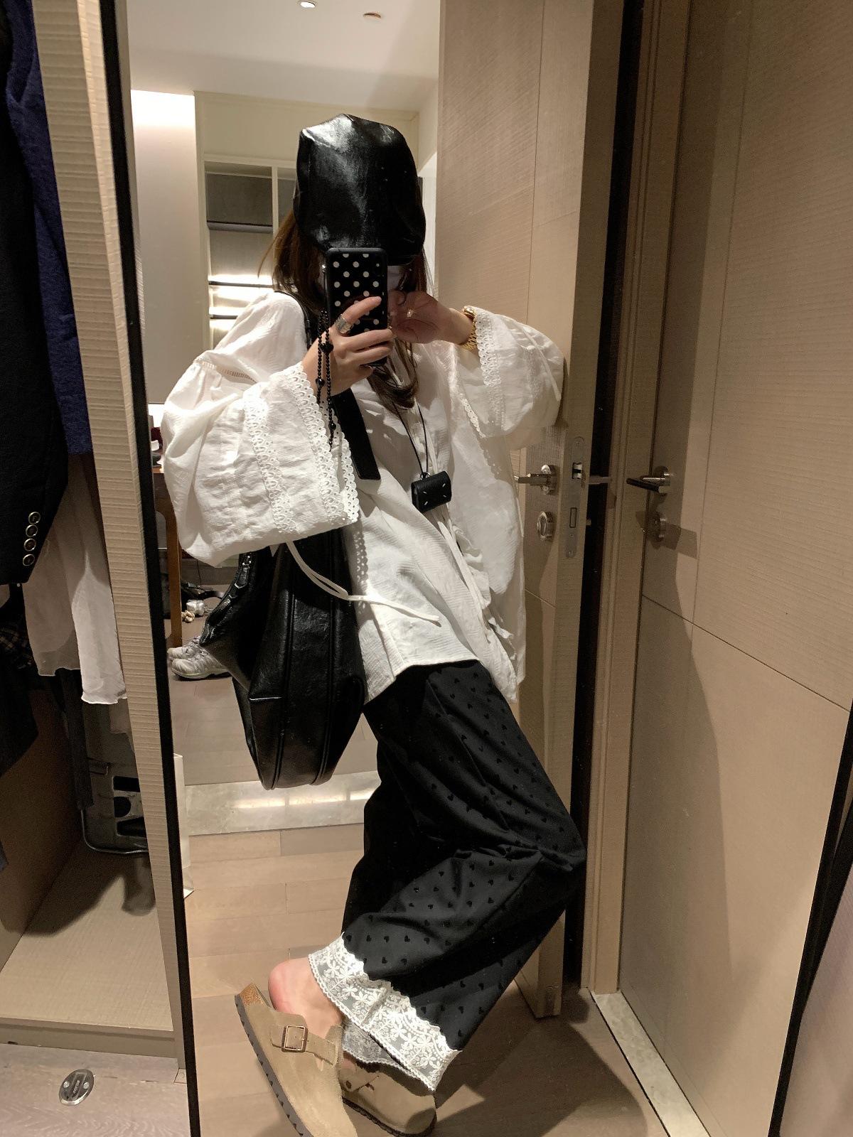 OHLABABY Camisa Elegante de Encaje de Manga Larga con Cuello en V Estilo Francés para Mujer Primavera Suelta Midi de Alta Calidad Top Blanco