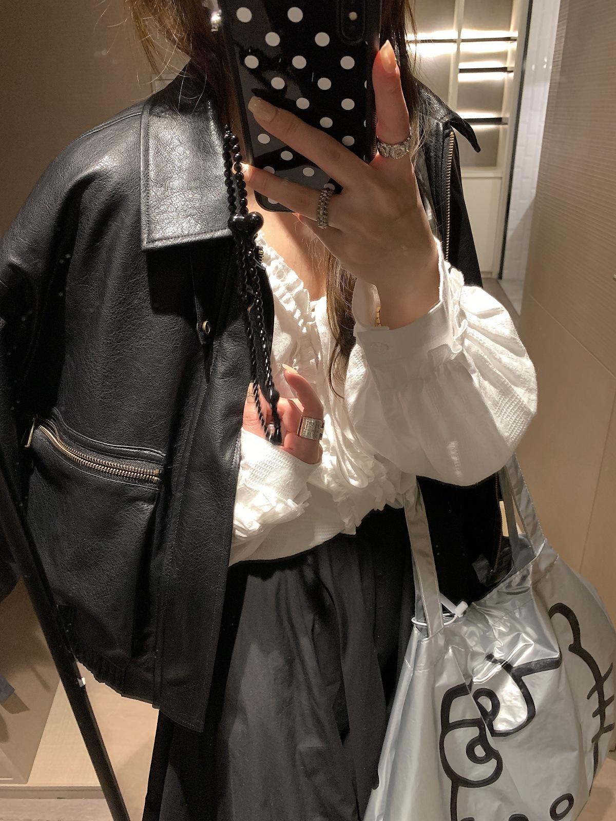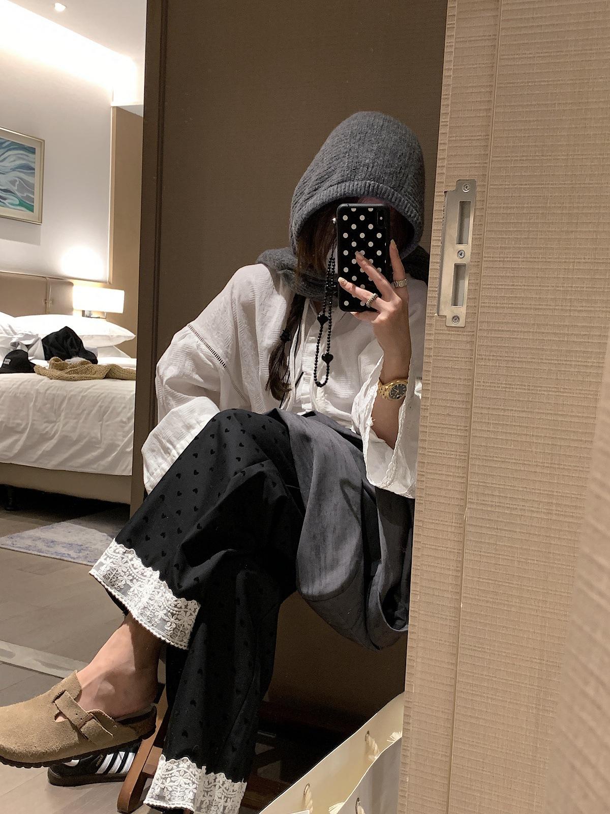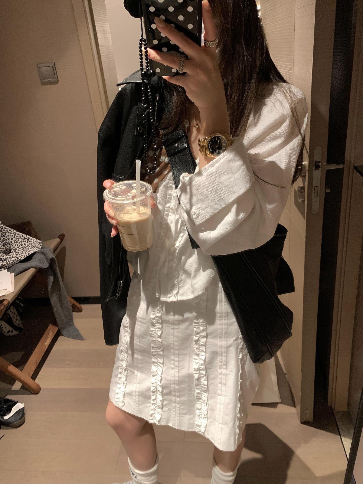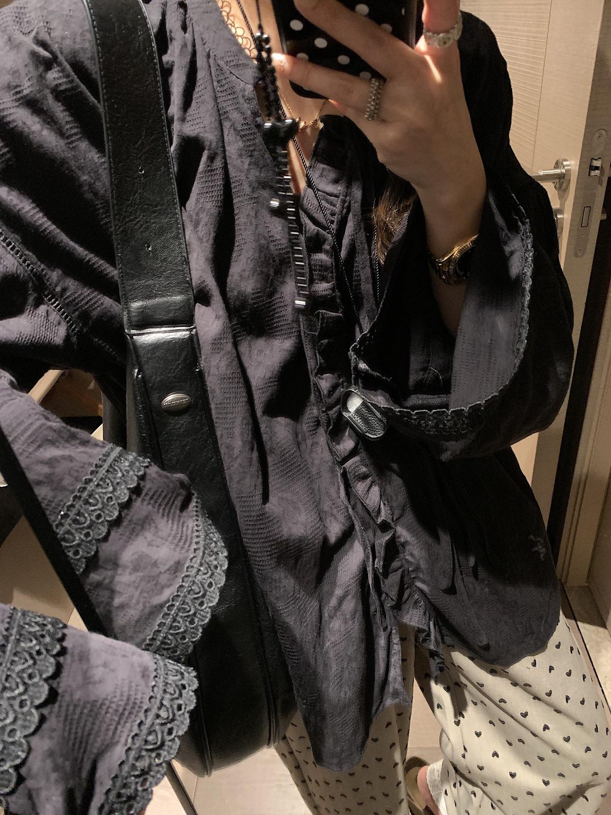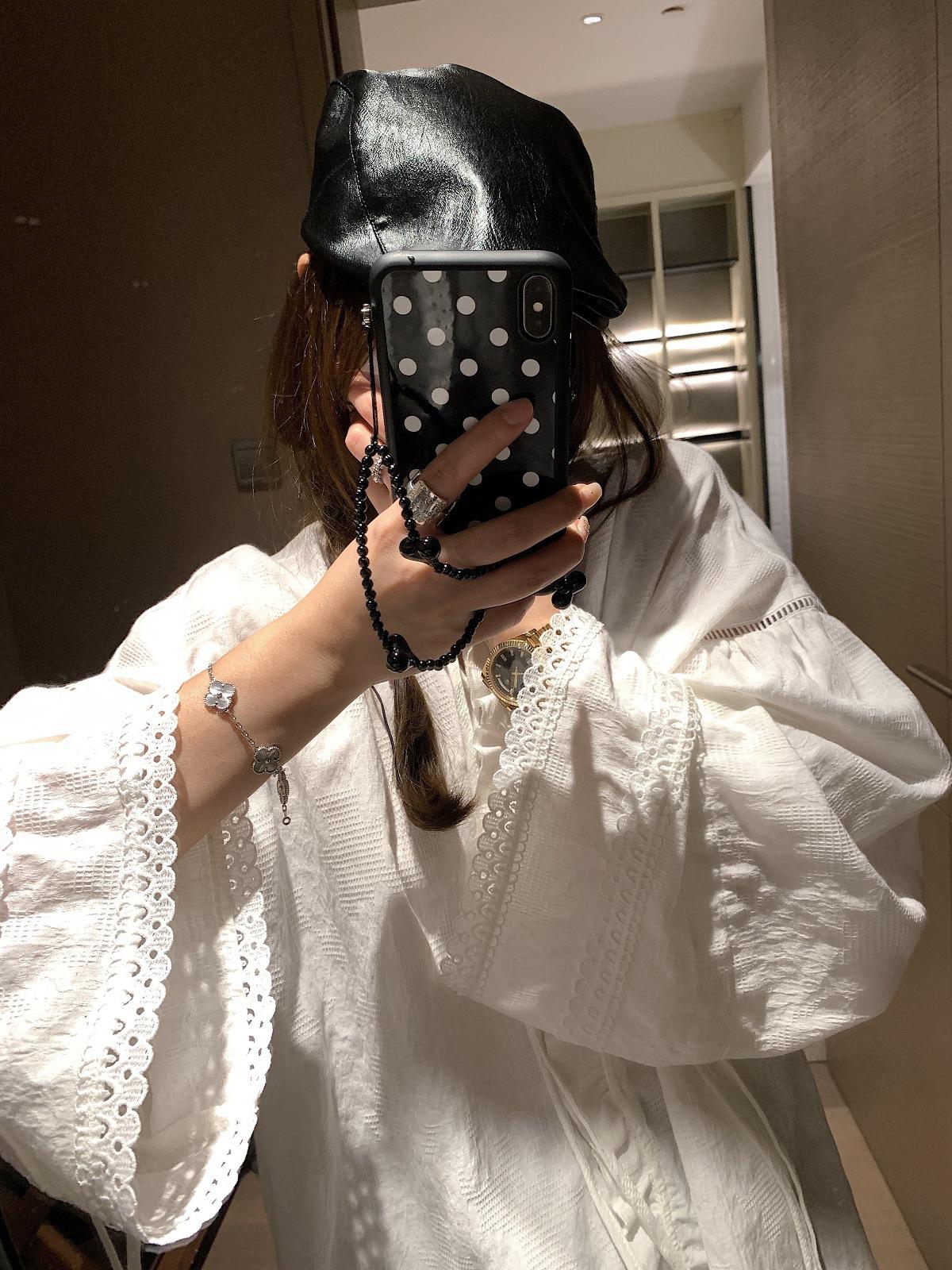 OHLABABY Camisa Elegante de Encaje de Manga Larga con Cuello en V Estilo Francés para Mujer Primavera Suelta Midi de Alta Calidad Top Blanco