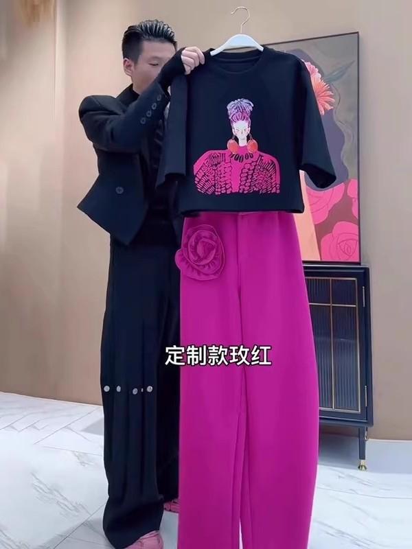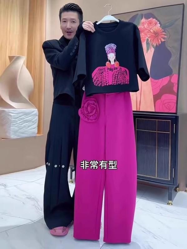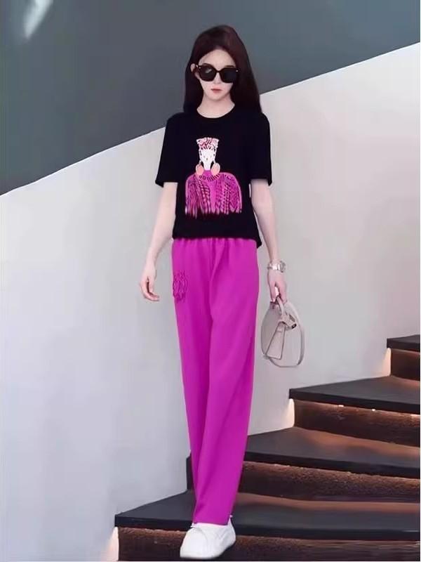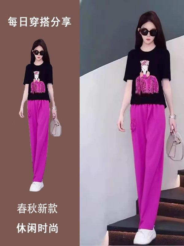 2025 Nuevo Traje Deportivo Casual Europeo de Moda y Rejuvenecedor para Mujer Verano Estampado de Manga Corta Conjunto de Dos Piezas Adelgazante