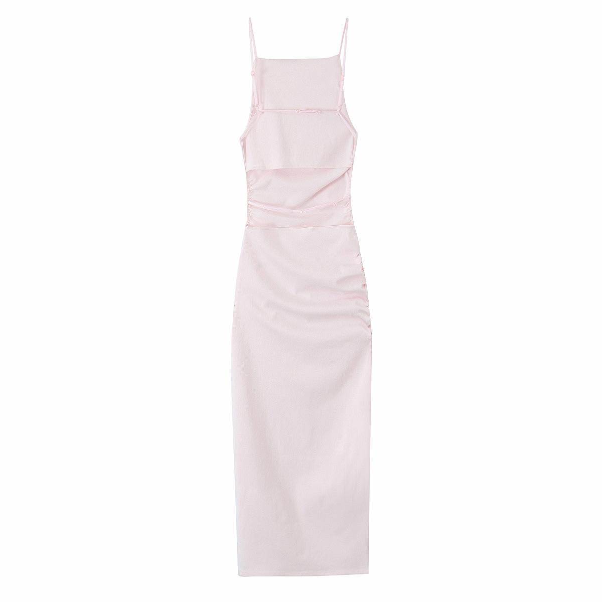 Ropa de Mujer Transfronteriza Europea y Americana 2025 Primavera Nueva Moda Elegante Vestido de Tirantes Decorativo Plisado 5584363
