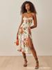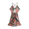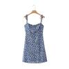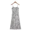 Francés Retro 2022 Verano Nuevo Diseño de Tirantes Estampado Vestido Hermoso de Espalda Descubierta con Abertura en el Bajo Vestido Largo