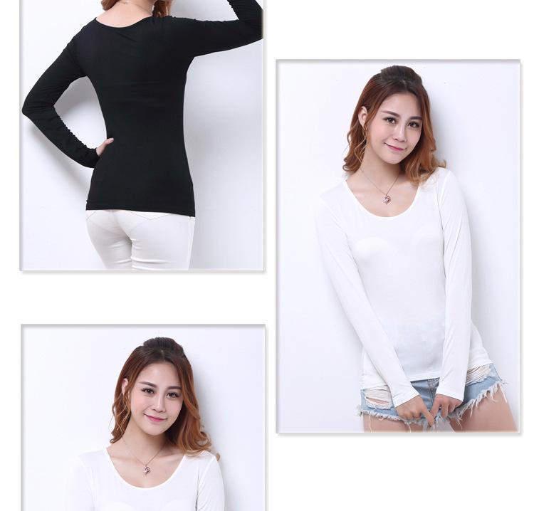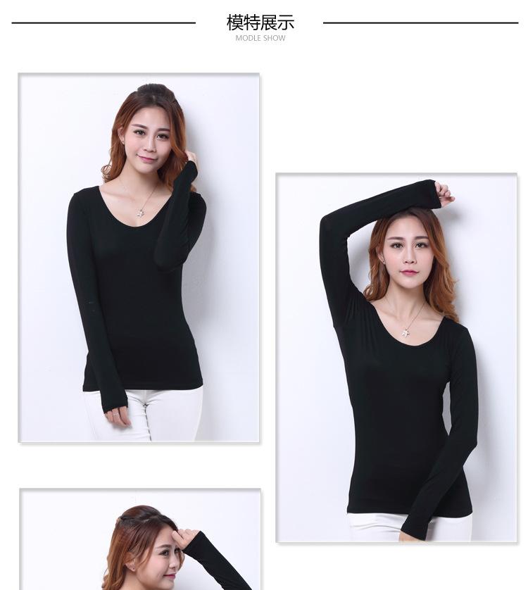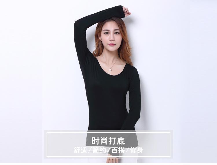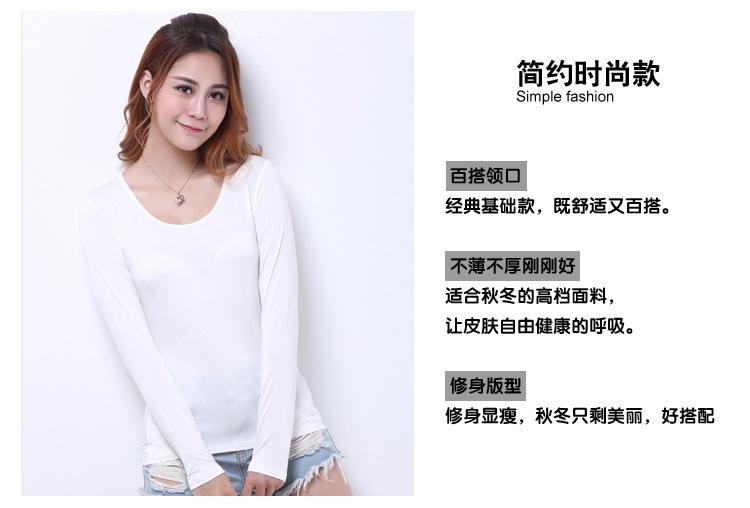 Camiseta Interior Modal de Primavera y Otoño 2021 para Mujer Talla Grande Camiseta de Manga Larga para Mujer Ropa de Otoño para Mujer Cuello Redondo Más Fácil de Combinar Top Delgado