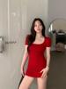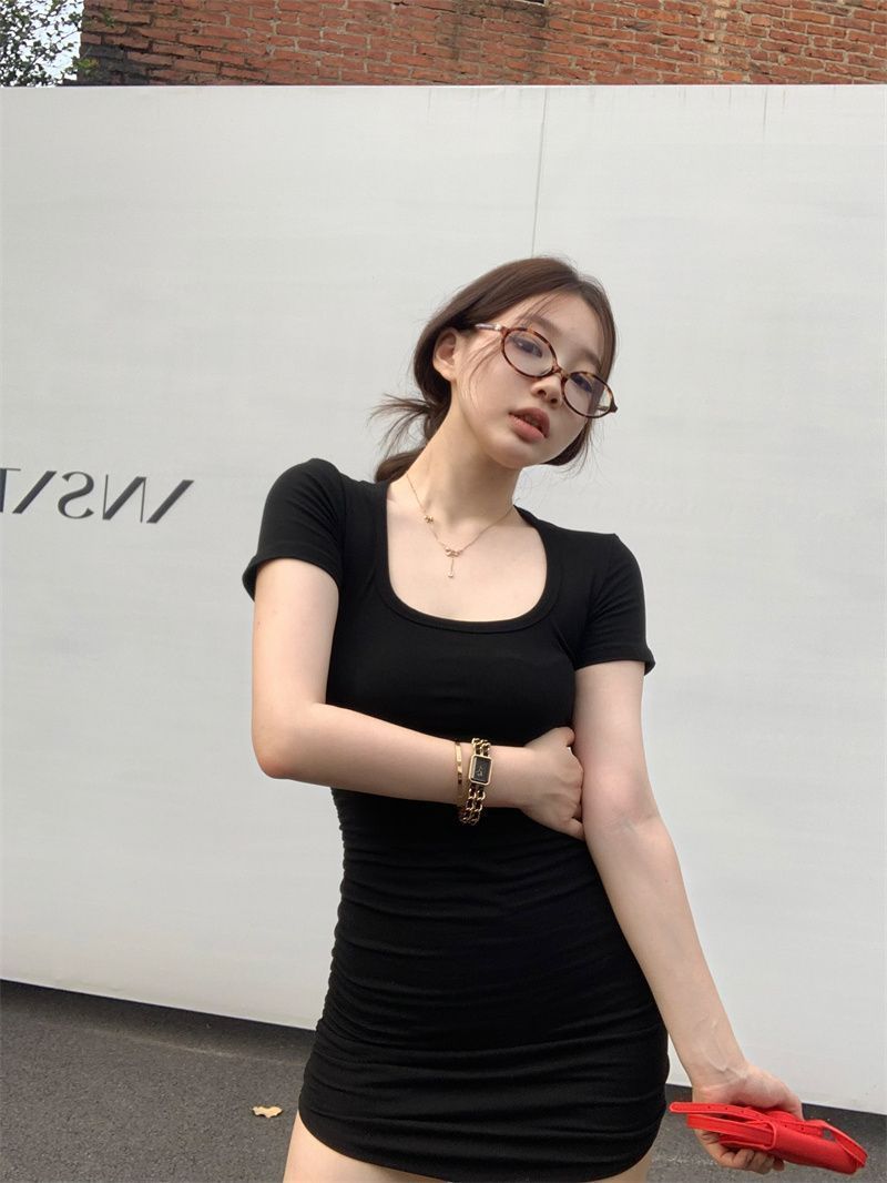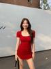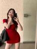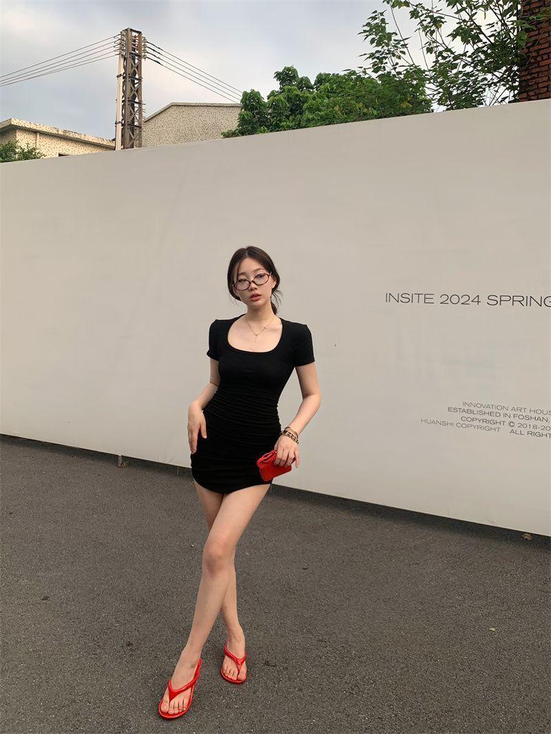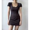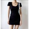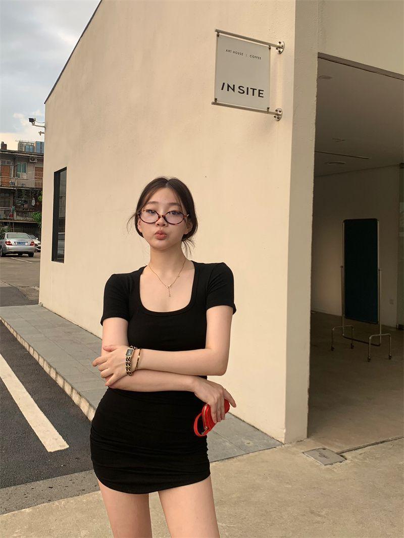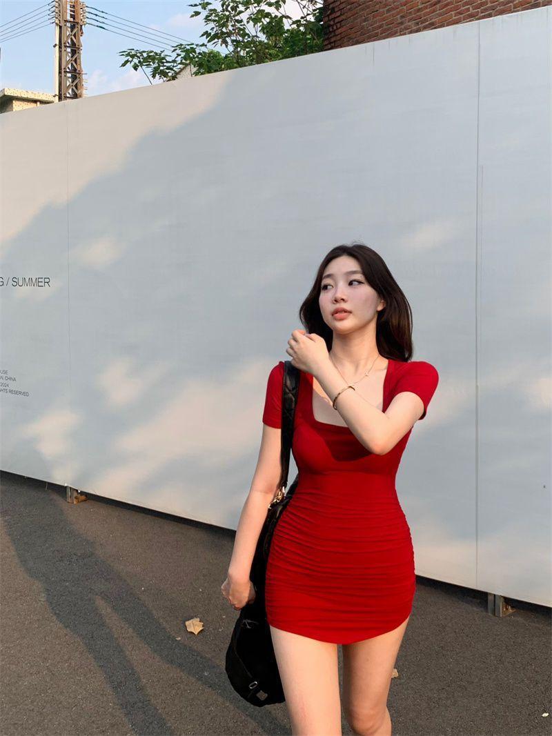 [20 Piezas Envío Gratis] Vestido Camiseta de Manga Corta para Mujer, Falda Corta Verano Pura Lujuria, Falda que Resalta la Figura, Falda Ajustada que Abraza las Caderas