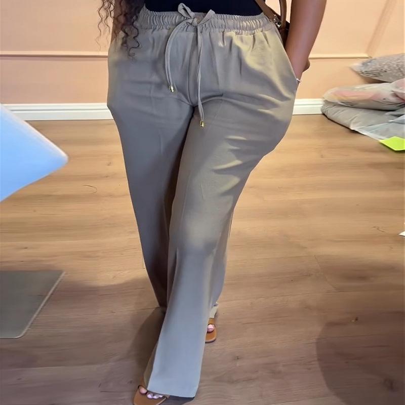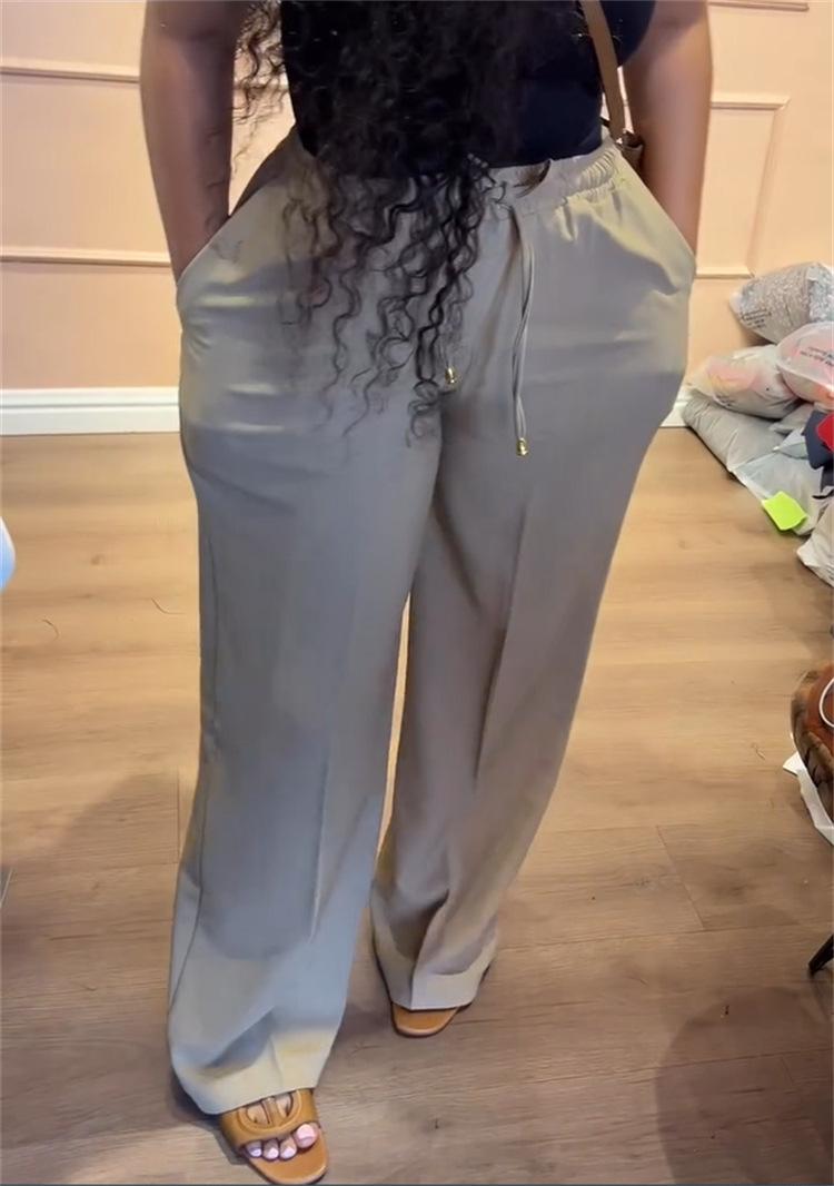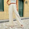 Pantalones casuales de pierna ancha con bolsillos sueltos y correas adelgazantes de cintura alta para mujer transfronteriza europea y americana de verano 2025