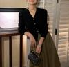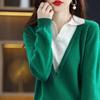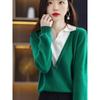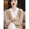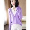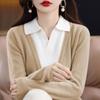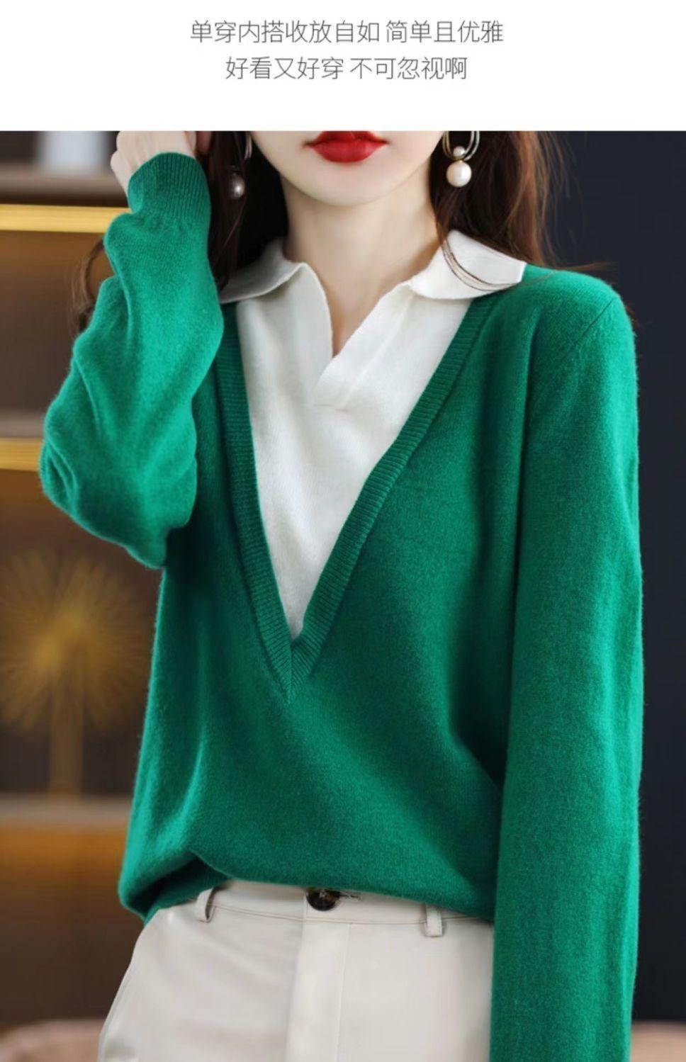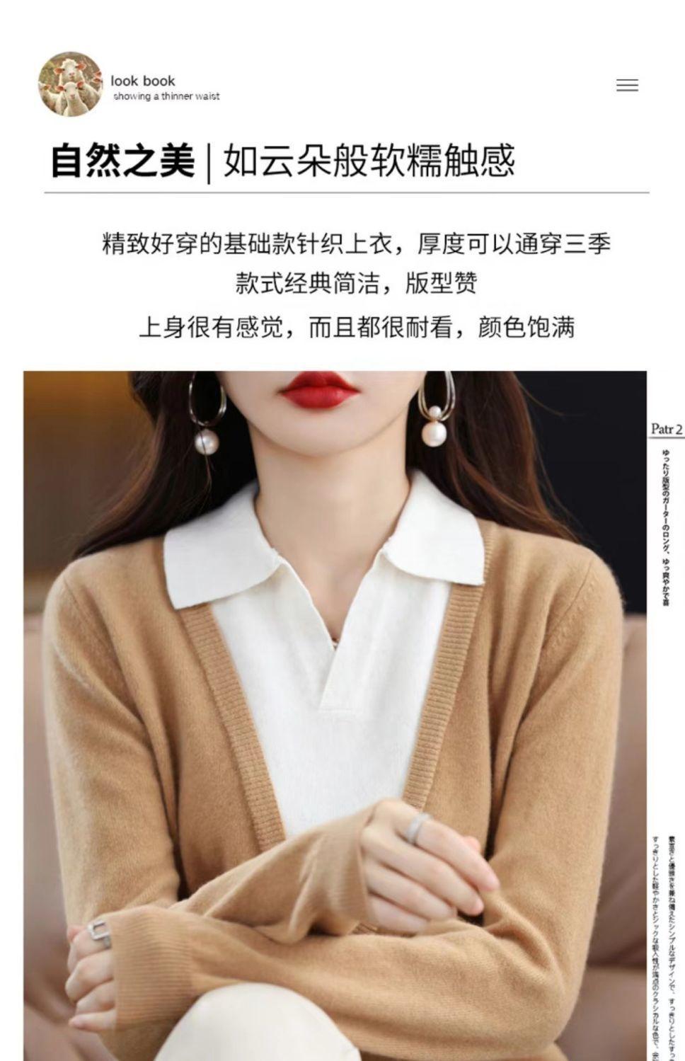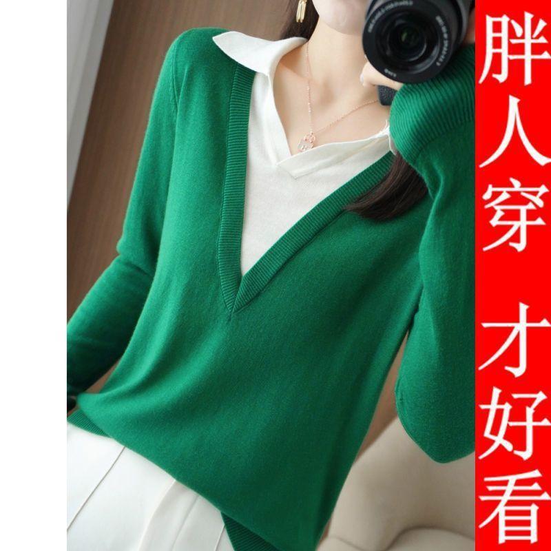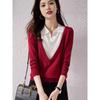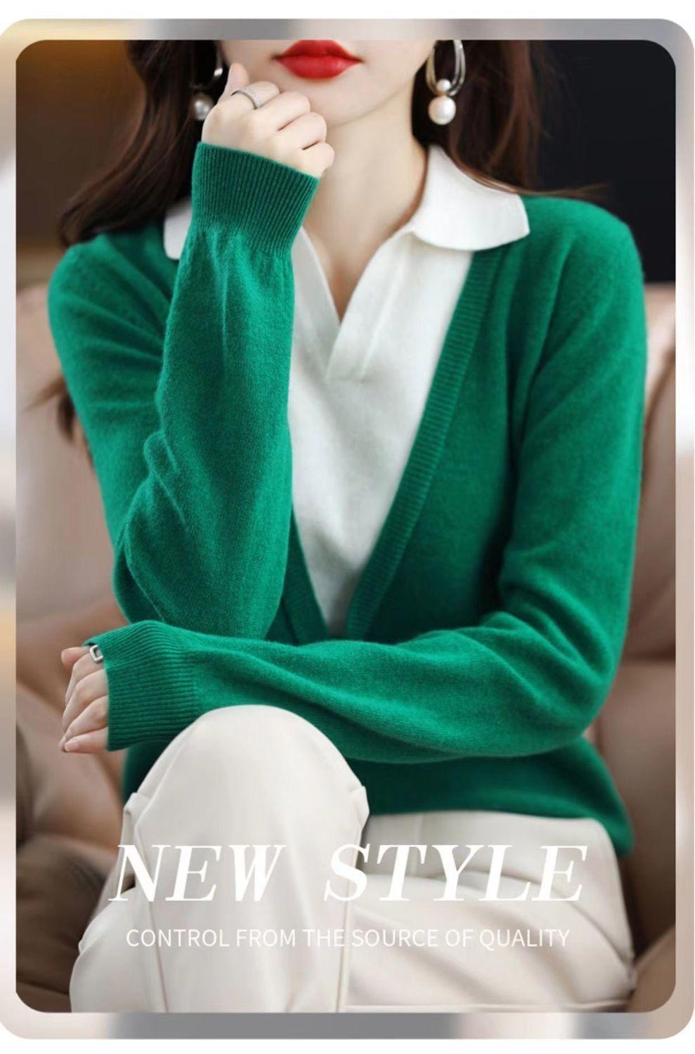 Otoño e Invierno Nuevo Tejido de Punto Falso de Dos Piezas Elegante Top con Cuello Polo Tejido de Punto de Moda para Mujer Mangas Largas Sueltas Versátiles para Mujer