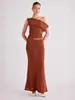 2025 Nuevo Europeo y Americano Transfronterizo Sexy Hombro Top de Punto Falda Traje de Moda Conjunto de Verano de Dos Piezas para Mujer