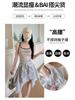 Falda a cuadros tipo camisa falsa para mujer verano 2025 nueva falda adelgazante línea A de cintura alta falda irregular de cintura alta estilo coreano
