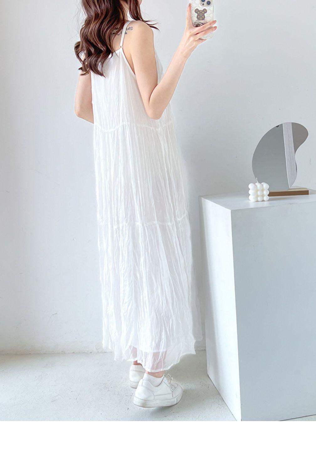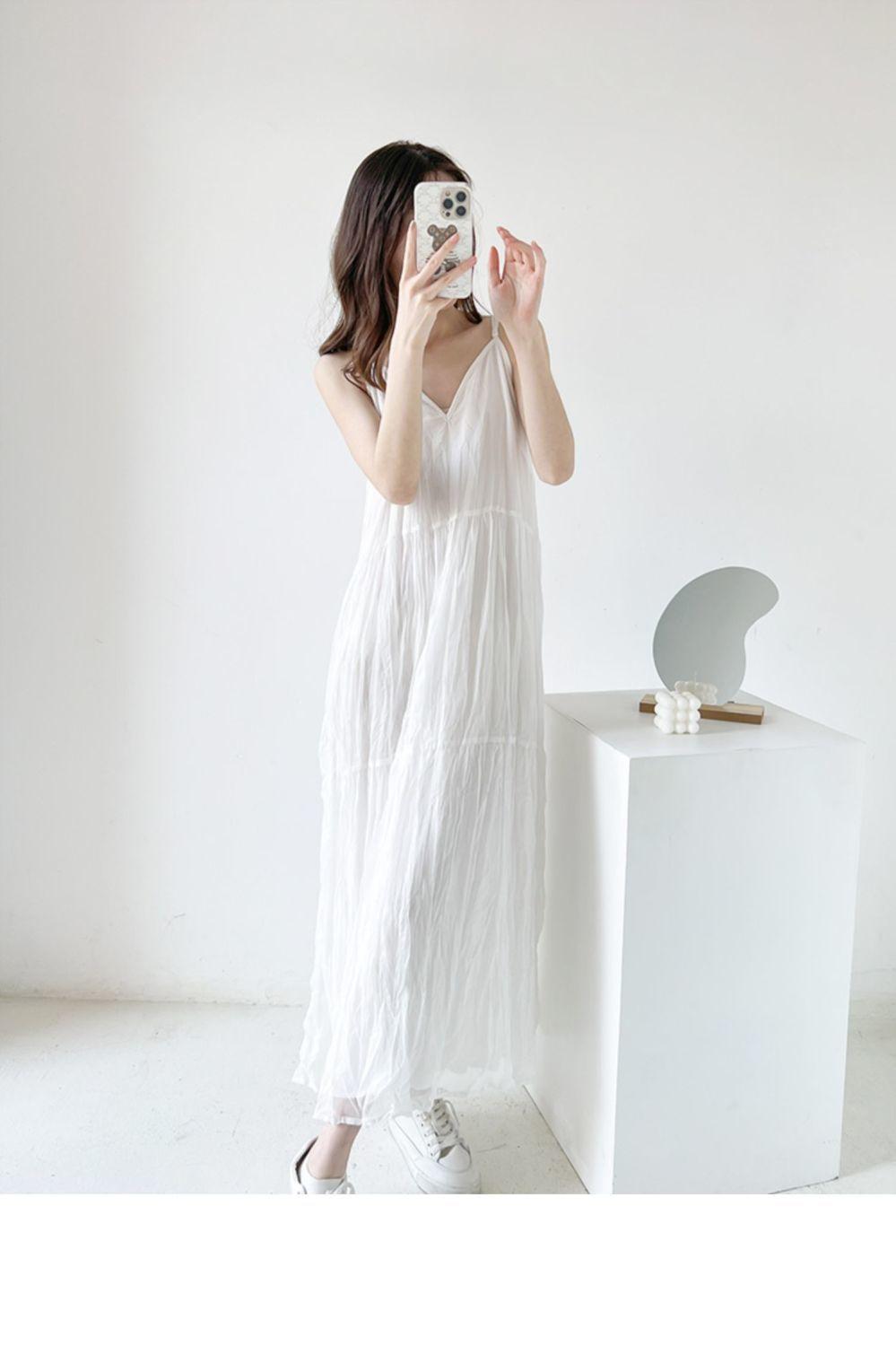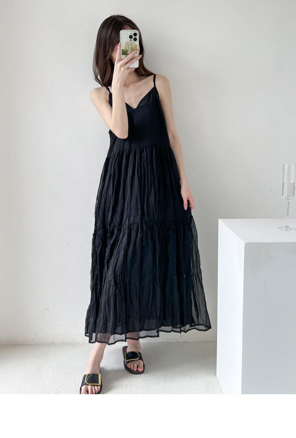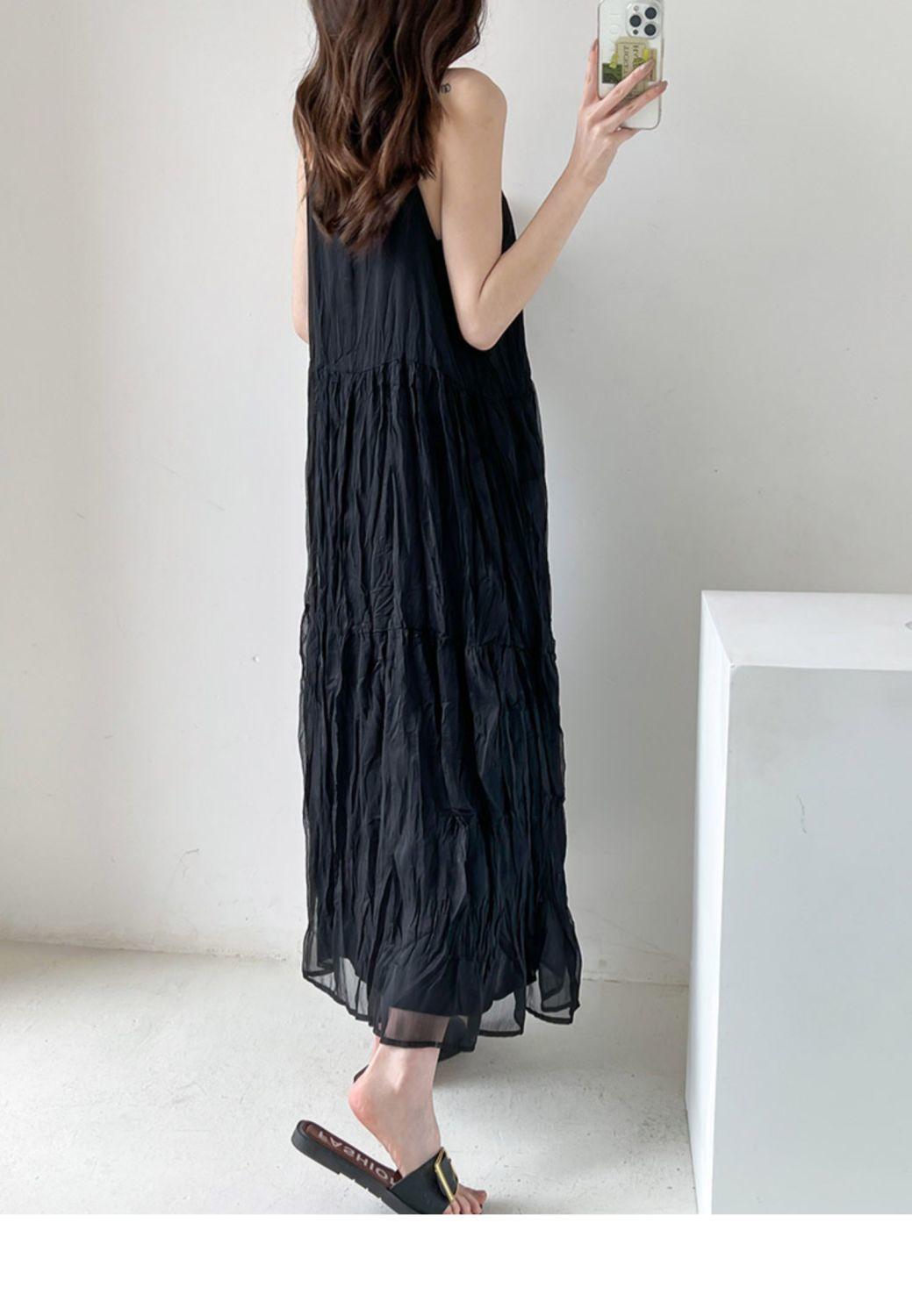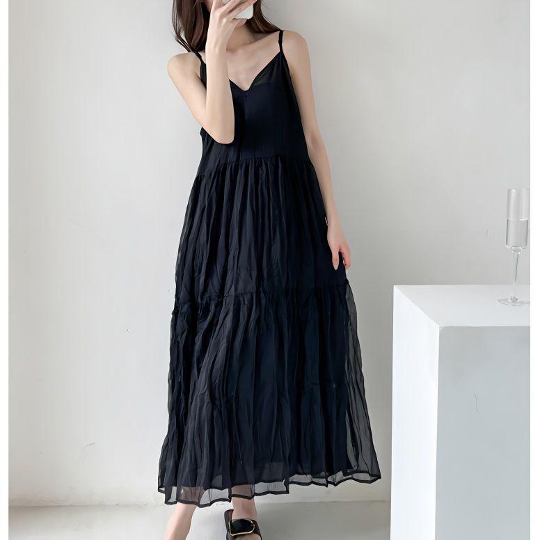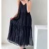 Falda de Tirantes 2025 Nuevo Estilo Drapeada Plisada Larga Enagua Falda Base Suelta Plisada Vacaciones Playa