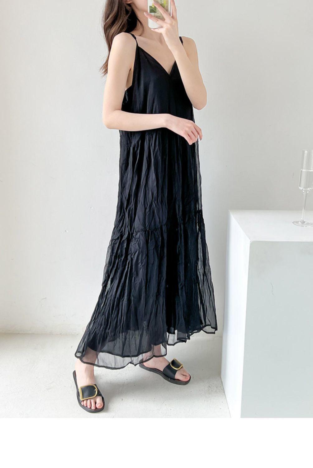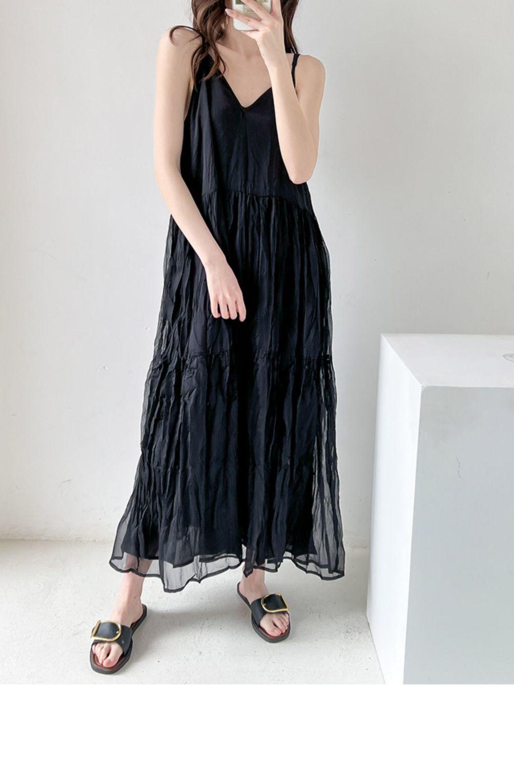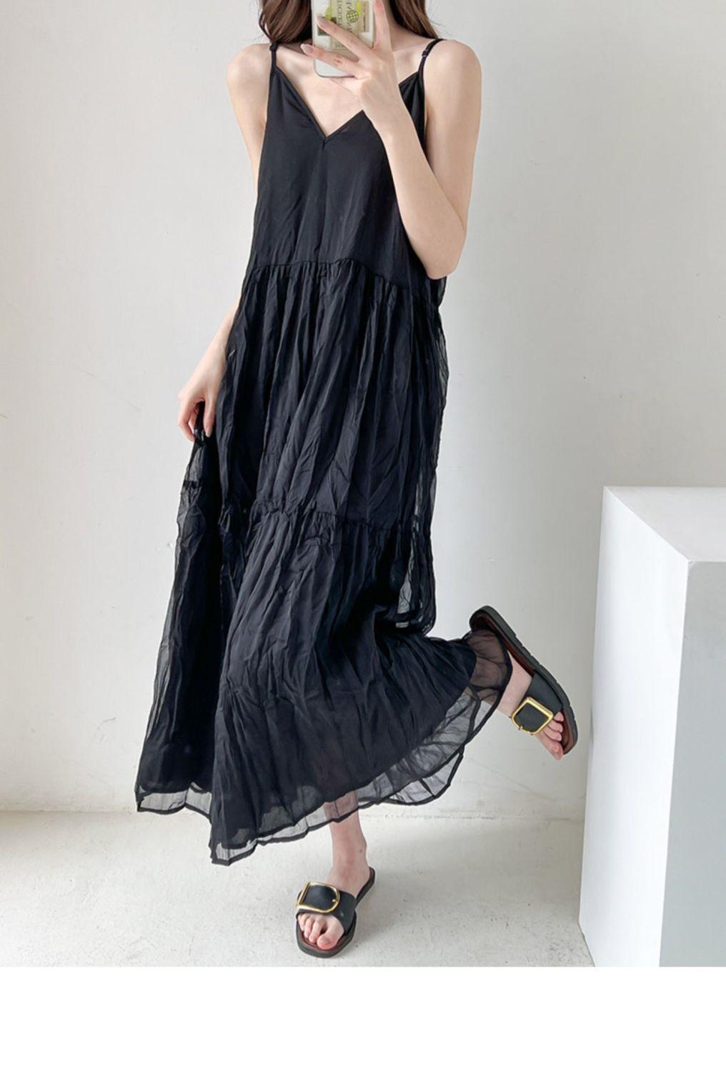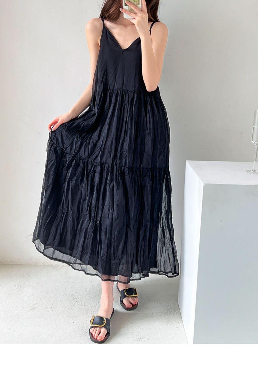 Falda de Tirantes 2025 Nuevo Estilo Drapeada Plisada Larga Enagua Falda Base Suelta Plisada Vacaciones Playa