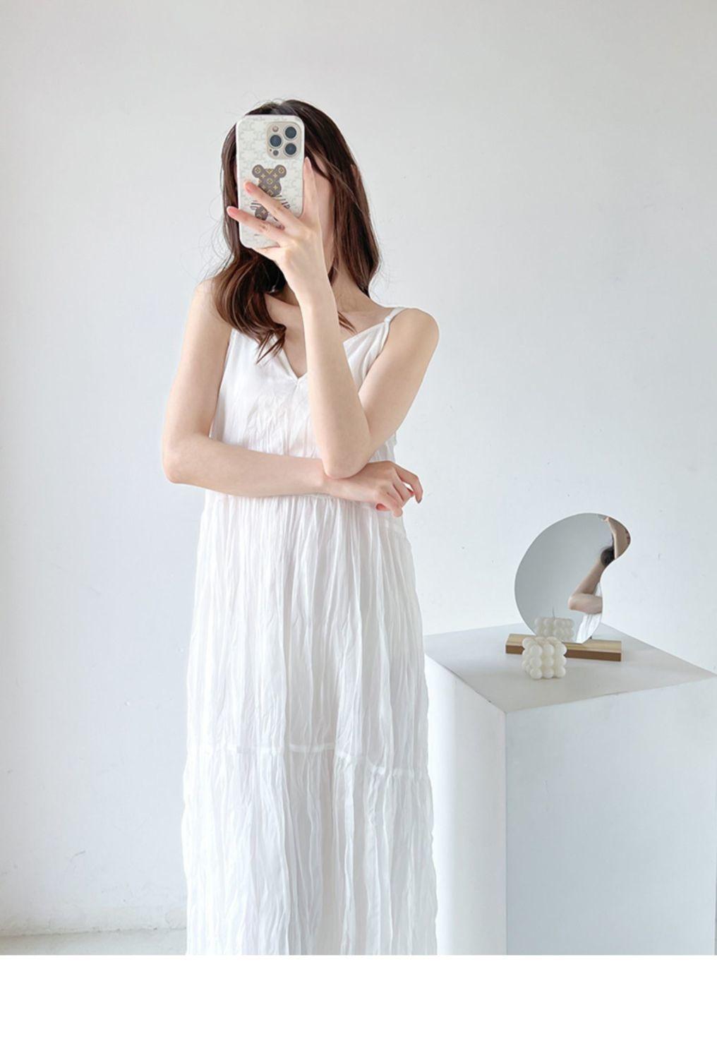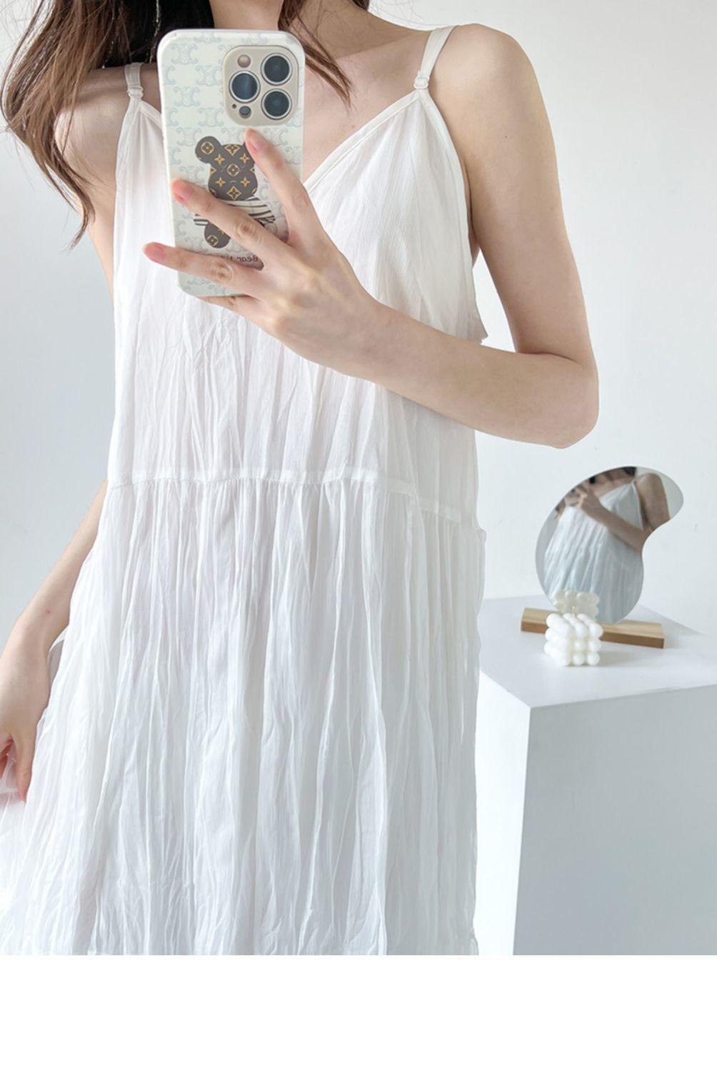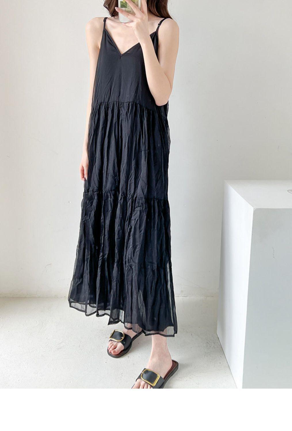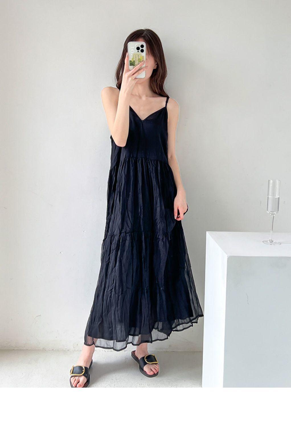 Falda de Tirantes 2025 Nuevo Estilo Drapeada Plisada Larga Enagua Falda Base Suelta Plisada Vacaciones Playa