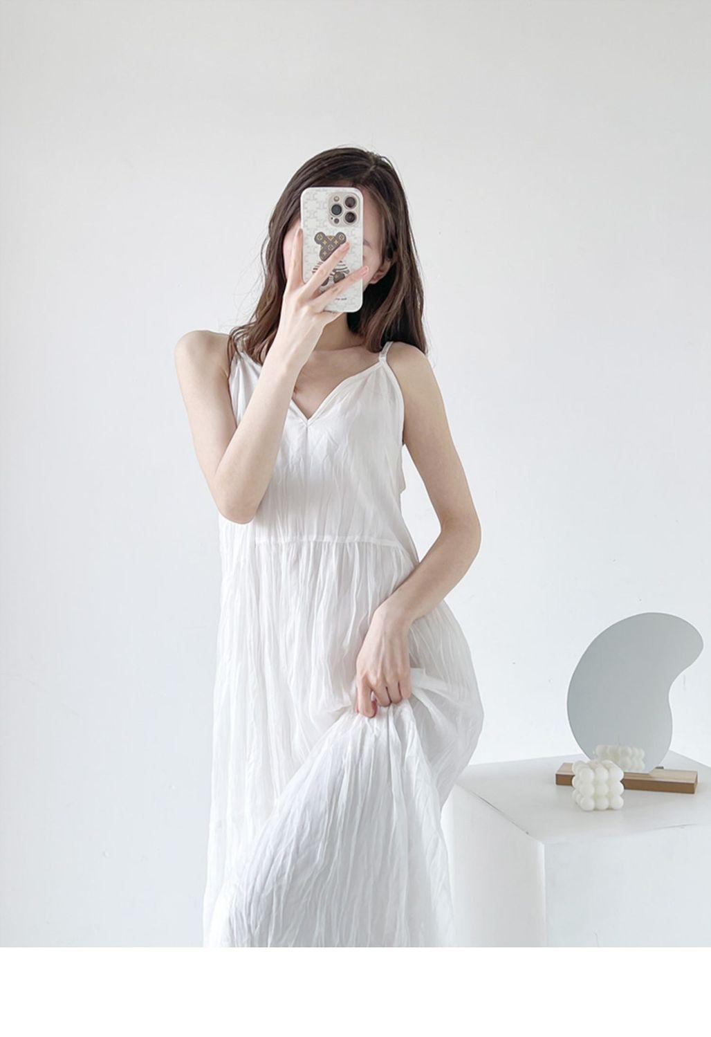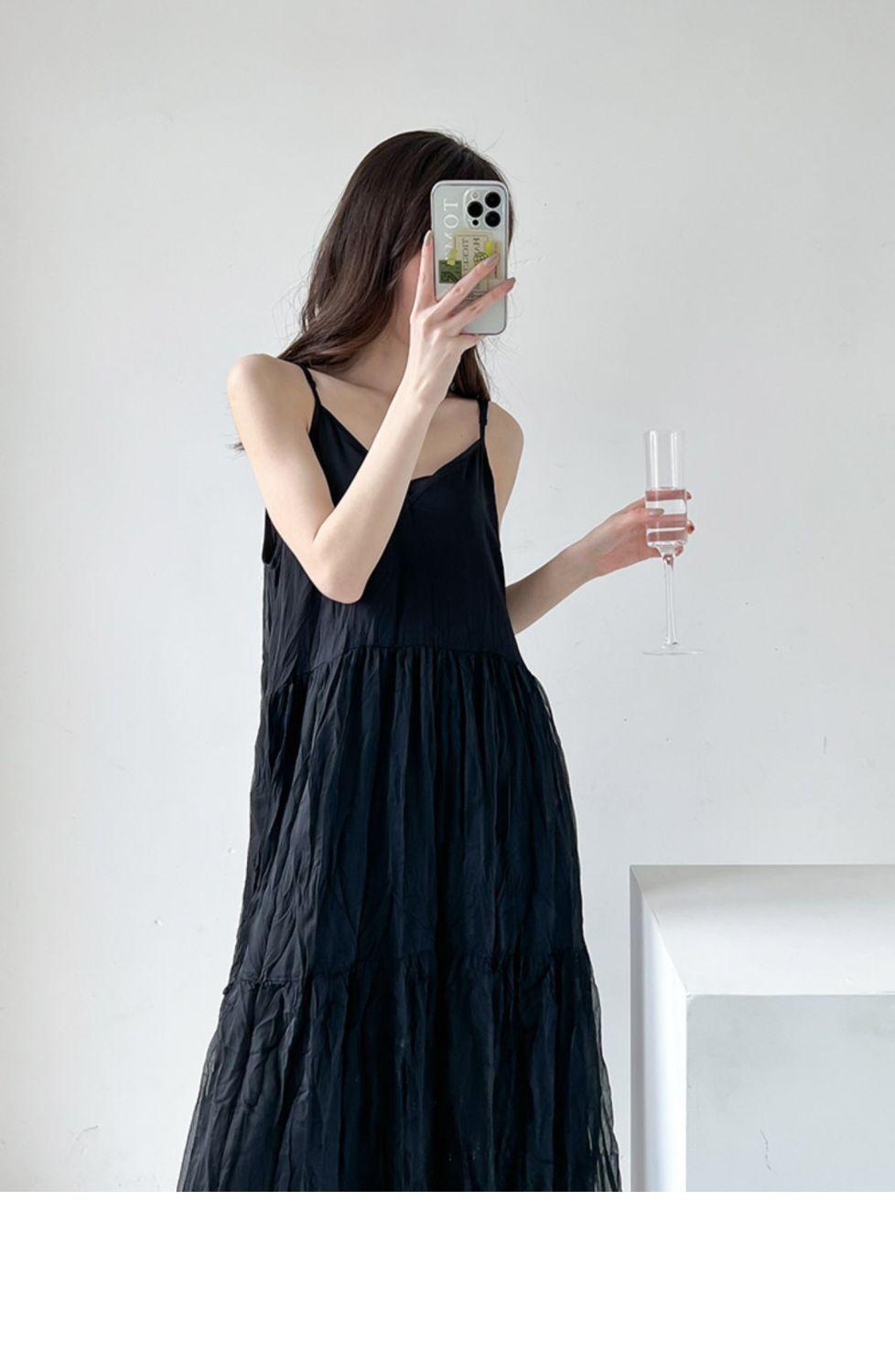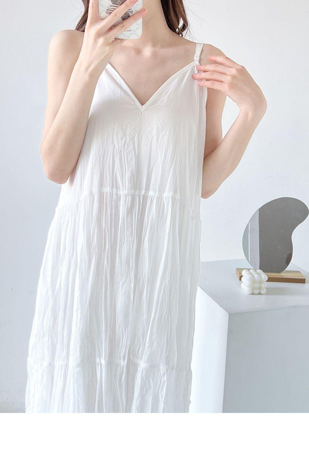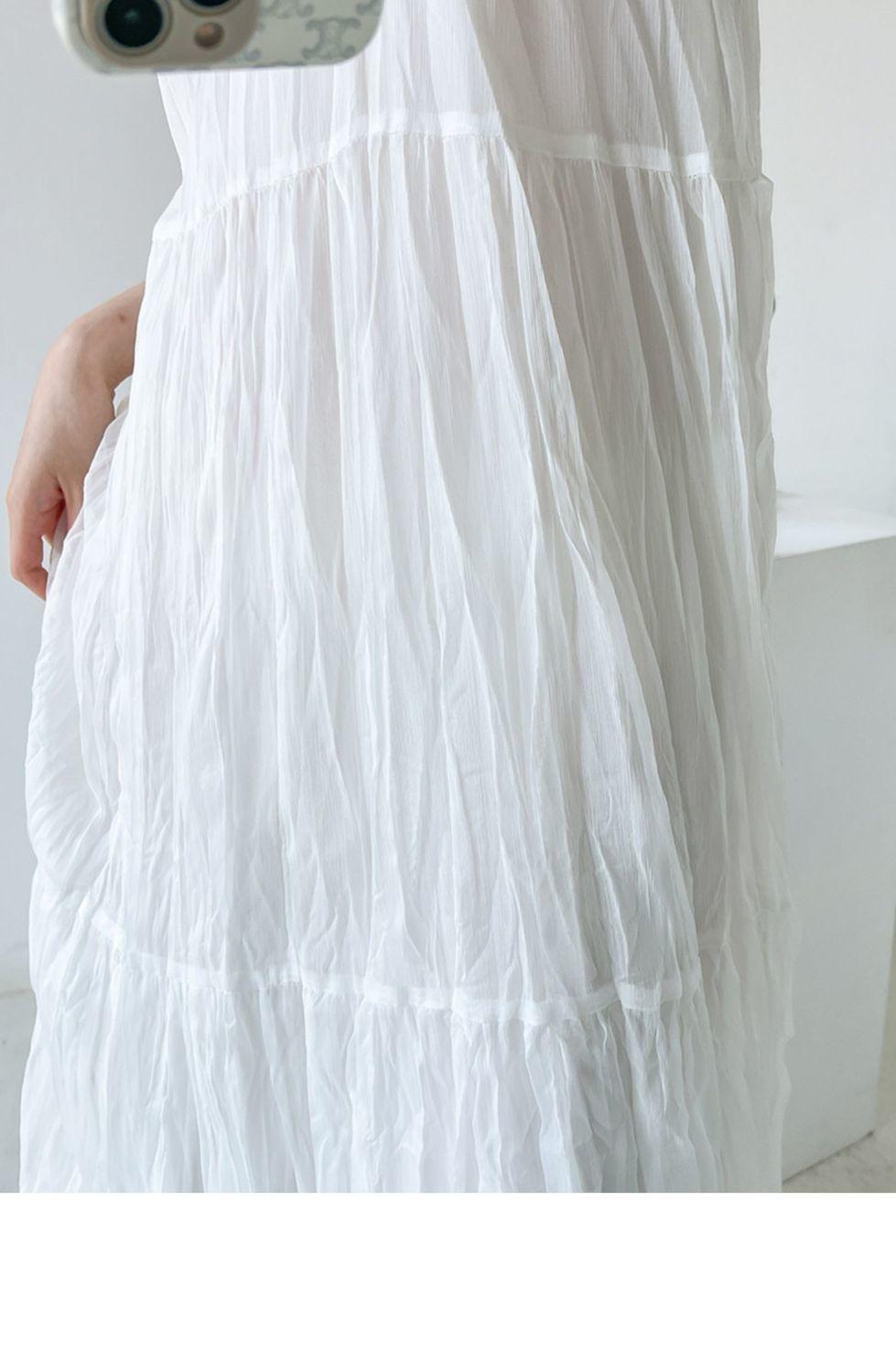 Falda de Tirantes 2025 Nuevo Estilo Drapeada Plisada Larga Enagua Falda Base Suelta Plisada Vacaciones Playa