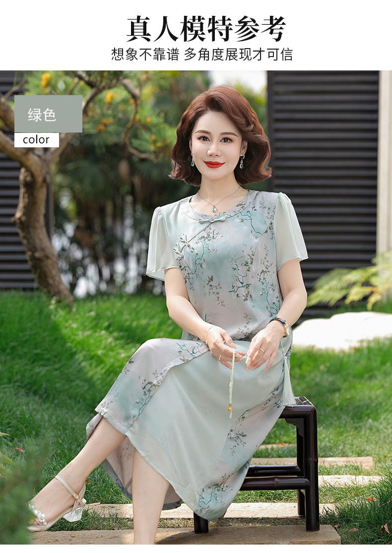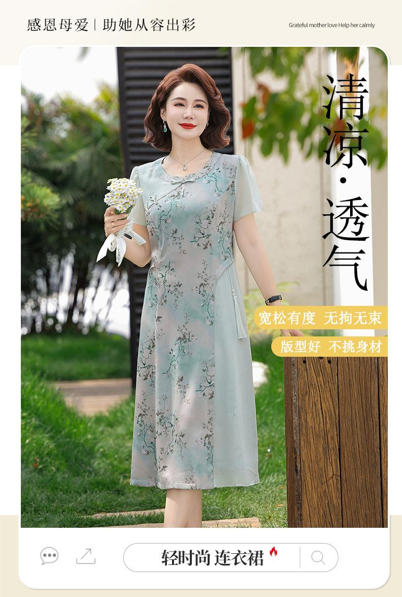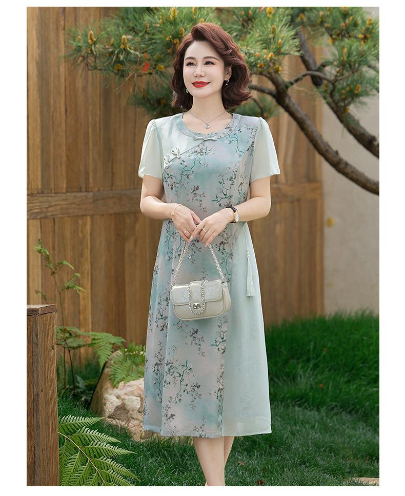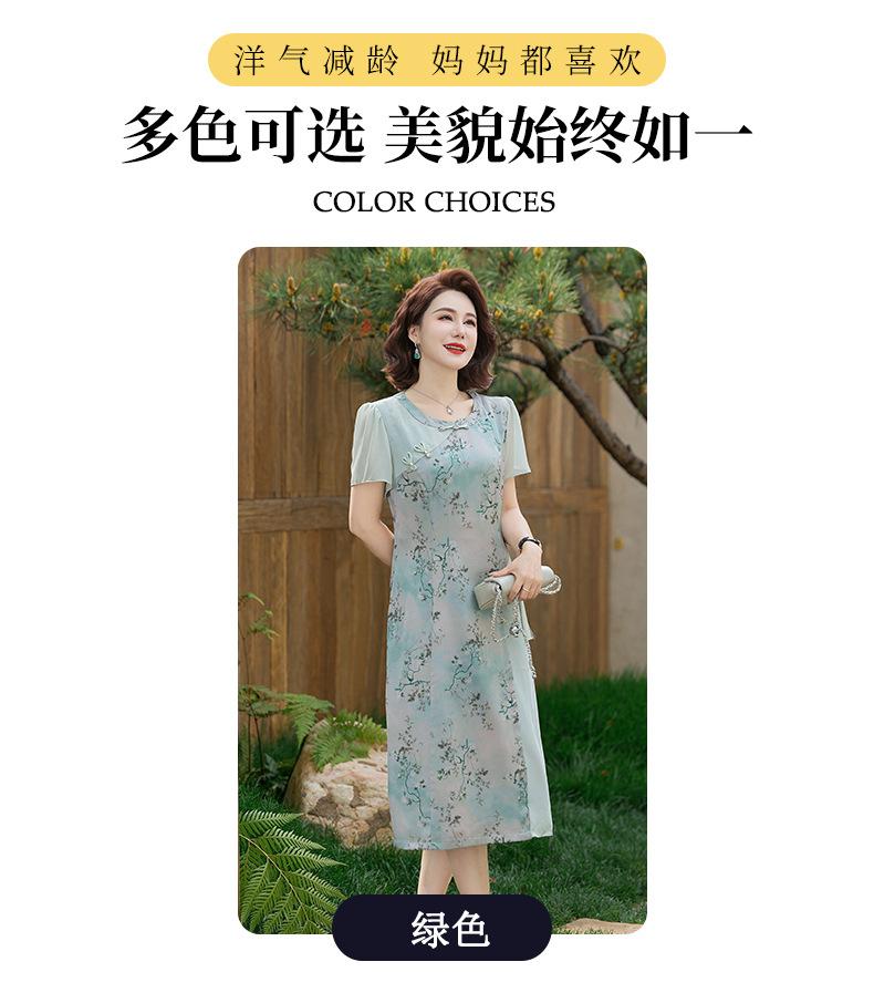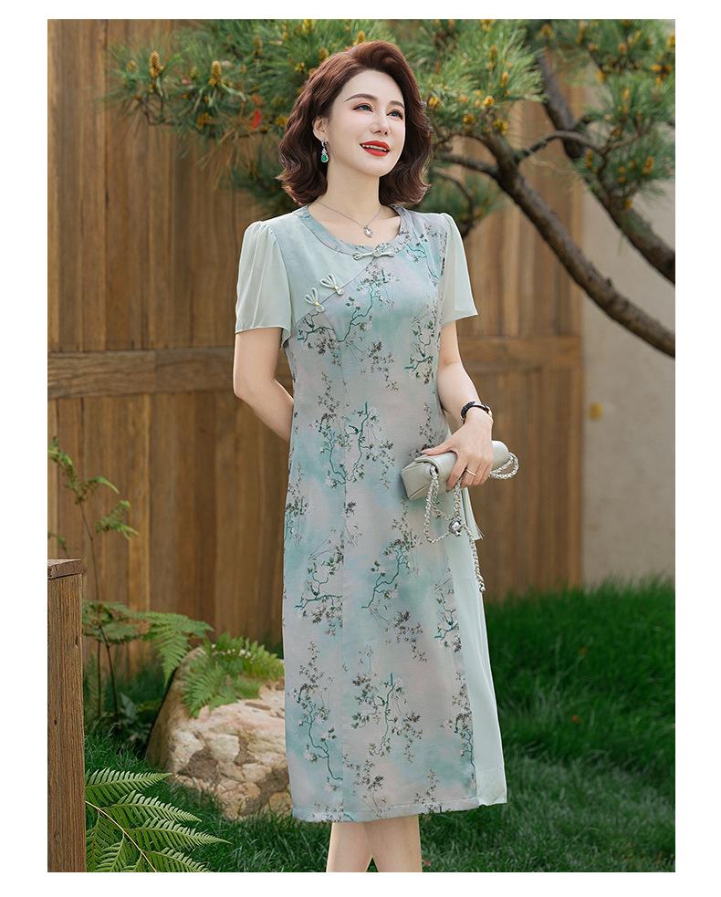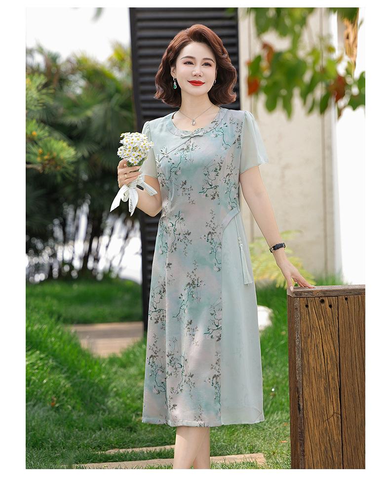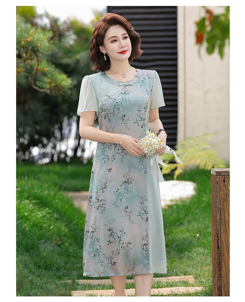 Nuevo Estilo Chino Vestido de Verano para Madre Vestido Estilo Occidental para Mujeres de Mediana Edad 2025 Nuevo Verano de Mediana Edad Falda Cheongsam Modificada