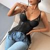 Verano Viaje Transpirable Sexy Chica Caliente Doble Capa Encaje Tirante Escote Profundo V Espalda Descubierta Ajustado Tirante Sling Mujer 71104