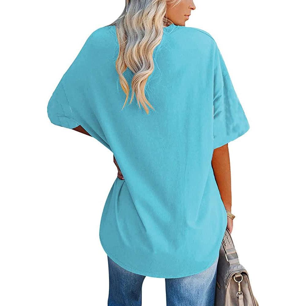 Camiseta de Manga Corta Holgada de Cuello Redondo para Mujer de Moda Europea y Americana para Primavera y Verano 2024