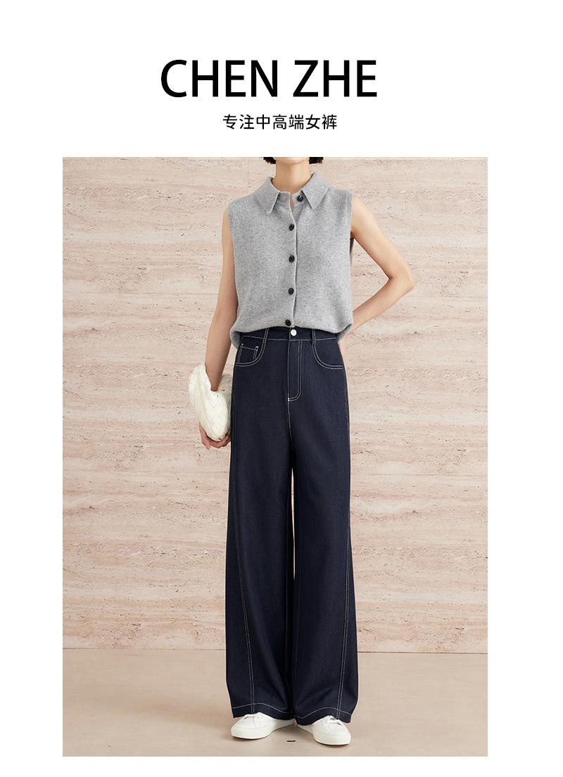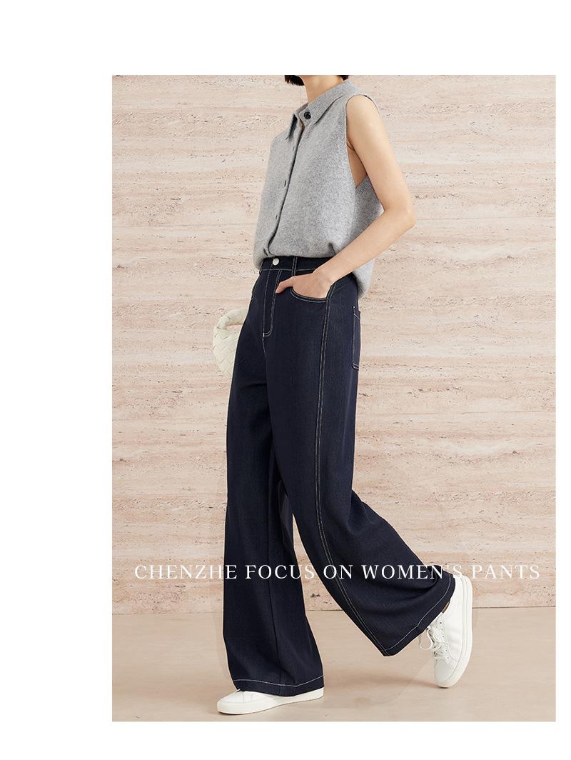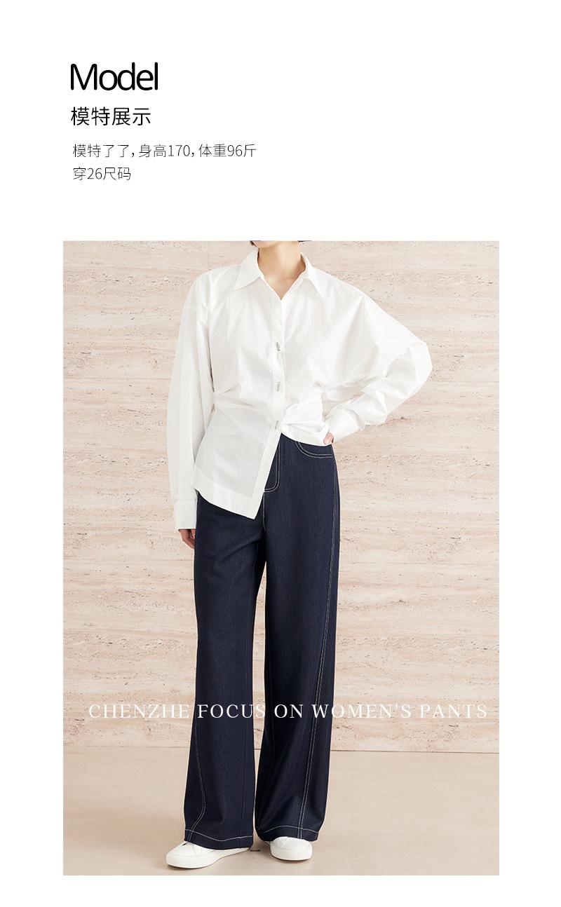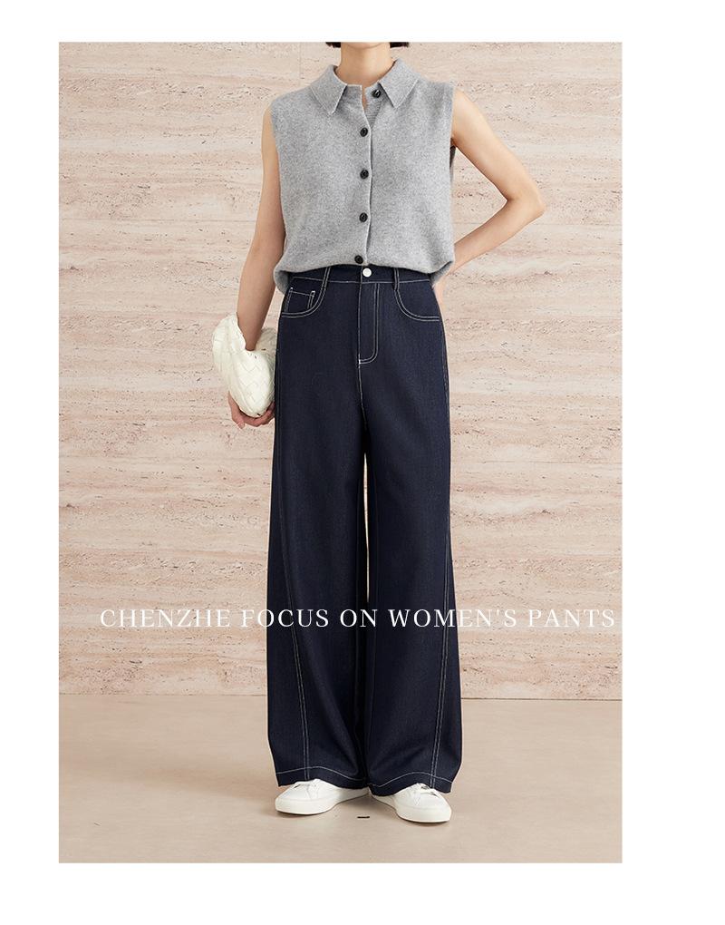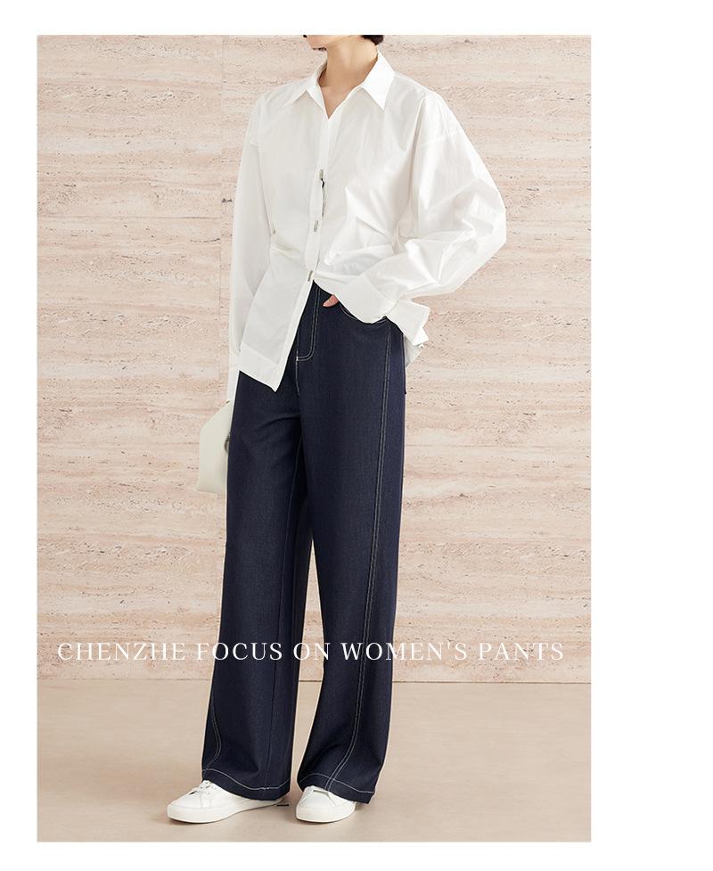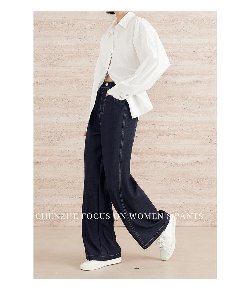 Pantalones de Mujer de Pierna Recta de Imitación Denim Primavera 2025 Nuevo Ajuste Personalizado Slim-Fit Versátil Casual Pantalones Largos Cintura Alta Alargadores de Piernas