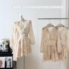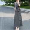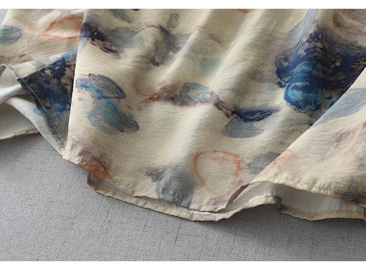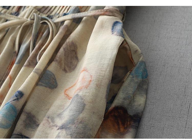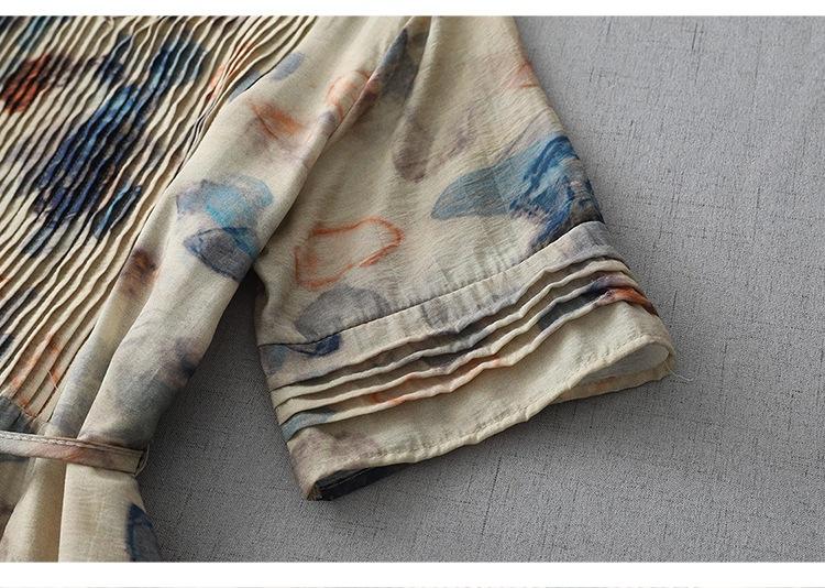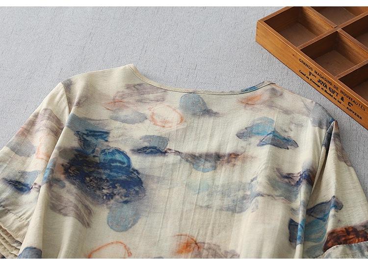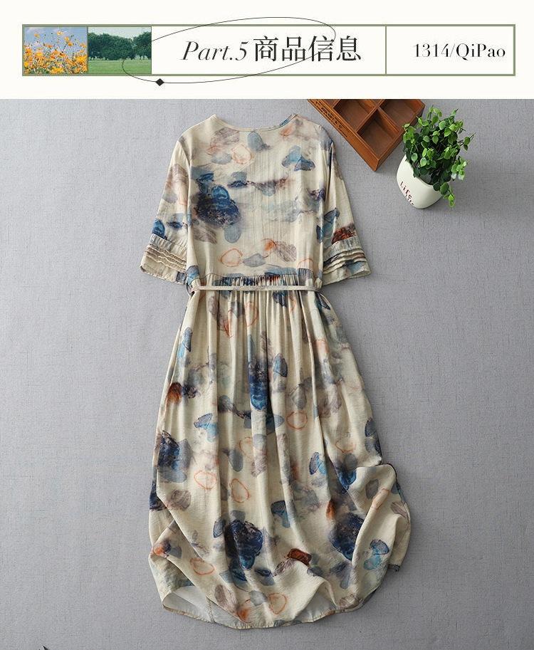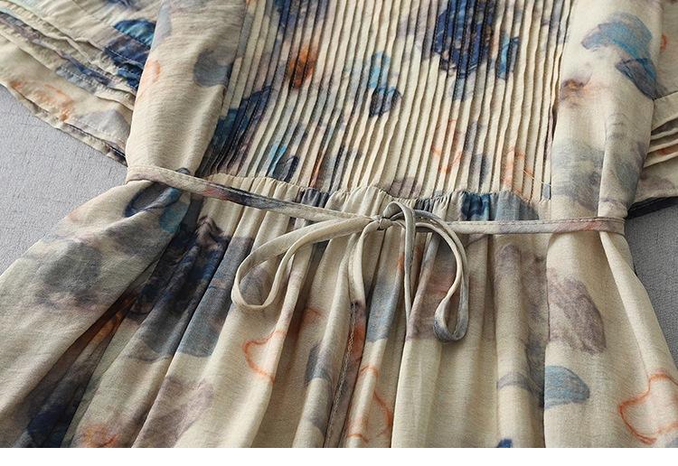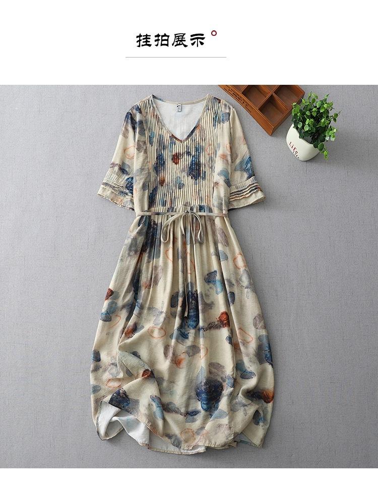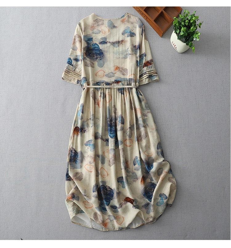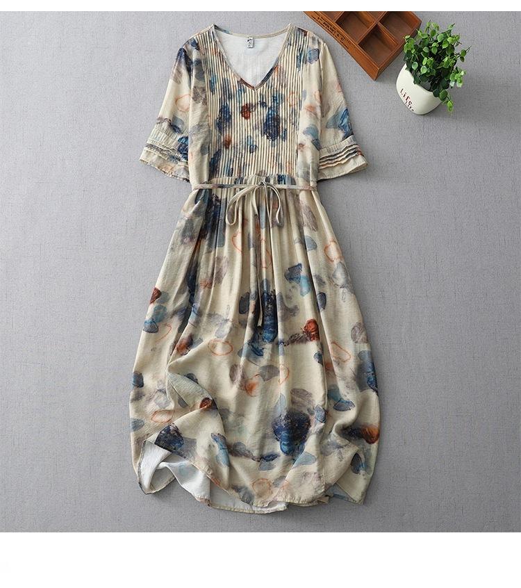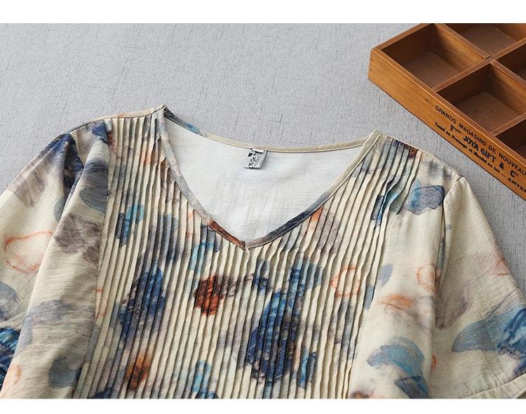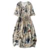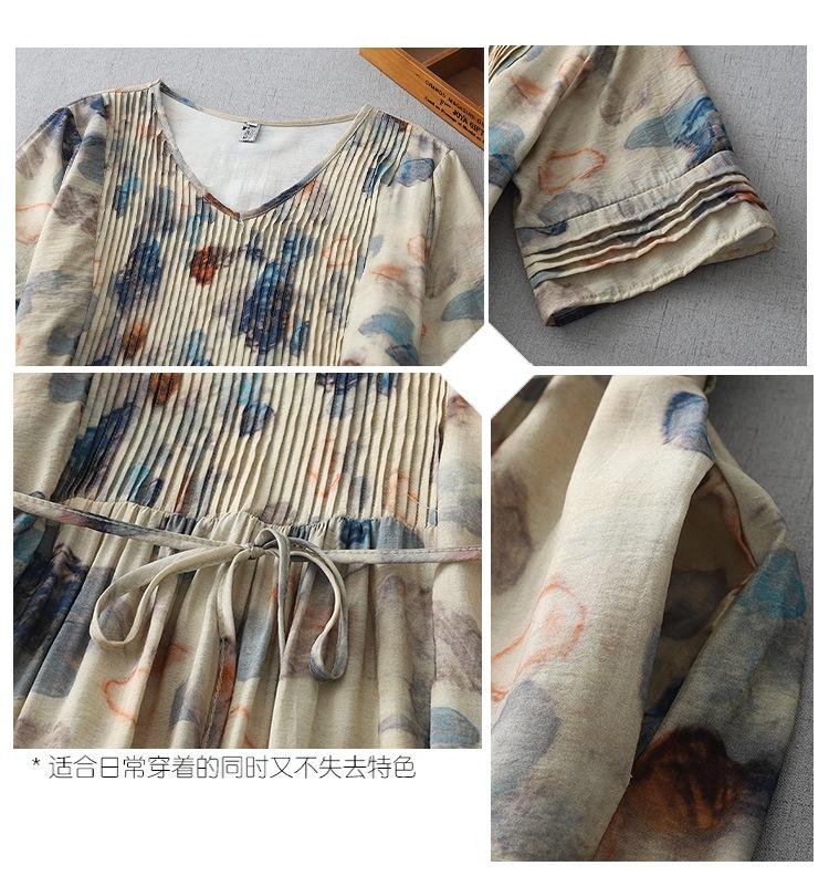 Vestido de manga media con cuello en V 2025 Verano Nuevo Vestido suelto francés con estampado de órgano