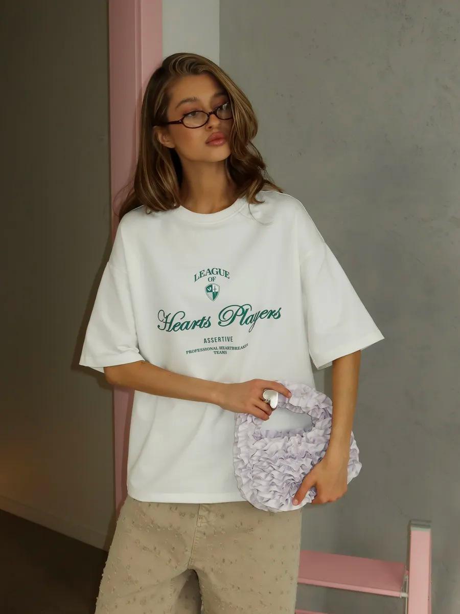 2025 Verano Nuevo Elegante Combinable Nicho Chic Estilo Hong Kong Camiseta de Algodón Puro Estilo Lazy Top Divertido Ins