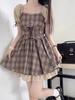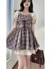 2025 Nuevo Vestido de Verano de Cuello Cuadrado Estilo Universitario Adelgazante de Cintura para Mujer Pequeño Fresco Cintura Alta Dulce Falda Corta