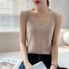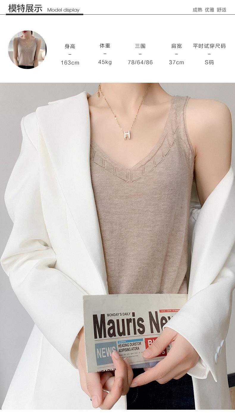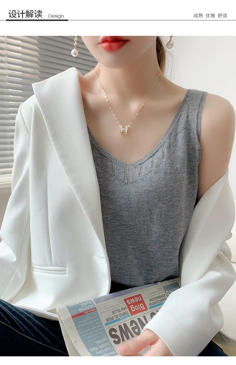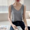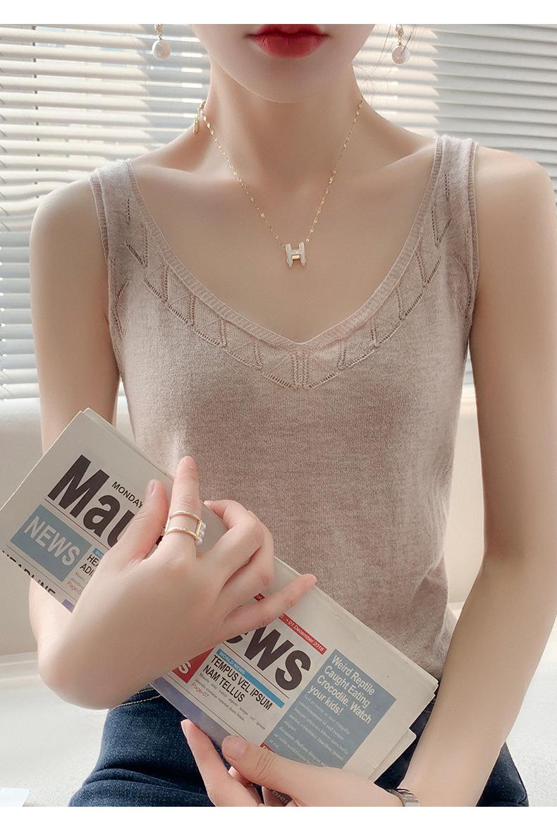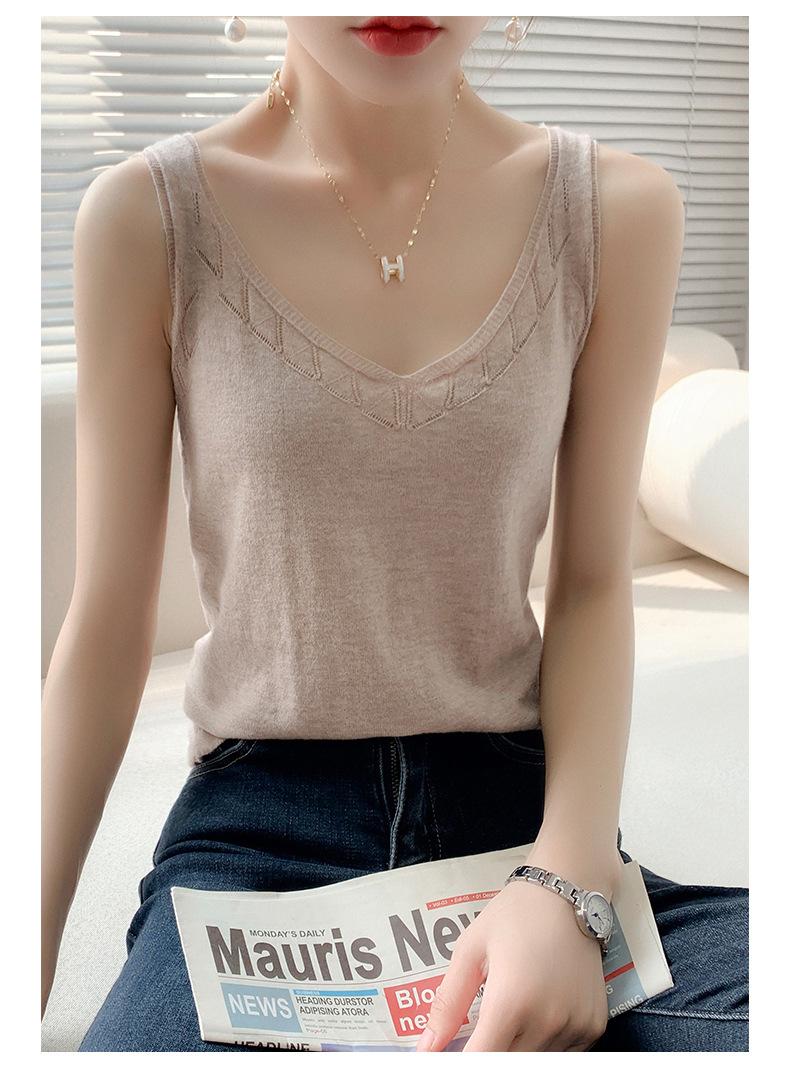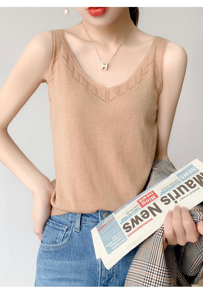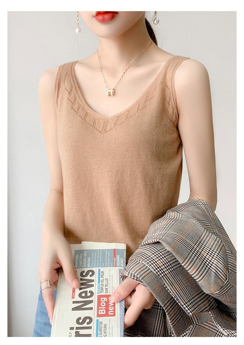 Camisola de Punto con Sentido del Diseño Ropa Interior de Mujer a la Moda Adelgazante Verano Suelta Cuello en V Ropa Exterior Camiseta Base Top sin Mangas