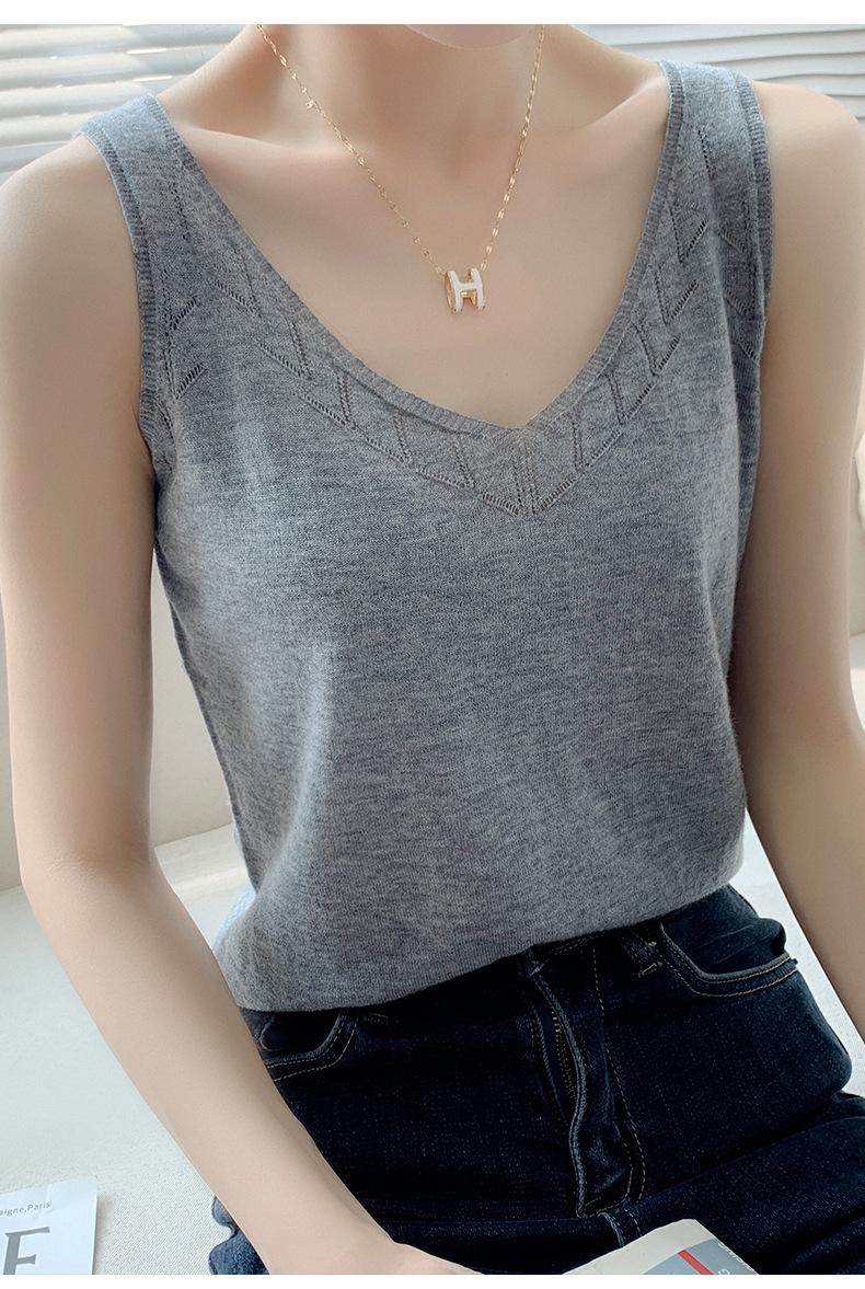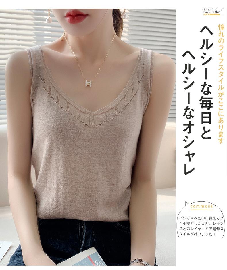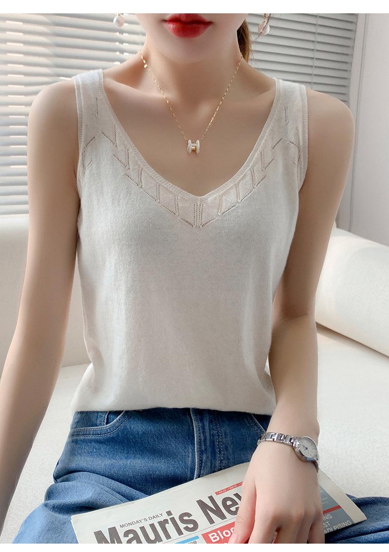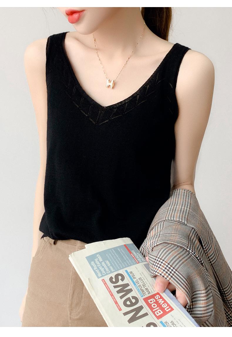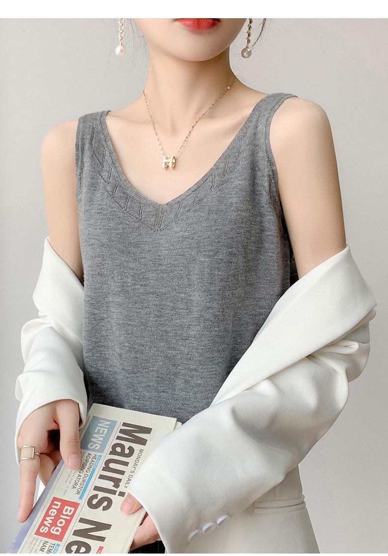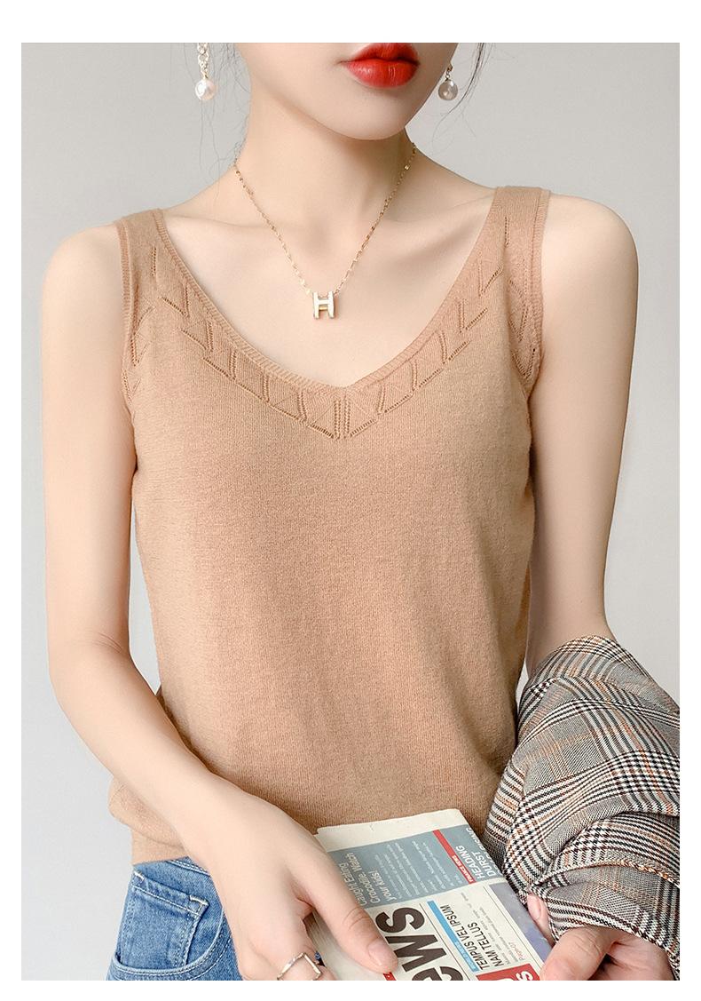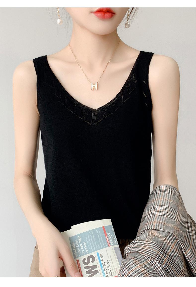 Camisola de Punto con Sentido del Diseño Ropa Interior de Mujer a la Moda Adelgazante Verano Suelta Cuello en V Ropa Exterior Camiseta Base Top sin Mangas