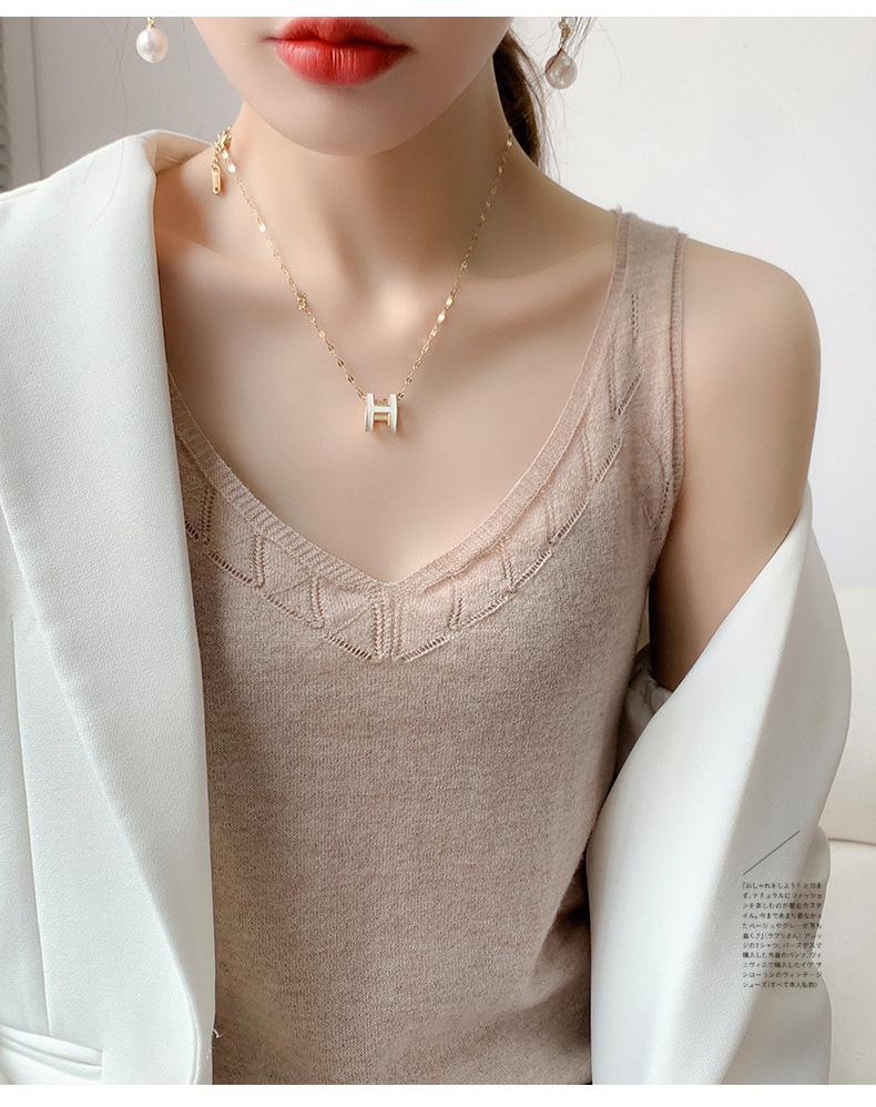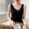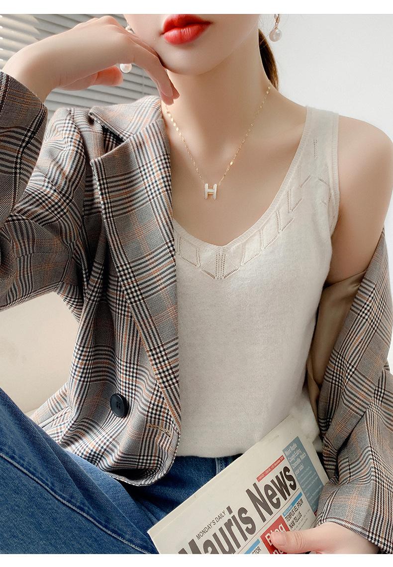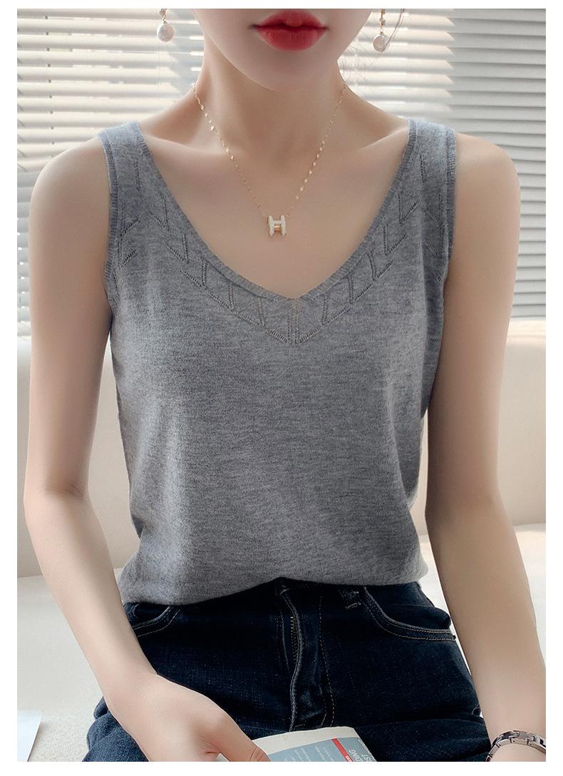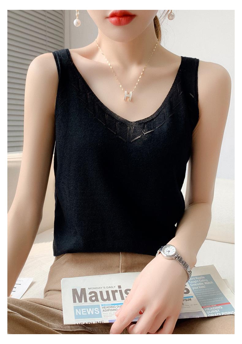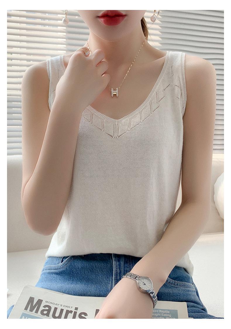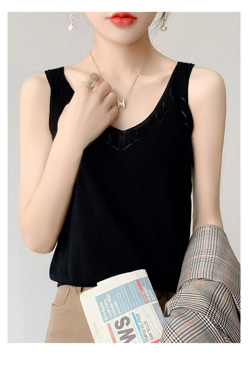 Camisola de Punto con Sentido del Diseño Ropa Interior de Mujer a la Moda Adelgazante Verano Suelta Cuello en V Ropa Exterior Camiseta Base Top sin Mangas