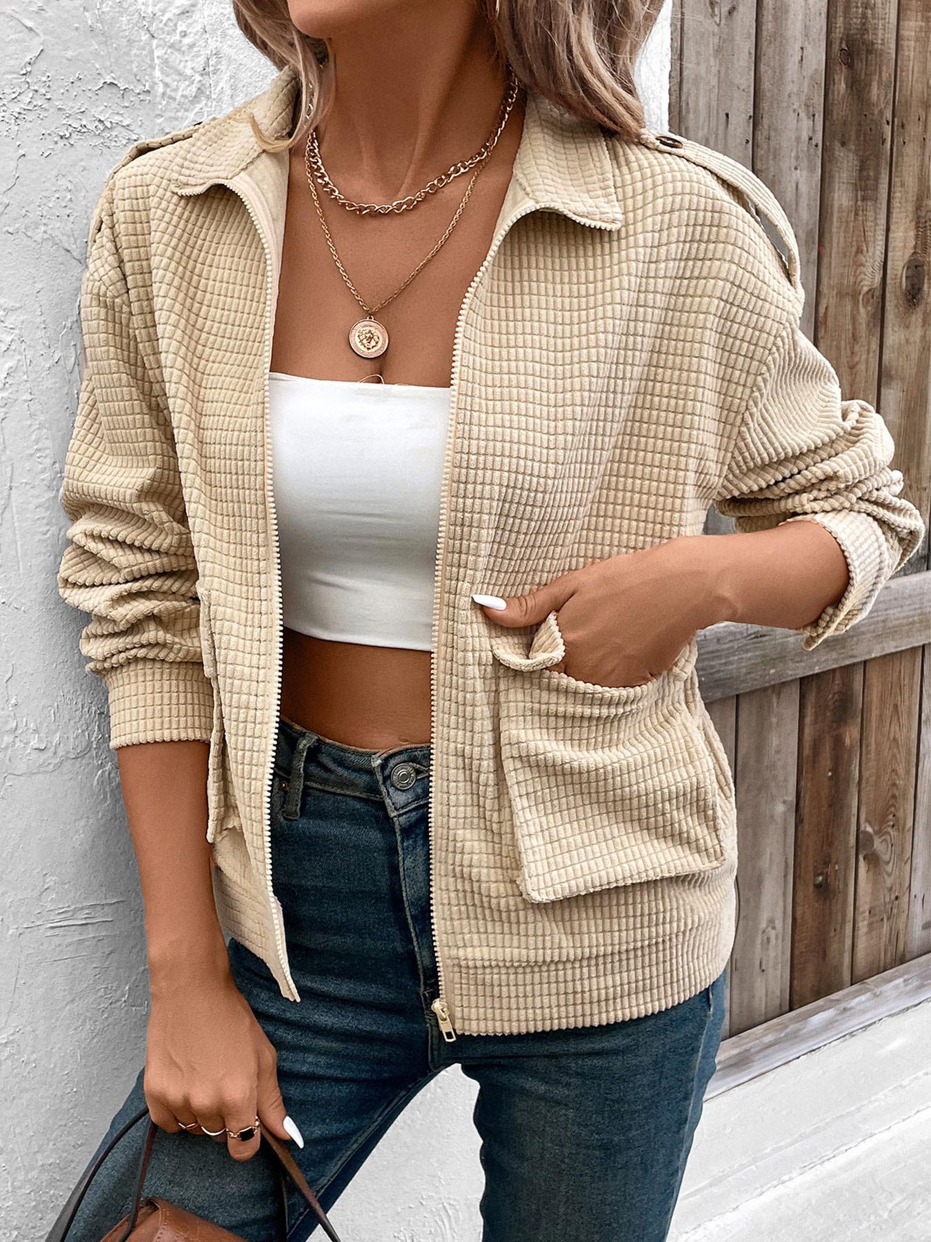Amazon Comercio Exterior Europeo y Americano Nuevo Top Casual Texturizado para Mujer Moda Transfronteriza Versátil Chaqueta de Color Sólido para Mujer