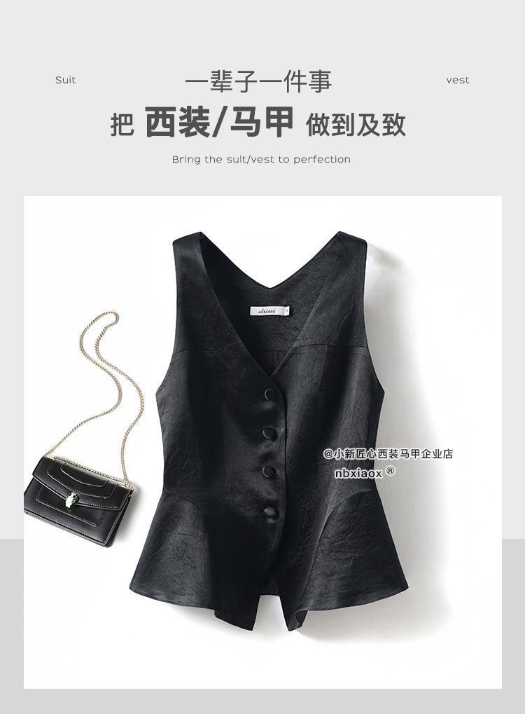 Chaleco de satén con ácido acético de alta calidad para mujer, prenda exterior de verano 2024, fino, de alta gama, sin mangas, con cuello