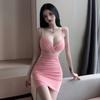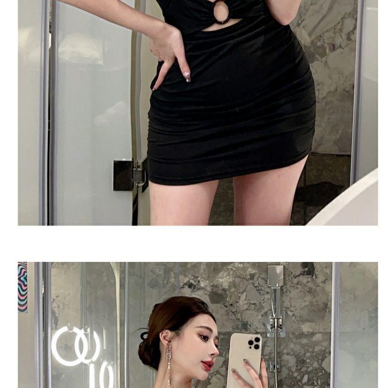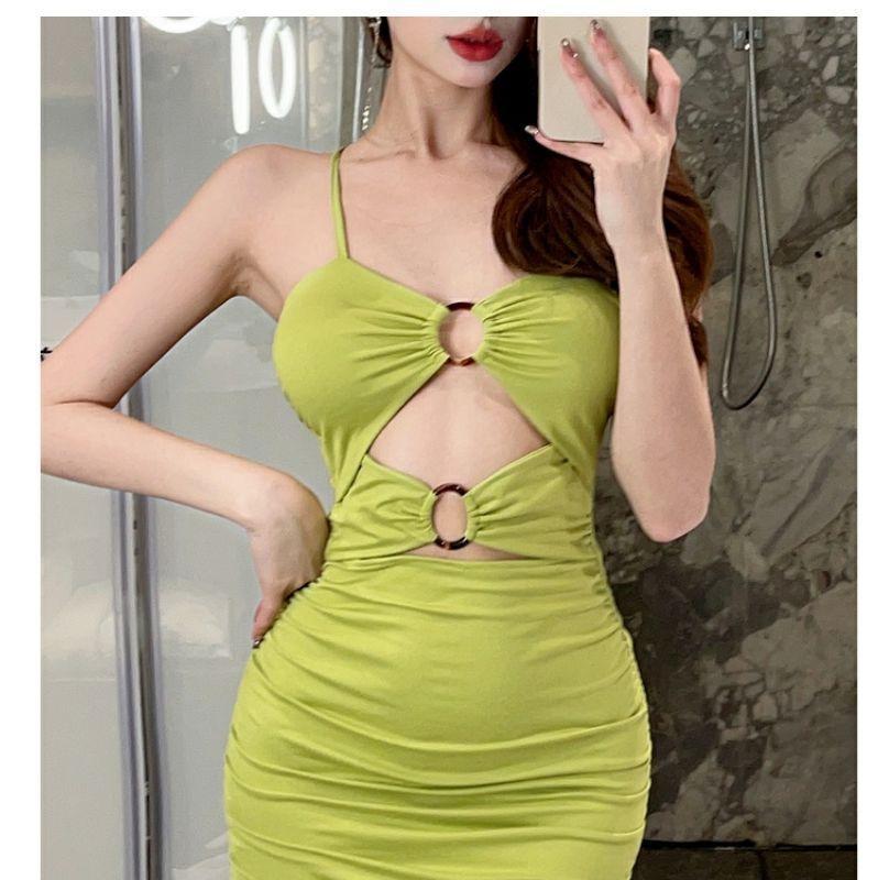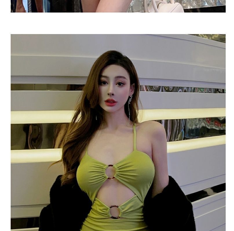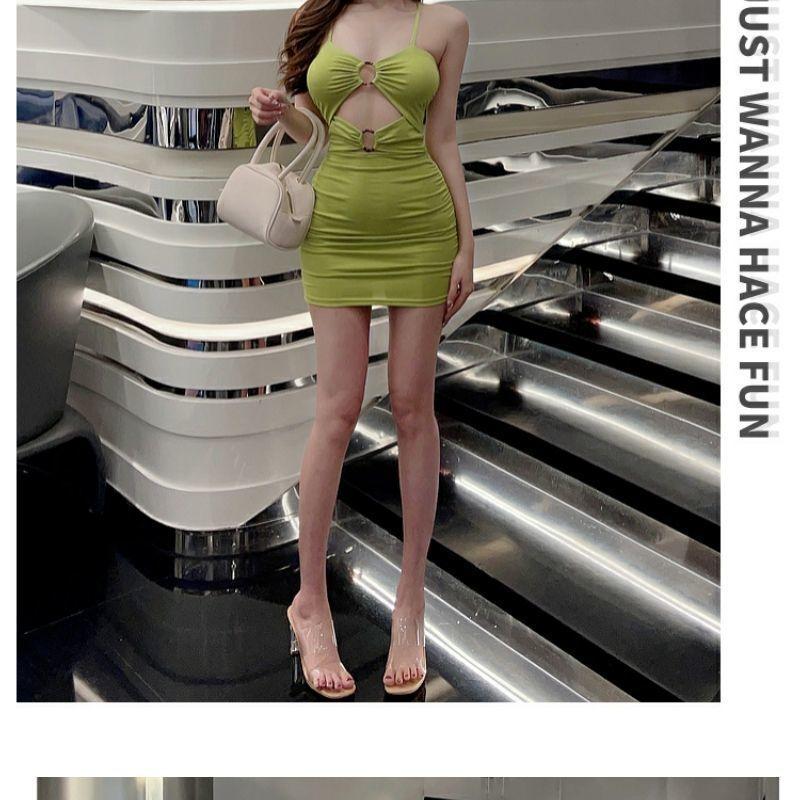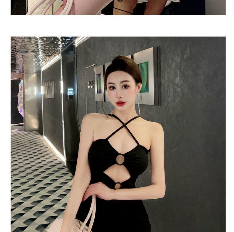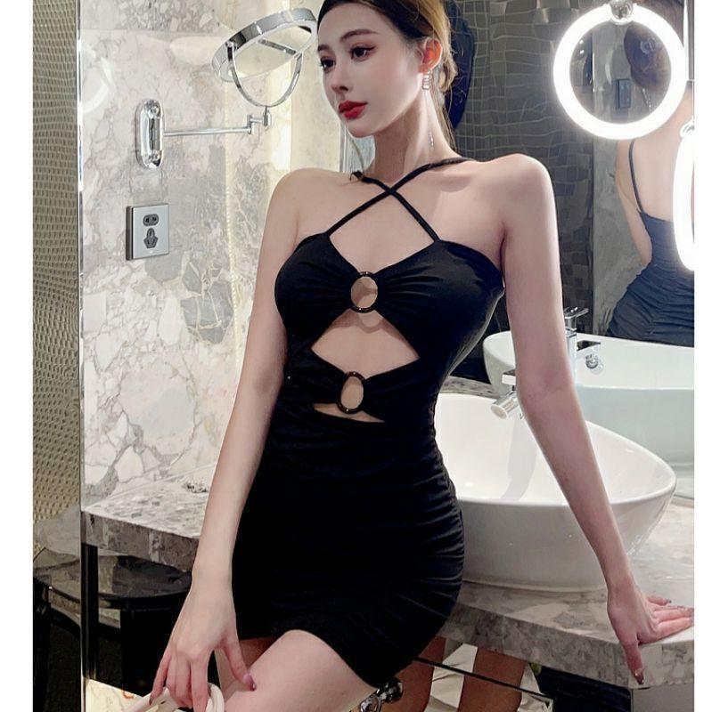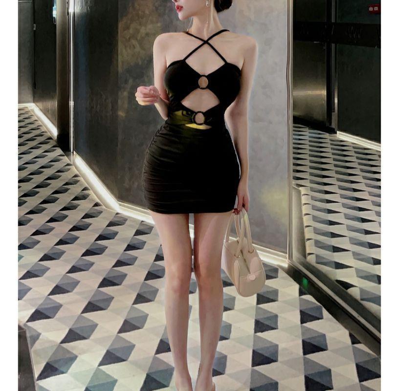 Top de tubo sexy con aberturas para mujer de club nocturno, falda ajustada con tirantes que ciñe las caderas, vestido ajustado sin mangas para bar/discoteca